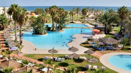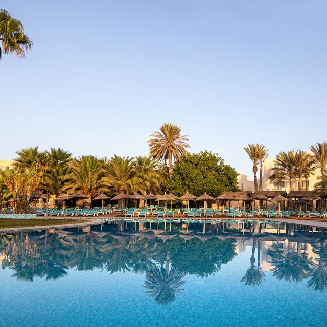 Hotel Welcome Meridiana Djerba is een ruim opgezet hotel, direct gelegen aan een paradijselijk strand: wat een prachtig uitzicht! Aan alles is gedacht en het hotel is met oog voor detail ingericht, werkelijk alle zintuigen worden geprikkeld. Met vele faciliteiten en eetmogelijkheden beleeft iedereen een fantastische vakantie. Voor kinderen is er een speeltuin, een miniclub en apart kinderbad met glijbanen, die vermaken zich prima. Er zijn verschillende (sport)activiteiten en er is een uitgebreid wellnesscenter voor ultieme ontspanning. Maar relaxen is ook belangrijk! Bestel een verse cocktail bij de cocktailbar en geniet van de zon op een comfortabel ligbedje bij een van de zwembaden.