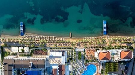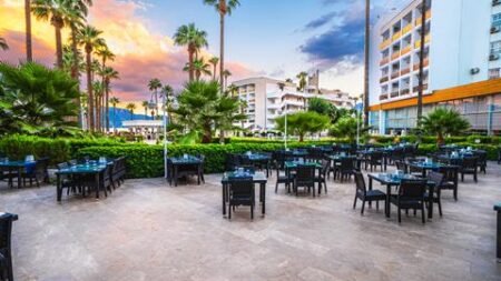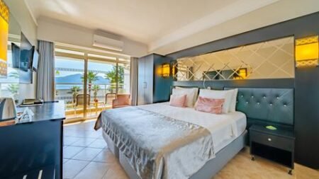 Aan de Turkse kust vind je dit resort waar je gegarandeerd gaat genieten. De kids spetteren in het water en roetsjen van de glijbaan, terwijl jij een plekje zoekt bij het zwembad. Het hotel ligt direct aan het strand, dus je geniet ook van de zee. Ga chillen op je ligbedje op de eigen steiger van het hotel en voel de zonnestralen op je huid. Dat voelt als vakantie. Door de All Inclusive formule geniet je de hele dag van al het lekkers bij de bar en in de restaurants. En voor wat gezelligheid bezoek je het centrum van Marmaris.
