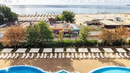 Zomer Wanneer je tussen 15-05-2026 en 30-09-2026 in deze accommodatie verblijft, is onderstaande informatie van toepassing. * Ligging * In het centrum van Sunny Beach * Openbaar strand Sunny Beach op circa 50 meter * Zandstrand * Weg tussen het strand en de accommodatie * Dichtstbijzijnde winkel op circa 200 meter * Dichtstbijzijnde restaurant op circa 250 meter * Dichtstbijzijnde bar op circa 30 meter * Camel Park Sunny Beach op circa 7 kilometer * Nessebar op circa 6,8 kilometer * Bushalte op circa 1 kilometer * Algemeen & faciliteiten * Geheel gerenoveerd in 2023 * 2 gebouwen * Maximaal 13 verdiepingen * 359 kamers * Receptie * 24 uur per dag * Lobby * 3 liften * Lift in elk gebouw * Bagageruimte * Wifi in alle openbare ruimtes * Tuin * Privé parkeergelegenheid tegen betaling * Restaurants & bars * Buffetrestaurant * 3 drinkgelegenheden * Lobbybar * Poolbar * Sportbar * Activiteiten & ontspanning * Fitness * Spafaciliteiten * Sauna * Massages tegen betaling * Zwembaden * Buitenzwembad * Apart kindergedeelte in het buitenzwembad * Binnenzwembad * Verwarmd tussen ca. mei en september * Zonneterras * Ligbedden * Parasol * Badhanddoekenservice gratis met borg * Kinderfaciliteiten * Buitenspeeltuin * Babybedje * Verzorging * Logies & Ontbijt * Ontbijt in buffetvorm of à la carte * Halfpension * Ontbijt in buffetvorm of à la carte * Diner in buffetvorm of à la carte * Volpension * Ontbijt in buffetvorm of à la carte * Lunch in buffetvorm of à la carte * Diner in buffetvorm of à la carteHotelkamers * 2-persoonskamer Deluxe Landzicht DDL * Oppervlakte van circa 25 m² * Landzicht * Woon-/slaapkamer * Slaapbank voor één persoon * Airconditioning * Kluisje * Televisie * Telefoon tegen betaling * Eet- en drinkfaciliteiten * Waterkoker * Minibar tegen betaling * Badkamer inloopdouche, toilet, föhn en badslippers * Wifi * Balkon of terras (zitje) * 2-persoonskamer Deluxe Zeezicht DDM * Oppervlakte van circa 25 m² * Zeezicht * Woon-/slaapkamer * Slaapbank voor één persoon * Airconditioning * Kluisje * Televisie * Telefoon tegen betaling * Eet- en drinkfaciliteiten * Waterkoker * Minibar tegen betaling * Badkamer inloopdouche, toilet, föhn en badslippers * Wifi * Balkon of terras (zitje) * Suite Standaard Landzicht UZL * Oppervlakte tussen 40 en 44 m² * Landzicht * Woon-/slaapkamer * Slaapbank voor twee personen * Eén slaapkamer * Airconditioning * Kluisje * Televisie * Telefoon tegen betaling * Eet- en drinkfaciliteiten * Koffie- en theefaciliteiten * Minibar tegen betaling * Badkamer inloopdouche, toilet, föhn en badslippers * Wifi * Balkon of terras (zitje) * Suite Standaard Zeezicht UZM * Oppervlakte tussen 40 en 44 m² * Zeezicht * Woon-/slaapkamer * Slaapbank voor twee personen * Eén slaapkamer * Airconditioning * Kluisje * Televisie * Telefoon tegen betaling * Eet- en drinkfaciliteiten * Koffie- en theefaciliteiten * Minibar tegen betaling * Badkamer inloopdouche, toilet, föhn en badslippers * Wifi * Balkon of terras (zitje)