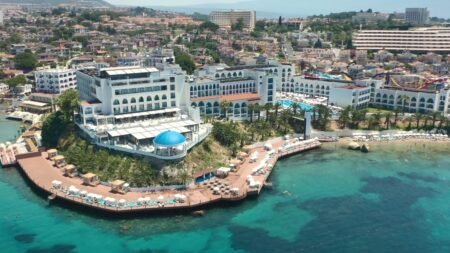 Zomer Wanneer je tussen 23-04-2026 en 25-10-2026 in deze accommodatie verblijft, is onderstaande informatie van toepassing. * Ligging * Privéstrand * Platform aan zee * Ligbedden met matrasjes * Parasol * Openbaar strand Ladies Beach op circa 200 meter * Zandstrand * Centrum van Kusadasi op circa 4 kilometer * Dichtstbijzijnde winkel op circa 200 meter * Dichtstbijzijnde restaurant op circa 200 meter * Dichtstbijzijnde bar op circa 200 meter * Bushalte (op loopafstand) * Algemeen & faciliteiten * 4 gebouwen * Maximaal 4 verdiepingen * 361 kamers * Receptie * 24 uur per dag * Lobby * Meerdere liften * Lift in elk gebouw * Bagageruimte * Wifi in alle openbare ruimtes * 3 winkels * Minimarkt * Wasservice tegen betaling * Doktersservice tegen betaling * Tuin * Openbare parkeergelegenheid * Privé parkeergelegenheid * Restaurants & bars * Buffetrestaurant * 5 à-la-carterestaurants (vooraf reserveren) * Snackrestaurant * Patisserie * Roomservice tegen betaling * 8 drinkgelegenheden * 8 bars * Activiteiten & ontspanning * Aerobics * Biljart tegen betaling * Boccia * Darts * Duikcentrum tegen betaling * Fitness * Tafeltennis * Tafelvoetbal * Watersporten tegen betaling * Spa Center * Binnenzwembad * Sauna * Hamam * Massages tegen betaling * Schoonheidsbehandelingen tegen betaling * Gameroom * Animatie * 7 keer per week * Zwembaden * Buitenzwembad * Buitenzwembad voor kinderen * Aquapark * Meerdere buitenzwembaden * Buitenzwembad voor kinderen * 22 glijbanen voor volwassenen en kinderen * Zonneterras * Ligbedden met matrasjes * Parasol * Badhanddoekenservice * Kinderfaciliteiten * Mini club (4-12 jaar) * Minidisco * Kinderbioscoop * Buitenspeeltuin * Babybedje als preferentie toe te voegen in het boekingsformulier * Babysitservice tegen betaling * ter plaatse op aanvraag * Verzorging * Ultra All Inclusive * Ontbijt in buffetvorm (07.00-10.00 uur) * Laat ontbijt in buffetvorm (10.00-10.30 uur) * Lunch in buffetvorm (12.30-14.00 uur) * Diner in buffetvorm (19.00-21.30 uur) * Dineren in één van de geselecteerde à-la-carterestaurants 1 keer per verblijf bij een verblijf van minimaal 7 dagen * Snacks (12.30-17.00 uur) * Koffie, thee & koekjes (16.00-22.00 uur) * IJs (16.00-22.00 uur) * Middernachtsnack (00.00-02.00 uur) * Selectie geïmporteerde drankjes * Selectie lokale (non-)alcoholische drankjes (24 uur per dag) * Tegen betaling: dineren in één van de à-la-carterestaurants, import drankjes en roomserviceHotelkamers * 2-persoonskamer Voordeel DE * Speciaal tarief * Locatie, formaat, uitzicht en/of faciliteiten kunnen afwijken ten opzichte van andere kamertypes * Oppervlakte tussen 25 en 30 m² * Landzicht * Airconditioning * Kluisje * Televisie * Telefoon tegen betaling * Eet- en drinkfaciliteiten * Koffie- en theefaciliteiten * Minibar * Gevuld met water en frisdrank * Badkamer inloopdouche, toilet, föhn en badslippers * Wifi * Balkon (zitje) * 2-persoonskamer Standaard Tuinzicht DZG * Oppervlakte tussen 25 en 30 m² * Tuinzicht * Airconditioning * Kluisje * Televisie * Telefoon tegen betaling * Eet- en drinkfaciliteiten * Koffie- en theefaciliteiten * Minibar * Gevuld met water en frisdrank * Badkamer inloopdouche, toilet, föhn en badslippers * Wifi * Balkon (zitje) * 2-persoonskamer Standaard Zeezicht DZM * Oppervlakte tussen 25 en 30 m² * Zeezicht * Airconditioning * Kluisje * Televisie * Telefoon tegen betaling * Eet- en drinkfaciliteiten * Koffie- en theefaciliteiten * Minibar * Gevuld met water en frisdrank * Badkamer inloopdouche, toilet, föhn en badslippers * Wifi * Balkon (zitje) * 2-persoonskamer Large Landzicht DLL * Oppervlakte tussen 35 en 40 m² * Landzicht * Airconditioning * Kluisje * Televisie * Telefoon tegen betaling * Eet- en drinkfaciliteiten * Koffie- en theefaciliteiten * Minibar * Gevuld met water en frisdrank * Badkamer inloopdouche, toilet, föhn en badslippers * Wifi * Balkon (zitje) * 2-persoonskamer Large Zeezicht DLM * Oppervlakte tussen 35 en 40 m² * Zeezicht * Airconditioning * Kluisje * Televisie * Telefoon tegen betaling * Eet- en drinkfaciliteiten * Koffie- en theefaciliteiten * Minibar * Gevuld met water en frisdrank * Badkamer inloopdouche, toilet, föhn en badslippers * Wifi * Balkon (zitje)