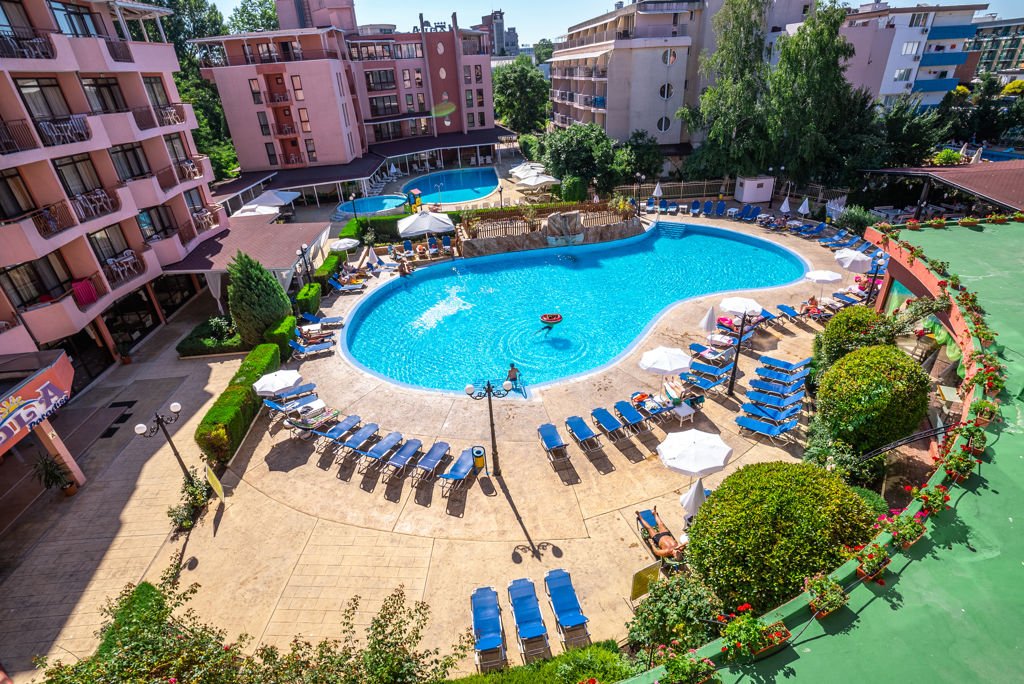 Zomer Wanneer je tussen 01-05-2026 en 30-09-2026 in deze accommodatie verblijft, is onderstaande informatie van toepassing. * Ligging * Openbaar strand op circa 600 meter * Zandstrand * Centrum op circa 300 meter * Dichtstbijzijnde restaurant op circa 10 meter * Dichtstbijzijnde bar op circa 10 meter * Action Aquapark op circa 100 meter * Sunny Beach op circa 100 meter * Nessebar op circa 5 kilometer * Bushalte op circa 150 meter * Algemeen & faciliteiten * 2 gebouwen * Maximaal 6 verdiepingen * 236 kamers * Receptie * 24 uur per dag * Lobby * 7 liften * Bagageruimte * Wifi in alle openbare ruimtes * Doktersservice tegen betaling * Tuin * Privé parkeergelegenheid tegen betaling * Op basis van de beschikbaarheid ter plaatse * Restaurants & bars * Buffetrestaurant * Drinkgelegenheid * Poolbar * Activiteiten & ontspanning * Biljart tegen betaling * Boccia * Darts * Fitness * Tafeltennis * Tafelvoetbal tegen betaling * Spafaciliteiten * Sauna tegen betaling * Bubbelbad binnen tegen betaling * Massages tegen betaling * Gameroom * Animatie * 6 keer per week * Zwembaden * 2 buitenzwembaden * Zoetwater * Buitenzwembad voor kinderen * Zoetwater * Zonneterras * Ligbedden gratis * Parasol gratis * Kinderfaciliteiten * Midiclub (4-12 jaar) * 6 keer per week * Minidisco * Buitenspeeltuin * Babybedje op aanvraag via ons contact center tegen betaling * Verzorging * All Inclusive * Ontbijt in buffetvorm (07.30-10.00 uur) * Lunch in buffetvorm (12.00-14.00 uur) * Diner in buffetvorm (18.00-21.00 uur) * Snacks (10.00-11.00 uur en 15.00-17.00 uur) * Koffie, thee & koekjes (10.00-23.00 uur) * IJs (10.00-17.00 uur) * Selectie lokale (non-)alcoholische drankjes (10.00-23.00 uur) * Tegen betaling: import drankjes en verse vruchtensappenHotelkamers * 2-persoonskamer Standaard DZ * Oppervlakte circa 24 m² * Straatzicht * Zwembadzicht * Airconditioning * Televisie * Telefoon tegen betaling * Eet- en drinkfaciliteiten * Mini koelkast * Badkamer douche, toilet en föhn * Wifi * Balkon of terras (zitje) * 2-persoonskamer Large DL * Oppervlakte circa 34 m² * Straatzicht * Zwembadzicht * Airconditioning * Televisie * Telefoon tegen betaling * Eet- en drinkfaciliteiten * Mini koelkast * Badkamer douche, toilet en föhn (op aanvraag) * Wifi * Balkon of terras (zitje) * Familiekamer Standaard FZ * Oppervlakte circa 40 m² * Straatzicht * Zwembadzicht * Airconditioning * Televisie * Telefoon tegen betaling * Eet- en drinkfaciliteiten * Mini koelkast * Badkamer douche, toilet en föhn * Wifi gratis * Balkon of terras (zitje)