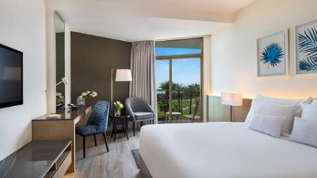 Dit hotel straat een en al luxe uit. Zwemmen in het zwemparadijs of een balletje slaan op de golfbaan? Er is hier genoeg te doen. Het hotel maakt deel uit van een resort van in totaal drie hotels. Alle gasten mogen gebruik maken van het zwemparadijs en de activiteiten, zoals paardrijden, tennissen en golfen. Ook mag je gebruik maken van de sommige restaurants en bars in de andere hotels. Voor de kinderen is er hier ook genoeg te doen, zo kunnen ze spelen bij de kinderclub of gezellig een film kijken tijdens de filmavond. De perfecte plek om samen met elkaar te genieten van een heerlijke vakantie.