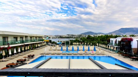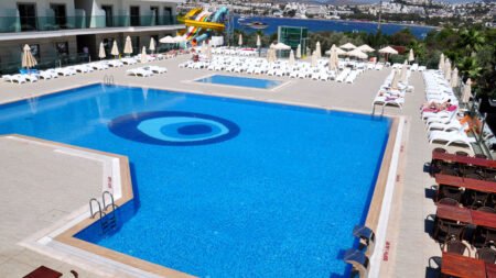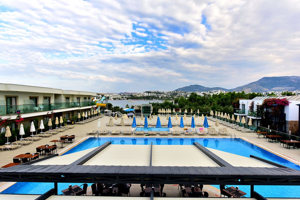 Zomer Wanneer je tussen 01-05-2026 en 27-10-2026 in deze accommodatie verblijft, is onderstaande informatie van toepassing. * Ligging * Privéstrand op circa 300 meter * Ligbedden met matrasjes * Parasol * Dichtstbijzijnde winkel op circa 400 meter * Dichtstbijzijnde restaurant op circa 400 meter * Dichtstbijzijnde bar op circa 400 meter * Gumbet op circa 400 meter * Bodrum op circa 3 kilometer * Bushalte (op loopafstand) * Algemeen & faciliteiten * 23 gebouwen * Maximaal 1 verdieping * 280 kamers * Receptie * 24 uur per dag * Lobby * 2 liften * Bagageruimte * Wifi in alle openbare ruimtes * Winkel (minimarkt) * Wasservice tegen betaling * Doktersservice tegen betaling * Tuin * Privé parkeergelegenheid * Restaurants & bars * Buffetrestaurant * À-la-carterestaurant * 3 drinkgelegenheden * 3 bars * Activiteiten & ontspanning * Beachvolleybal * Biljart * Darts * Fitness * Tafeltennis * Tafelvoetbal tegen betaling * Watersporten tegen betaling * Spafaciliteiten * Sauna * Turks stoombad * Massages tegen betaling * Schoonheidsbehandelingen tegen betaling * Gameroom * Animatie * Zwembaden * 4 buitenzwembaden * Eén van deze zwembaden heeft meerdere glijbanen * 3 buitenzwembaden voor kinderen * Binnenzwembad * Binnenzwembad voor kinderen * Zonneterras * Ligbedden met matrasjes * Parasol * Badhanddoekenservice * Verzorging * All Inclusive * Ontbijt in buffetvorm (07.30-10.00 uur) * Lunch in buffetvorm (12.30-14.00 uur) * Diner in buffetvorm (19.30-21.30 uur) * Dineren in het à-la-carterestaurant 1 keer per verblijf bij een verblijf van minimaal 8 dagen * Snacks (14.00-16.30 uur) * Koffie, thee & koekjes (17.00-18.00 uur) * IJs (15.00-16.00 uur) * Middernachtsnack (00.00-01.00 uur) * Selectie lokale (non-)alcoholische drankjes (10.00-23.00 uur) * Tegen betaling: import drankjesHotelkamers * 2-persoonskamer Standaard DZ * Oppervlakte van circa 26 m² * In het hoofdgebouw * Airconditioning * Kluisje * Televisie * Telefoon tegen betaling * Eet- en drinkfaciliteiten * Koffie- en theefaciliteiten * Minibar * Badkamer douche, toilet en föhn * Balkon of terras (zitje) * 2-persoonskamer Club DC * Oppervlakte van circa 26 m² * In het bijgebouw * Airconditioning * Kluisje * Televisie * Telefoon tegen betaling * Eet- en drinkfaciliteiten * Koffie- en theefaciliteiten * Minibar * Badkamer bad of douche, toilet en föhn * Balkon of terras (zitje) * Familiekamer Standaard FZ * Oppervlakte van circa 45 m² * In het hoofdgebouw * Meerdere slaapkamers * Meerdere slaapkamers * Airconditioning * Kluisje * Televisie * Telefoon tegen betaling * Eet- en drinkfaciliteiten * Koffie- en theefaciliteiten * Minibar * Badkamer bad of douche, toilet en föhn * Balkon of terras (zitje) * Familiekamer Club FC * Oppervlakte van circa 45 m² * In het bijgebouw * Woon-/slaapkamer * Slaapbank voor twee personen * Eén slaapkamer * Airconditioning * Kluisje * Televisie * Telefoon tegen betaling * Eet- en drinkfaciliteiten * Koffie- en theefaciliteiten * Minibar * Badkamer bad of douche, toilet en föhn * Balkon of terras (zitje)
