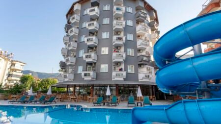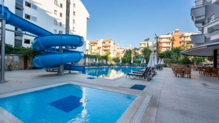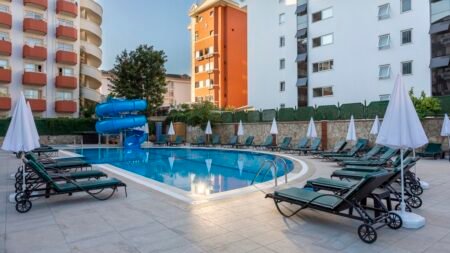 Winter Wanneer je tussen 01-11-2025 en 31-03-2026 in deze accommodatie verblijft, is onderstaande informatie van toepassing. * Ligging * Openbaar strand op circa 150 meter * Dichtstbijzijnde winkel op circa 50 meter * Dichtstbijzijnde restaurant op circa 100 meter * Dichtstbijzijnde bar op circa 100 meter * Alanya op circa 3,5 kilometer * Bushalte op circa 100 meter * Taxistandplaats op circa 25 meter * Algemeen & faciliteiten * 1 gebouw * Maximaal 5 verdiepingen * 123 kamers * Receptie * 24 uur per dag * Lobby * 2 liften * Wifi in alle openbare ruimtes * Wasservice tegen betaling * Doktersservice tegen betaling * Tuin * Openbare parkeergelegenheid * Restaurants & bars * Buffetrestaurant * Roomservice tegen betaling * 2 drinkgelegenheden * Bar * Poolbar * Activiteiten & ontspanning * Fitness * Watersporten tegen betaling * Spafaciliteiten * Sauna * Hamam * Massages tegen betaling * Shows * Eén keer per week * Livemuziek * Eén keer per week * Zwembaden * Buitenzwembad * Glijbaan * Buitenzwembad voor kinderen * Zonneterras * Ligbedden met matrasjes * Parasol * Badhanddoekenservice * Kinderfaciliteiten * Babybedje als preferentie toe te voegen in het boekingsformulier * Verzorging * All Inclusive * Ontbijt in buffetvorm (07.00-09.00 uur) * Laat ontbijt in buffetvorm (09.00-10.00 uur) * Lunch in buffetvorm (12.30-14.00 uur) * Diner in buffetvorm (18.30-20.30 uur) * Koffie, thee & koekjes (16.00-17.00 uur) * Selectie lokale (non-)alcoholische drankjes (10.00-23.00 uur) * Tegen betaling: import drankjes, cocktails, turkse koffie, verse vruchtensappen, energiedranken en roomserviceHotelkamers * 2-persoonskamer Standaard DZ * Oppervlakte van circa 28 m² * Airconditioning * Kluisje tegen betaling * Televisie * Telefoon tegen betaling * Eet- en drinkfaciliteiten * Koffie- en theefaciliteiten * Minibar * Bij aankomst gevuld met water * Badkamer met douche, toilet en föhn * Wifi * Balkon (zitje) * 2-persoonskamer Large DL * Oppervlakte van circa 38 m² * Eén grote kamer * Airconditioning * Kluisje tegen betaling * Televisie * Telefoon tegen betaling * Eet- en drinkfaciliteiten * Koffie- en theefaciliteiten * Minibar * Bij aankomst gevuld met water * Badkamer met douche, toilet en föhn * Wifi * Balkon (zitje) * 2-persoonskamer Large DL1 * Oppervlakte van circa 38 m² * Eén grote kamer * Airconditioning * Kluisje tegen betaling * Televisie * Telefoon tegen betaling * Eet- en drinkfaciliteiten * Koffie- en theefaciliteiten * Minibar * Bij aankomst gevuld met water * Badkamer met douche, toilet en föhn * Wifi * Balkon (zitje) * 2-persoonskamer Large DL2 * Oppervlakte van circa 38 m² * Eén grote kamer * Airconditioning * Kluisje tegen betaling * Televisie * Telefoon tegen betaling * Eet- en drinkfaciliteiten * Koffie- en theefaciliteiten * Minibar * Bij aankomst gevuld met water * Badkamer met douche, toilet en föhn * Wifi * Balkon (zitje) * Familiekamer Standaard FZ * Oppervlakte van circa 42 m² * 2 slaapkamers * Airconditioning * Kluisje tegen betaling * Televisie * Telefoon tegen betaling * Eet- en drinkfaciliteiten * Koffie- en theefaciliteiten * Minibar * Bij aankomst gevuld met water * Badkamer met douche, toilet en föhn * Wifi * Balkon (zitje)