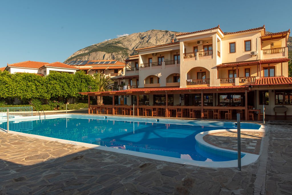 Direct naar: * Ligging () * Faciliteiten () * Restaurants & Bars () * Hotelkamers () * Sport & Ontspanning () * Kinderfaciliteiten () * Zwembaden () * Verzorging () Ligging: Kampos Village * Op ca. 200 meter van het centrum van Votsalakia * Kiezelstrand op ca. 80 meter * Winkels, restaurants en bars op ca. 150 meter * Bushalte op ca. 200 meter Faciliteiten * In 2022 zijn van de Superiorkamers zijn badkamers gerenoveerd en zijn de Superiorkamers voorzien van nieuw meubilair * 13 gebouwen met maximaal 2 verdiepingen * 155 kamers * 24-uursreceptie * Er zijn geen liften aanwezig * Lobby * Tuin * Wifi in de lobby, bij het restaurant en de zwembaden * Wasservice* * Privé en openbare parkeergelegenheid *Tegen betaling Restaurants & bars * 1 buffetrestaurant * 1 bar Hotelkamers * Standaardkamer (1-3 personen) * Ca. 20 m² * Telefoon* * Airconditioning* * Televisie * Koelkastje * Kluisje* * Douche * Toilet * Föhn * Balkon met zitje *Tegen betaling * Superiorkamer (2-3 personen) * Ca. 20 m² * Dezelfde faciliteiten als de Standaardkamer, echter is de badkamer gerenoveerd en is de kamer voorzien van nieuw meubilair Sport & Ontspanning * Fitness * Volleybal * Voetbal * Biljart* * Tafeltennis * Tafelvoetbal * 2x per week live muziek (gedurende het hoogseizoen) *Tegen betaling Kinderfaciliteiten * 1 kinderzwembad * Miniclub 6 dagen per week (2-14 jaar) * Minidisco 1 dag per week in juli en augustus * Speeltuintje * Babybedjes op aanvraag en tegen betaling Zwembaden & Strand * 2 buitenzwembaden * Zonneterras * Ligbedden en parasols gratis (zwembad) * Badhanddoekenservice met borg en tegen betaling * Ligbedden op het strand zijn tegen betaling Verzorging Zomer: Kampos Village * Verblijf o.b.v. All Inclusive: * Vroeg ontbijt (07.00-07.30 uur) * Ontbijt in buffetvorm (07.30-10.00 uur) * Lunch in buffetvorm (13.00-14.30 uur) * Diner in buffetvorm (19.00-21.15 uur) * Snacks (17.00-18.30 uur) * Koffie/thee en koekjes (10.00-11.00, 11.00-12.30 en 15.30-17.00 uur) * IJs (10.00-21.15) * Pool bar cafetaria: 10.00-15.00, 15.30-18.30, alleen in het hoogseizoen * Geselecteerde drankjes en alcoholische drankjes: frisdrank, koffie, sapjes, huiswijn, tapbier en lokale alcoholische drankjes (10.00-23.00 uur) * Tijdens lunch en diner zijn frisdranken, tapbier en huiswijn inbegrepen * Tegen betaling: bier, water en andere dranken in flesjes, koffie, geselecteerde frisdranken en alle drankjes na 23.00 uur