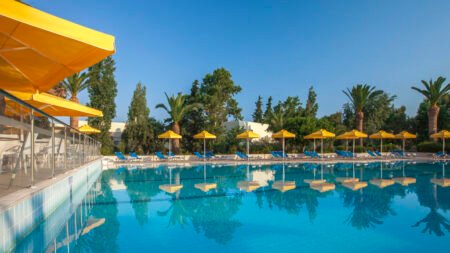 Zomer Wanneer je tussen 01-05-2026 en 31-10-2026 in deze accommodatie verblijft, is onderstaande informatie van toepassing. * Ligging * Openbaar strand op circa 150 meter * Hotsprings op circa 10 kilometer * Kos-Stad op circa 3 kilometer * Bushalte * Algemeen & faciliteiten * 1 gebouw * Maximaal 4 verdiepingen * 174 kamers * Receptie * 24 uur per dag * Lobby * 2 liften * Bagageruimte * Wifi in alle openbare ruimtes * Winkel (minimarkt) * Wasservice tegen betaling * Doktersservice tegen betaling * Tuin * Openbare parkeergelegenheid * Privé parkeergelegenheid * Restaurants & bars * Buffetrestaurant * Roomservice tegen betaling * Drinkgelegenheid * Pool-/snackbar * Activiteiten & ontspanning * Aerobics * Basketbal * Beachvolleybal * Biljart tegen betaling * Boccia * Duikcentrum tegen betaling * Fitness * Beschikbaar op een andere locatie * Midgetgolf * Tafeltennis * Tafelvoetbal * Tennis * Voetbal * Volleybal * Watersporten * Yoga * Spa Center * Beschikbaar bij een nabijgelegen accommodatie * Binnenzwembad * Sauna tegen betaling * Bubbelbad binnen tegen betaling * Massages tegen betaling * Schoonheidsbehandelingen tegen betaling * Animatie * 6 keer per week * Livemuziek * Zwembaden * Buitenzwembad * Buitenzwembad voor kinderen * Zonneterras * Ligbedden * Parasol * Badhanddoekenservice gratis met borg * Verzorging * All Inclusive * Ontbijt in buffetvorm (07.30-10.30 uur) * Laat ontbijt in buffetvorm (10.30-11.00 uur) * Lunch in buffetvorm (12.30-14.30 uur) * Diner in buffetvorm (18.30-21.00 uur) * Snacks (11.00-12.00 uur en 14.30-18.00 uur) * Koffie, thee & koekjes (14.30-18.00 uur) * IJs (14.30-18.00 uur) * Middernachtsnack (23.00-00.00 uur) * Selectie geïmporteerde alcoholische drankjes * Selectie lokale (non-)alcoholische drankjes (10.00-00.00 uur) * Selectie cocktails * Tegen betaling: import drankjes, Speciale koffies en verse vruchtensappenHotelkamers * 2-persoonskamer Voordeel DE * Speciaal tarief * Locatie, formaat, uitzicht en/of faciliteiten kunnen afwijken ten opzichte van andere kamertypes * Oppervlakte van circa 23 m² * Airconditioning * Kluisje * Televisie * Telefoon tegen betaling * Eet- en drinkfaciliteiten * Koffie- en theefaciliteiten * Mini koelkast * Badkamer douche in bad, toilet en föhn * Wifi * Balkon of terras (zitje) * 2-persoonskamer Standaard Landzicht DZL * Oppervlakte van circa 23 m² * Landzicht * Airconditioning * Kluisje * Televisie * Telefoon tegen betaling * Eet- en drinkfaciliteiten * Koffie- en theefaciliteiten * Mini koelkast * Badkamer douche in bad, toilet en föhn * Wifi * Balkon of terras (zitje) * 2-persoonskamer Standaard Zijzeezicht DZI * Oppervlakte van circa 23 m² * Zijzeezicht * Airconditioning * Kluisje * Televisie * Telefoon tegen betaling * Eet- en drinkfaciliteiten * Koffie- en theefaciliteiten * Mini koelkast * Badkamer douche in bad, toilet en föhn * Wifi * Balkon of terras (zitje)