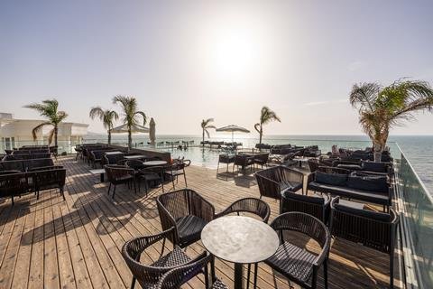 Direct aan het zandstrand, Boek lezen op de comfy zitkussens, Terras met zwembad op het dak, Geniet van de zonsondergang, Wellness met binnenbad, Ruime, moderne kamers & inclusief transfers.
