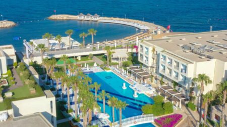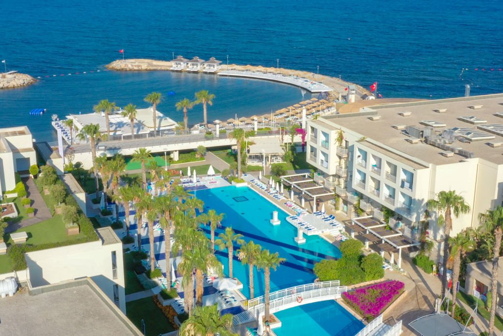 Zomer Wanneer je tussen 27-04-2026 en 31-10-2026 in deze accommodatie verblijft, is onderstaande informatie van toepassing. * Ligging * Gelegen aan het privéstrand * Ligbedden * Parasol * Strandhanddoekenservice * Centrum van Turgutreis op circa 1 kilometer * Dichtstbijzijnde winkel op circa 1 kilometer * Dichtstbijzijnde restaurant op circa 1 kilometer * Dichtstbijzijnde bar op circa 1 kilometer * Bodrum op circa 21 kilometer * Bushalte op circa 1 kilometer * Algemeen & faciliteiten * 7 gebouwen * Maximaal 5 verdiepingen * 362 kamers * Receptie * 24 uur per dag * 7 liften * Wifi in alle openbare ruimtes * Restaurants & bars * Buffetrestaurant * 4 à-la-carterestaurants (vooraf reserveren) * Roomservice tegen betaling * 4 drinkgelegenheden * Activiteiten & ontspanning * Beachvolleybal * Fitness * Tennis * Spafaciliteiten * Sauna * Turks stoombad * Massages tegen betaling * Schoonheidsbehandelingen tegen betaling * Zwembaden * 2 buitenzwembaden * Eén van deze zwembaden heeft 3 glijbanen * Binnenzwembad * Verwarmd tussen ca. april en mei & oktober en november * Zonneterras * Ligbedden * Parasol * Badhanddoekenservice * Kinderfaciliteiten * Mini club (4-12 jaar) * Minidisco * Buitenspeeltuin * Babybedje op aanvraag via ons contact center * Babysitservice tegen betaling * ter plaatse op aanvraag * Verzorging * All Inclusive * Ontbijt in buffetvorm (07.00-10.00 uur) * Laat ontbijt in buffetvorm (10.00-10.30 uur) * Lunch in buffetvorm (12.30-14.30 uur) * Diner in buffetvorm (19.00-21.00 uur) * Dineren in het à-la-carterestaurant 1 keer per verblijf * Snacks (12.30-18.00 uur) * Koffie, thee & koekjes (10.00-17.30 uur) * IJs (10.00-21.00 uur) * Middernachtsnack (00.00-01.00 uur) * Selectie lokale (non-)alcoholische drankjes (24 uur per dag) * Tegen betaling: roomserviceHotelkamers * 2-persoonskamer Standaard Landzicht DZL * Oppervlakte van circa 26 m² * Landzicht * Airconditioning * Kluisje * Televisie * Telefoon tegen betaling * Eet- en drinkfaciliteiten * Koffie- en theefaciliteiten * Badkamer douche, toilet, föhn en badslippers * Wifi * Balkon (zitje) * 2-persoonskamer Standaard Zeezicht DZM * Oppervlakte van circa 26 m² * Zeezicht * Airconditioning * Kluisje * Televisie * Telefoon tegen betaling * Eet- en drinkfaciliteiten * Koffie- en theefaciliteiten * Badkamer douche, toilet, föhn en badslippers * Wifi * Balkon (zitje) * 2-persoonskamer Large DL * Oppervlakte van circa 31 m² * Airconditioning * Kluisje * Televisie * Telefoon tegen betaling * Eet- en drinkfaciliteiten * Koffie- en theefaciliteiten * Badkamer douche, toilet, föhn en badslippers * Wifi * Balkon (zitje) * Familiekamer Standaard FZ1 * Oppervlakte van circa 35 m² * Airconditioning * Kluisje * Televisie * Telefoon tegen betaling * Eet- en drinkfaciliteiten * Koffie- en theefaciliteiten * Badkamer douche, toilet, föhn en badslippers * Wifi * Balkon (zitje) * Familiekamer Standaard FZ2 * Oppervlakte van circa 35 m² * Airconditioning * Kluisje * Televisie * Telefoon tegen betaling * Eet- en drinkfaciliteiten * Koffie- en theefaciliteiten * Badkamer douche, toilet, föhn en badslippers * Wifi * Balkon (zitje) * Familiekamer Standaard FZ * Oppervlakte van circa 35 m² * 2 slaapkamers * Airconditioning * Kluisje * Televisie * Telefoon tegen betaling * Eet- en drinkfaciliteiten * Koffie- en theefaciliteiten * Badkamer douche, toilet, föhn en badslippers * Wifi * Balkon (zitje)