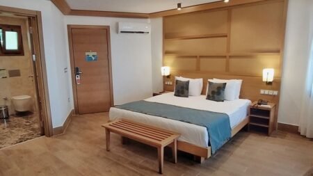 Zomer Wanneer je tussen 25-04-2026 en 31-10-2026 in deze accommodatie verblijft, is onderstaande informatie van toepassing. * Ligging * Gelegen op een heuvel * Gelegen aan het privéstrand * Zandstrand * Ligbedden met matrasjes * Parasol * Centrum van Fethiye op circa 4 kilometer * Dichtstbijzijnde winkel op circa 4 kilometer * Dichtstbijzijnde restaurant op circa 4 kilometer * Dichtstbijzijnde bar op circa 4 kilometer * Çalis op circa 14 kilometer * Algemeen & faciliteiten * Meerdere gebouwen * Maximaal 3 verdiepingen * 685 kamers * Receptie * 24 uur per dag * Lobby * 6 liften * Niet in elk gebouw een lift * Bagageruimte * Wifi in alle openbare ruimtes * 5 winkels * Minimarkt * Souvenirwinkel * Juwelier * Wasservice tegen betaling * Doktersservice tegen betaling * Tuin * Privé parkeergelegenheid * Restaurants & bars * 2 buffetrestaurants * 3 à-la-carterestaurants (vooraf reserveren) tegen bijbetaling * Italiaans restaurant * Restaurant met verschillende specialiteiten * Visrestaurant * Snackbar * 6 drinkgelegenheden * 2 bars * Beachbar * Koffiecorner * Lobbybar * Vitaminebar * Activiteiten & ontspanning * Aerobics * Basketbal * Beachvolleybal * Boccia * Boogschieten * Darts * Duikcentrum tegen betaling * Fitness * Midgetgolf * Tafeltennis * Tennis * Watersporten tegen betaling * Yoga * Spa Center * Sauna * Hamam behandelingen tegen betaling * Bubbelbad binnen * Massages tegen betaling * Schoonheidsbehandelingen tegen betaling * Gameroom * Animatie voor volwassenen * 6 keer per week * Shows * 6 keer per week * Livemuziek * Zwembaden * 3 buitenzwembaden * 4 glijbanen * De glijbanen hebben verschillende openingsperiodes * 3 buitenzwembaden voor kinderen * Eén van deze zwembaden heeft een glijbaan * Binnenzwembad * Verwarmd * Zonneterras * Ligbedden met matrasjes * Parasol * Badhanddoekenservice * Kinderfaciliteiten * Mini club (4-7 jaar) * Midiclub (8-12 jaar) * Teenage club (13-17 jaar) * Minidisco * Buitenspeeltuin * Babybedje als preferentie toe te voegen in het boekingsformulier * Verzorging * Ultra All Inclusive * Ontbijt in buffetvorm (07.00-10.00 uur) * Laat ontbijt in buffetvorm (10.00-11.00 uur) * Lunch in buffetvorm (12.30-14.30 uur) * Diner in buffetvorm (19.30-21.30 uur) * Snacks (12.30-15.30 uur) * Koffie, thee & koekjes (16.00-18.00 uur) * IJs (12.30-18.00 uur) * Middernachtsnack (00.00-07.00 uur) * Selectie geïmporteerde drankjes * Selectie lokale (non-)alcoholische drankjes (24 uur per dag) * Tegen betaling: dineren in alle à-la-carterestaurants, drankjes in flessen, import drankjes en shishaHotelkamers * 2-persoonskamer Voordeel DE * Speciaal tarief * Locatie, formaat, uitzicht en/of faciliteiten kunnen afwijken ten opzichte van andere kamertypes * Oppervlakte tussen 18 en 22 m² * Airconditioning * Kluisje * Televisie * Telefoon tegen betaling * Eet- en drinkfaciliteiten * Koffie- en theefaciliteiten * Minibar * Badkamer douche, toilet, föhn, badjassen en badslippers * Wifi * Balkon of Frans balkon * 2-persoonskamer Bungalow DB * Oppervlakte tussen 20 en 24 m² * Airconditioning * Kluisje * Televisie * Telefoon tegen betaling * Eet- en drinkfaciliteiten * Koffie- en theefaciliteiten * Minibar * Badkamer douche, toilet, föhn, badjassen en badslippers * Wifi * Balkon of Frans balkon * 2-persoonskamer Hoofdgebouw DH * Oppervlakte tussen 18 en 22 m² * In het hoofdgebouw * Airconditioning * Kluisje * Televisie * Telefoon tegen betaling * Eet- en drinkfaciliteiten * Koffie- en theefaciliteiten * Minibar * Badkamer douche, toilet, föhn, badjassen en badslippers * Wifi * Balkon (zitje) * 2-persoonskamer Hoofdgebouw DH1 * Oppervlakte tussen 18 en 22 m² * In het hoofdgebouw * Airconditioning * Kluisje * Televisie * Telefoon tegen betaling * Eet- en drinkfaciliteiten * Koffie- en theefaciliteiten * Minibar * Badkamer douche, toilet, föhn, badjassen en badslippers * Wifi * Balkon (zitje) * 2-persoonskamer Hoofdgebouw DH2 * Oppervlakte tussen 18 en 22 m² * In het hoofdgebouw * Airconditioning * Kluisje * Televisie * Telefoon tegen betaling * Eet- en drinkfaciliteiten * Koffie- en theefaciliteiten * Minibar * Badkamer douche, toilet, föhn, badjassen en badslippers * Wifi * Balkon (zitje) * Familiekamer Bungalow FB * Eén grote kamer * Airconditioning * Kluisje * Televisie * Telefoon tegen betaling * Eet- en drinkfaciliteiten * Koffie- en theefaciliteiten * Minibar * Badkamer douche, toilet, föhn, badjassen en badslippers * Wifi * Balkon of Frans balkon