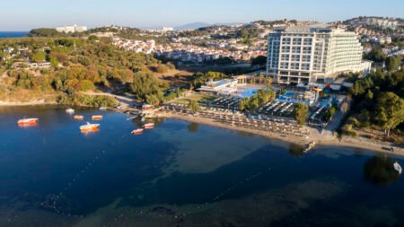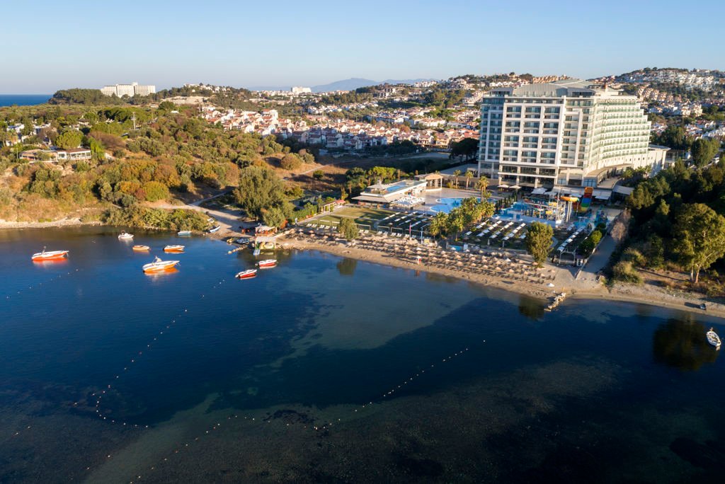 Zomer Wanneer je tussen 01-04-2026 en 31-10-2026 in deze accommodatie verblijft, is onderstaande informatie van toepassing. * Ligging * Gelegen aan het privéstrand * Ligbedden * Parasol * Openbaar strand Ladies Beach op circa 2 kilometer * Dichtstbijzijnde winkel op circa 2 kilometer * Dichtstbijzijnde restaurant op circa 2 kilometer * Dichtstbijzijnde bar op circa 2 kilometer * Kusadasi op circa 6 kilometer * Bushalte op circa 50 meter * Algemeen & faciliteiten * 1 gebouw * Maximaal 10 verdiepingen * 392 kamers * Receptie * 24 uur per dag * Lobby * 8 liften * Bagageruimte * Wifi in alle openbare ruimtes gratis * Meerdere winkels * Minimarkt * Wasservice tegen betaling * Doktersservice tegen betaling * Tuin * Privé parkeergelegenheid gratis * Restaurants & bars * Buffetrestaurant * 6 à-la-carterestaurants * 3 drinkgelegenheden * 3 bars * Activiteiten & ontspanning * Aerobics gratis * Basketbal gratis * Beachvolleybal gratis * Biljart tegen betaling * Fitness gratis * Tafeltennis gratis * Tennis gratis * Voetbal gratis * Yoga gratis * Spa Center gratis toegang * Binnenzwembad * Sauna * Turks stoombad * Bubbelbad binnen * Massages tegen betaling * Schoonheidsbehandelingen tegen betaling * Animatie * Zwembaden * Buitenzwembad * 5 glijbanen * Buitenzwembad voor kinderen * 2 glijbanen * Binnenzwembad * Binnenzwembad voor kinderen * Zonneterras * Ligbedden gratis * Parasol gratis * Badhanddoekenservice gratis * Kinderfaciliteiten * Mini club (4-12 jaar) * Minidisco * Buitenspeeltuin * Babysitservice tegen betalingHotelkamers * 2-persoonskamer Deluxe Zijzeezicht DDI * 2-persoonskamer Suite Zijzeezicht (Corner) DUI * Junior suite Standaard Zeezicht JZM * Suite Zeezicht (Corner) U2 * Suite Zeezicht (King) U1M * Suite Zeezicht (King) U5M * Suite Deluxe Zeezicht UDM