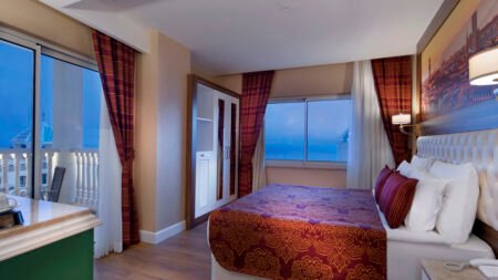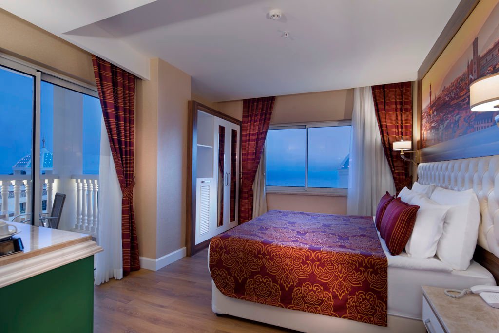 Zomer Wanneer je tussen 20-04-2026 en 09-11-2026 in deze accommodatie verblijft, is onderstaande informatie van toepassing. * Ligging * Gelegen op een heuvel * Gelegen aan het privéstrand * Zandstrand * Kiezelstrand * Ligbedden * Parasol * Dichtstbijzijnde winkel op circa 800 meter * Dichtstbijzijnde restaurant op circa 1,5 kilometer * Avsallar op circa 7 kilometer * Alanya op circa 30 kilometer * Shuttleservice naar het strand gratis * Bushalte op circa 200 meter * Algemeen & faciliteiten * 1 gebouw * Maximaal 7 verdiepingen * 259 kamers * Receptie * 24 uur per dag * Lobby * 4 liften * Lift in elk gebouw * Bagageruimte * Wifi in alle openbare ruimtes * Internetruimte * Meerdere winkels * Minimarkt * Wasservice tegen betaling * Doktersservice tegen betaling * Tuin * Openbare parkeergelegenheid * Restaurants & bars * Buffetrestaurant * 4 à-la-carterestaurants (vooraf reserveren) * Italiaans restaurant * Restaurant met verschillende specialiteiten * Sushirestaurant * Visrestaurant * 2 snackbars * Roomservice tegen betaling * 6 drinkgelegenheden * Bar * Beachbar * Discobar * Lobbybar * Lounge bar * Poolbar * Activiteiten & ontspanning * Aerobics * Beachvolleybal * Biljart tegen betaling * Boccia * Boogschieten * Darts * Duikcentrum tegen betaling * Fitness * Midgetgolf * Tafeltennis * Watersporten tegen betaling * Yoga * Spa Center * Binnenzwembad * Sauna * Hamam * Bubbelbad binnen tegen betaling * Massages tegen betaling * Schoonheidsbehandelingen tegen betaling * Gameroom * Animatie * 7 keer per week * Shows * 7 keer per week * Livemuziek * Eén keer per week * Zwembaden * 2 buitenzwembaden * Eén van deze zwembaden heeft 3 glijbanen * Buitenzwembad voor kinderen * Binnenzwembad * Binnenzwembad voor kinderen * Zonneterras * Ligbedden * Parasol * Badhanddoekenservice * Kinderfaciliteiten * Mini club (4-12 jaar) * Minidisco * Buitenspeeltuin * Babybedje * Verzorging * Ultra All Inclusive * Ontbijt in buffetvorm (07.00-10.00 uur) * Laat ontbijt in buffetvorm (10.00-11.00 uur) * Lunch in buffetvorm (12.30-14.00 uur) * Diner in buffetvorm (19.00-21.00 uur) * Dineren in één van de geselecteerde à-la-carterestaurants 1 keer per verblijf bij een verblijf van minimaal 7 nachten * Snacks (12.00-16.00 uur) * Koffie, thee & koekjes * IJs * Middernachtsnack * Selectie geïmporteerde drankjes(10.00-00.00 uur) * Selectie lokale (non-)alcoholische drankjes (10.00-00.00 uur) * Tegen betaling: roomserviceHotelkamers * 2-persoonskamer Voordeel DE * Speciaal tarief * Locatie, formaat, uitzicht en/of faciliteiten kunnen afwijken ten opzichte van andere kamertypes * Airconditioning * Kluisje * Televisie * Telefoon tegen betaling * Eet- en drinkfaciliteiten * Koffie- en theefaciliteiten * Minibar * Badkamer inloopdouche, toilet, föhn en badslippers * Wifi * Balkon of terras (zitje) * 2-persoonskamer Standaard Landzicht DZL * Oppervlakte tussen 30 en 40 m² * Landzicht * Airconditioning * Kluisje * Televisie * Telefoon tegen betaling * Eet- en drinkfaciliteiten * Koffie- en theefaciliteiten * Minibar * Badkamer inloopdouche, toilet, föhn en badslippers * Wifi * Balkon of terras (zitje) * 2-persoonskamer Standaard Zijzeezicht DZI * Oppervlakte tussen 30 en 40 m² * Zijzeezicht * Airconditioning * Kluisje * Televisie * Telefoon tegen betaling * Eet- en drinkfaciliteiten * Koffie- en theefaciliteiten * Minibar * Badkamer inloopdouche, toilet, föhn en badslippers * Wifi * Balkon of terras (zitje) * 2-persoonskamer Standaard Zeezicht DZM * Oppervlakte tussen 30 en 40 m² * Zeezicht * Airconditioning * Kluisje * Televisie * Telefoon tegen betaling * Eet- en drinkfaciliteiten * Koffie- en theefaciliteiten * Minibar * Badkamer inloopdouche, toilet, föhn en badslippers * Wifi * Balkon of terras (zitje) * 2-persoonskamer Superior Whirlpool DSJ * Oppervlakte tussen 30 en 40 m² * Airconditioning * Kluisje * Televisie * Telefoon tegen betaling * Eet- en drinkfaciliteiten * Koffie- en theefaciliteiten * Minibar * Badkamer inloopdouche, bubbelbad, toilet, föhn en badslippers * Wifi * Balkon of terras (zitje) * Familiekamer Standaard Zeezicht FZM * Oppervlakte tussen 30 en 40 m² * Zeezicht * Airconditioning * Kluisje * Televisie * Telefoon tegen betaling * Eet- en drinkfaciliteiten * Koffie- en theefaciliteiten * Minibar * Badkamer inloopdouche, toilet, föhn en badslippers * Wifi * Balkon of terras (zitje) * Suite Terras Whirlpool UTJ * Airconditioning * Kluisje * Televisie * Telefoon tegen betaling * Eet- en drinkfaciliteiten * Koffie- en theefaciliteiten * Minibar * Badkamer inloopdouche, bubbelbad, toilet, föhn en badslippers * Wifi * Terras (zitje)