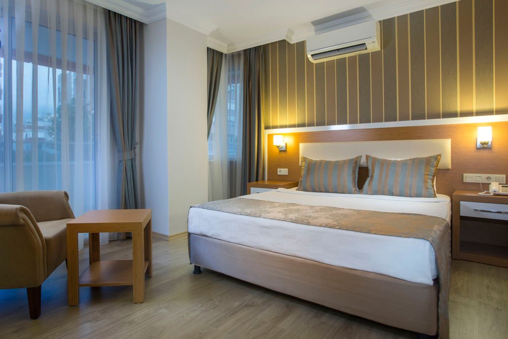 Zomer Wanneer je tussen 01-04-2026 en 31-10-2026 in deze accommodatie verblijft, is onderstaande informatie van toepassing. * Ligging * In het centrum van Alanya * Openbaar strand Kleopatra Beach op circa 600 meter * Zandstrand * Kiezelstrand * Dichtstbijzijnde winkel op circa 50 meter * Dichtstbijzijnde restaurant op circa 50 meter * Dichtstbijzijnde bar op circa 50 meter * Bushalte op circa 150 meter * Algemeen & faciliteiten * 3 gebouwen * Maximaal 5 verdiepingen * 60 kamers * Receptie * 24 uur per dag * Lobby * 3 liften * Lift in elk gebouw * Bagageruimte * Wifi in alle openbare ruimtes * Tuin * Restaurants & bars * Buffetrestaurant * À-la-carterestaurant * Visrestaurant * Open tussen ca. vrijdag 15 mei 2026 en donderdag 15 oktober 2026 * 2 drinkgelegenheden * Bar * Lobbybar * Zwembaden * Buitenzwembad * Buitenzwembad voor kinderen * Binnenzwembad * Binnenzwembad voor kinderen * Zonneterras * Ligbedden met matrasjes * Parasol * Badhanddoekenservice * Verzorging * All Inclusive * Ontbijt in buffetvorm (07.30-10.30 uur) * Lunch in buffetvorm (12.30-14.30 uur) * Diner in buffetvorm (19.00-21.00 uur) * Selectie lokale (non-)alcoholische drankjes (10.00-23.00 uur)Hotelkamers * Familiekamer F1 * Oppervlakte van circa 42 m² * 2 slaapkamers * Airconditioning * Televisie * Telefoon tegen betaling * Eet- en drinkfaciliteiten * Minibar * Badkamer douche, toilet en föhn * Wifi * Balkon of terras (zitje) * Familiekamer F2 * Oppervlakte van circa 42 m² * 2 slaapkamers * Airconditioning * Televisie * Telefoon tegen betaling * Eet- en drinkfaciliteiten * Minibar * Badkamer douche, toilet en föhn * Wifi * Balkon of terras (zitje) * Run of the House R1 * Oppervlakte van circa 24 m² * Airconditioning * Kluisje * Televisie * Telefoon tegen betaling * Eet- en drinkfaciliteiten * Minibar * Badkamer douche, toilet en föhn * Wifi * Balkon of terras (zitje)