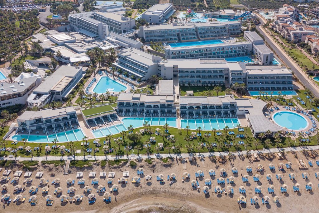 Zomer Wanneer je tussen 20-03-2026 en 29-11-2026 in deze accommodatie verblijft, is onderstaande informatie van toepassing. * Ligging * Gelegen aan het privéstrand * Ligbedden met matrasjes gratis * Parasol gratis * Centrum van Analipsis op circa 1 kilometer * Centrum van Chersonissos op circa 5 kilometer * Bushalte op circa 500 meter * Algemeen & faciliteiten * 9 gebouwen * Maximaal 2 verdiepingen * 647 kamers * Receptie * 24 uur per dag * Lobby * Bagageruimte * Wifi in alle openbare ruimtes gratis * Winkel (minimarkt) * Wasservice tegen betaling * Doktersservice tegen betaling * Tuin * Privé parkeergelegenheid gratis * Restaurants & bars * Buffetrestaurant * 3 restaurants * Aziatisch restaurant * Italiaans restaurant * Restaurant met verschillende specialiteiten (vooraf reserveren) * 2 snackbars * 4 drinkgelegenheden * Beachbar * Lobbybar * Pool-/beachbar * Poolbar * Activiteiten & ontspanning * Aerobics * Aquagym * Basketbal * Beachvolleybal * Biljart tegen betaling * Boccia * Danslessen * Darts * Fitness gratis * Padellen tegen betaling * Pilates * Tafeltennis * Tennis tegen betaling * Voetbal * Waterpolo * Yoga * Spafaciliteiten * Sauna tegen betaling * Massages tegen betaling * Schoonheidsbehandelingen tegen betaling * Gameroom * Animatie- * Zwembaden * Meerdere buitenzwembaden * Eén van deze zwembaden heeft 3 glijbanen * Buitenzwembad voor kinderen * Glijbaan * Buitenbad voor peuters * Aquapark * 9 glijbanen * Binnenzwembad toegang tegen betaling * Zonneterras * Ligbedden met matrasjes gratis * Parasol gratis * Kinderfaciliteiten * Mini club (4-12 jaar) * Teenage club (13-17 jaar) * Open tussen * Minidisco * Binnenspeeltuin * Buitenspeeltuin * Babysitservice tegen betaling * ter plaatse op aanvraag * Verzorging * All Inclusive * Ontbijt in buffetvorm (07.30-10.30 uur) * Lunch in buffetvorm (12.30-14.30 uur) * Diner in buffetvorm (18.30-21.30 uur) * Snacks (11.00-13.00 uur en 15.00-17.00 uur) * Koffie, thee & koekjes (11.00-13.00 uur en 15.00-17.00 uur) * IJs (11.00-13.00 uur en 15.00-17.00 uur) * Selectie lokale (non-)alcoholische drankjes (10.00-00.00 uur) * Tegen betaling: drankjes in flessen en import drankjes * Goed om te weten * Duurzaamheidslabel(s): Green KeyHotelkamers * 1-persoonskamer Standaard Landzicht EZL * Airconditioning * Kluisje * Televisie * Eet- en drinkfaciliteiten * Koffie- en theefaciliteiten * Nespresso koffiezetapparaat * Mini koelkast * Strijkfaciliteiten * Badkamer bad of douche, toilet en föhn * Wifi * 2-persoonskamer Standaard Landzicht DZL * Oppervlakte circa 23 m² * Landzicht * Airconditioning * Kluisje gratis * Televisie gratis * Telefoon tegen betaling * Eet- en drinkfaciliteiten * Koffie- en theefaciliteiten gratis * Nespresso koffiezetapparaat * Koelkast gratis * Strijkfaciliteiten * Badkamer douche, toilet en föhn * Wifi gratis * Balkon (zitje) * 2-persoonskamer Standaard Zeezicht DZM * Oppervlakte circa 23 m² * Zeezicht * Airconditioning * Kluisje gratis * Televisie gratis * Telefoon tegen betaling * Eet- en drinkfaciliteiten * Koffie- en theefaciliteiten gratis * Nespresso koffiezetapparaat * Koelkast gratis * Strijkfaciliteiten * Badkamer douche, toilet en föhn * Wifi gratis * Balkon (zitje) * 2-persoonskamer Superior Privézwembad (Individual pool) DS1 * Oppervlakte tussen 23 en 25 m² * Airconditioning * Televisie gratis * Telefoon tegen betaling * Eet- en drinkfaciliteiten * Koffie- en theefaciliteiten gratis * Nespresso koffiezetapparaat * Koelkast gratis * Strijkfaciliteiten * Badkamer douche, toilet en föhn * Wifi gratis * Terras (zitje) * Privézwembad * Familiekamer Tuinzicht 2 slaapkamers F2G * Oppervlakte tussen 35 en 50 m² * Op de begane grond * 2 slaapkamers * Airconditioning * Kluisje gratis * Televisie gratis * Telefoon tegen betaling * Eet- en drinkfaciliteiten * Magnetron gratis * Koffie- en theefaciliteiten gratis * Nespresso koffiezetapparaat * Koelkast gratis * Strijkfaciliteiten * 2 badkamers * 2 badkamers met douche, toilet en föhn * Terras (zitje) * Familiekamer Tuinzicht 2 slaapkamers (Individual pool) F1G * Oppervlakte circa 35 m² * Tuinzicht * Woon-/slaapkamer met meerdere slaapplaatsen * 2 slaapkamers * Airconditioning * Kluisje gratis * Televisie gratis * Telefoon tegen betaling * Eet- en drinkfaciliteiten * Magnetron * Koffie- en theefaciliteiten gratis * Nespresso koffiezetapparaat * Koelkast gratis * Strijkfaciliteiten * 2 badkamers * Meerdere badkamers met douche, toilet en föhn * Wifi gratis * Balkon (zitje) * Familiekamer Standaard Tuinzicht FZG * Oppervlakte circa 29 m² * Tuinzicht * Woon-/slaapkamer met meerdere slaapplaatsen * Airconditioning * Kluisje gratis * Televisie gratis * Telefoon tegen betaling * Eet- en drinkfaciliteiten * Koffie- en theefaciliteiten gratis * Nespresso koffiezetapparaat * Koelkast gratis * Strijkfaciliteiten * Badkamer douche, toilet en föhn * Wifi gratis * Balkon (zitje) * Familiekamer Standaard Zeezicht FZM * Oppervlakte circa 29 m² * Zeezicht * Woon-/slaapkamer met meerdere slaapplaatsen * Airconditioning * Kluisje tegen betaling * Televisie gratis * Telefoon tegen betaling * Eet- en drinkfaciliteiten * Koffie- en theefaciliteiten gratis * Nespresso koffiezetapparaat * Koelkast gratis * Strijkfaciliteiten * Badkamer douche, toilet en föhn * Wifi gratis * Balkon (zitje) * Familiekamer Superior Tuinzicht FS1 * Oppervlakte circa 50 m² * Tuinzicht * Woon-/slaapkamer met meerdere slaapplaatsen * Airconditioning * Kluisje tegen betaling * Televisie gratis * Telefoon tegen betaling * Eet- en drinkfaciliteiten * Magnetron * Koffie- en theefaciliteiten gratis * Nespresso koffiezetapparaat * Koelkast gratis * Strijkfaciliteiten * Badkamer douche, toilet en föhn * Wifi gratis * Familiekamer Superior Tuinzicht FSG * Oppervlakte circa 40 m² * Op één van de hogere verdiepingen * Tuinzicht * Woon-/slaapkamer met meerdere slaapplaatsen * Airconditioning * Kluisje tegen betaling * Televisie gratis * Telefoon tegen betaling * Eet- en drinkfaciliteiten * Koffie- en theefacili
