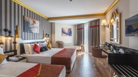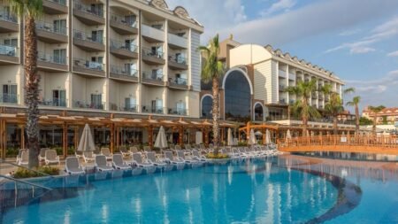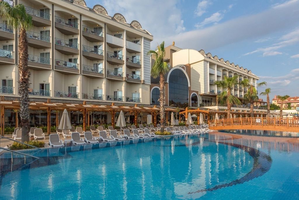 Zomer Wanneer je tussen 26-03-2026 en 22-11-2026 in deze accommodatie verblijft, is onderstaande informatie van toepassing. * Ligging * Privéstrand op circa 450 meter * Zandstrand * Kiezelstrand * Ligbedden met matrasjes * Parasol * Centrum van Colakli op circa 1 kilometer * Dichtstbijzijnde winkel op circa 1 kilometer * Dichtstbijzijnde restaurant op circa 1 kilometer * Dichtstbijzijnde bar op circa 1 kilometer * Side op circa 12 kilometer * Manavgat op circa 15 kilometer * Shuttleservice naar het strand * Bushalte op circa 50 meter * Taxistandplaats op circa 20 meter * Algemeen & faciliteiten * 2 gebouwen * Maximaal 5 verdiepingen * 225 kamers * Receptie * 24 uur per dag * Lobby * 4 liften * Lift in elk gebouw * Bagageruimte * Wifi in alle openbare ruimtes * Meerdere winkels * Minimarkt * Souvenirwinkel * Juwelier * Wasservice tegen betaling * Doktersservice tegen betaling * op aanvraag * Tuin * Openbare parkeergelegenheid * Restaurants & bars * Buffetrestaurant * 2 à-la-carterestaurants (vooraf reserveren) * Italiaans restaurant * Turks restaurant * 2 snackbars * Patisserie * Roomservice tegen betaling * 5 drinkgelegenheden * Bar * Beachbar * Discobar tegen betaling * Lobbybar * Poolbar * Activiteiten & ontspanning * Aerobics * Beachvolleybal * Boccia * Darts * Fitness * Tafeltennis * Watersporten tegen betaling * Yoga * Spa Center * Vooraf reserveren * Sauna * Hamam behandelingen tegen betaling * Bubbelbad binnen tegen betaling * Massages tegen betaling * Schoonheidsbehandelingen tegen betaling * Gameroom * Animatie voor volwassenen * 6 keer per week * Shows * 6 keer per week * Livemuziek * Meerdere keren per week * Zwembaden * 2 buitenzwembaden * Eén van deze zwembaden heeft 2 glijbanen * De glijbanen hebben verschillende openingsperiodes * Buitenzwembad voor kinderen * Bubbelbad buiten * Binnenzwembad * Binnenzwembad voor kinderen * Zonneterras * Ligbedden * Parasol * Badhanddoekenservice * Kinderfaciliteiten * Mini club (4-12 jaar) * 6 keer per week * Minidisco * 6 keer per week * Buitenspeeltuin * Babybedje als preferentie toe te voegen in het boekingsformulier * Verzorging * All Inclusive * Ontbijt in buffetvorm (07.00-10.00 uur) * Laat ontbijt in buffetvorm (10.00-10.30 uur) * Lunch in buffetvorm (12.30-14.00 uur) * Diner in buffetvorm (18.30-20.30 uur) * Dineren in één van de à-la-carterestaurants 1 keer per verblijf * Snacks (12.30-16.00 uur) * Koffie, thee & koekjes (12.00-18.00 uur) * IJs (14.00-16.00 uur) * Middernachtsnack (23.00-07.00 uur) * Selectie lokale (non-)alcoholische drankjes (10.00-23.59 uur) * Tegen betaling: alle consumpties in de discotheek, drankjes na 23.59 uur, import drankjes, verse vruchtensappen en roomserviceHotelkamers * 2-persoonskamer Standaard Landzicht DZL * Oppervlakte van circa 29 m² * Landzicht * Airconditioning * Kluisje tegen betaling * Televisie * Telefoon tegen betaling * Eet- en drinkfaciliteiten * Koffie- en theefaciliteiten * Minibar * Bij aankomst gevuld met water en frisdrank * Dagelijks aangevuld met water * Badkamer douche, toilet, föhn, badjassen en badslippers * Wifi * Balkon (zitje) * 2-persoonskamer Standaard Zwembadzicht DZP * Oppervlakte van circa 29 m² * Zwembadzicht * Airconditioning * Kluisje tegen betaling * Televisie * Telefoon tegen betaling * Eet- en drinkfaciliteiten * Koffie- en theefaciliteiten * Minibar * Bij aankomst gevuld met water en frisdrank * Dagelijks aangevuld met water * Badkamer douche, toilet, föhn, badjassen en badslippers * Wifi * Balkon (zitje) * 2-persoonskamer Comfort DJ * Oppervlakte van circa 29 m² * Airconditioning * Kluisje tegen betaling * Televisie * Telefoon tegen betaling * Eet- en drinkfaciliteiten * Koffie- en theefaciliteiten * Minibar * Bij aankomst gevuld met water en frisdrank * Dagelijks aangevuld met water * Badkamer douche, toilet, föhn, badjassen en badslippers * Wifi * Balkon (zitje) * 2-persoonskamer Comfort Zwembadzicht DJP * Oppervlakte van circa 29 m² * Zwembadzicht * Airconditioning * Kluisje tegen betaling * Televisie * Telefoon tegen betaling * Eet- en drinkfaciliteiten * Koffie- en theefaciliteiten * Minibar * Bij aankomst gevuld met water en frisdrank * Dagelijks aangevuld met water * Badkamer douche, toilet, föhn, badjassen en badslippers * Wifi * Balkon (zitje) * Familiekamer Standaard FZ * Oppervlakte van circa 42 m² * 2 slaapkamers * Airconditioning * Kluisje tegen betaling * Televisie * Telefoon tegen betaling * Eet- en drinkfaciliteiten * Koffie- en theefaciliteiten * Minibar * Bij aankomst gevuld met water en frisdrank * Dagelijks aangevuld met water * Badkamer douche, toilet, föhn, badjassen en badslippers * Wifi * Balkon (zitje) * Child Friendly Room CF