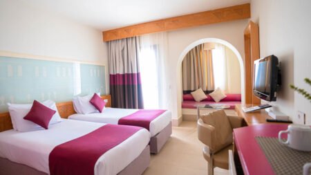 Winter Wanneer je tussen 01-11-2025 en 31-03-2026 in deze accommodatie verblijft, is onderstaande informatie van toepassing. * Ligging * Gelegen aan het privéstrand * Ligbedden * Parasol * Centrum van Hurghada op circa 16 kilometer * Luchthaven op circa 8 kilometer * Algemeen & faciliteiten * Meerdere gebouwen * Maximaal 2 verdiepingen * 469 kamers * Receptie * 24 uur per dag * Lobby * Bagageruimte * Wifi bij de receptie * Meerdere winkels * Wasservice tegen betaling * Tuin * Restaurants & bars * Buffetrestaurant * Gesloten vanwege werkzaamheden tussen ca. zondag 15 juni 2025 en vrijdag 15 augustus 2025 * À-la-carterestaurant (vooraf reserveren) tegen bijbetaling * 5 drinkgelegenheden * Activiteiten & ontspanning * Biljart tegen betaling * Duikcentrum tegen betaling * Fitness * Paardrijden tegen betaling * Squash * Tennis * Watersporten tegen betaling * Spafaciliteiten * Massages tegen betaling * Animatie voor volwassenen * Shows * Zwembaden * Buitenzwembad * Verwarmd tussen ca. november en maart * Buitenzwembad voor kinderen * Verwarmd tussen ca. november en maart * Zonneterras * Ligbedden * Parasol * Badhanddoekenservice * Kinderfaciliteiten * Mini club (4-12 jaar) * 6 keer per week * Babybedje op aanvraag via ons contact center * Verzorging * All Inclusive * Ontbijt in buffetvorm * Lunch in buffetvorm * Diner in buffetvorm * Selectie lokale (non-)alcoholische drankjes (10.00-00.00 uur) * Tegen betaling: dineren in het à-la-carterestaurant en import drankjes * Ultra All Inclusive * Ontbijt in buffetvorm * Lunch in buffetvorm * Diner in buffetvorm * Selectie lokale (non-)alcoholische drankjes * Tegen betaling: dineren in het à-la-carterestaurant en import drankjesHotelkamers * 2-persoonskamer Standaard DZ * Oppervlakte van circa 22 m² * Airconditioning * Kluisje tegen betaling * Televisie * Telefoon tegen betaling * Eet- en drinkfaciliteiten * Minibar tegen betaling * Badkamer met bad of douche, toilet en föhn * Balkon of terras (zitje) * 2-persoonskamer Standaard Zwembadzicht DZP * Oppervlakte van circa 22 m² * Zwembadzicht * Airconditioning * Kluisje tegen betaling * Televisie * Telefoon tegen betaling * Eet- en drinkfaciliteiten * Minibar tegen betaling * Badkamer met bad of douche, toilet en föhn * Balkon of terras (zitje) * 2-persoonskamer Standaard Zeezicht DZM * Oppervlakte van circa 22 m² * Zeezicht * Airconditioning * Kluisje tegen betaling * Televisie * Telefoon tegen betaling * Eet- en drinkfaciliteiten * Minibar tegen betaling * Badkamer met bad of douche, toilet en föhn * Balkon of terras (zitje) * 2-persoonskamer Superior Tuinzicht DSG * Oppervlakte van circa 52 m² * Tuinzicht * Airconditioning * Kluisje tegen betaling * Televisie * Telefoon tegen betaling * Eet- en drinkfaciliteiten * Minibar tegen betaling * Badkamer met bad of douche, toilet en föhn * Balkon of terras (zitje) * 2-persoonskamer Superior Zwembadzicht DSP * Oppervlakte van circa 52 m² * Zwembadzicht * Airconditioning * Kluisje tegen betaling * Televisie * Telefoon tegen betaling * Eet- en drinkfaciliteiten * Minibar tegen betaling * Badkamer met bad of douche, toilet en föhn * Balkon of terras (zitje) * Familiekamer Standaard Tuinzicht FZG * Oppervlakte van circa 52 m² * Tuinzicht * Eén grote kamer met meerdere slaapplaatsen: stapelbed * Airconditioning * Kluisje tegen betaling * Televisie * Telefoon tegen betaling * Eet- en drinkfaciliteiten * Minibar tegen betaling * Badkamer met bad of douche, toilet en föhn * Balkon of terras (zitje) * Familiekamer Standaard Zwembadzicht FZP * Oppervlakte van circa 52 m² * Zwembadzicht * Eén grote kamer met meerdere slaapplaatsen: stapelbed * Airconditioning * Kluisje tegen betaling * Televisie * Telefoon tegen betaling * Eet- en drinkfaciliteiten * Minibar tegen betaling * Badkamer met bad of douche, toilet en föhn * Balkon of terras (zitje)