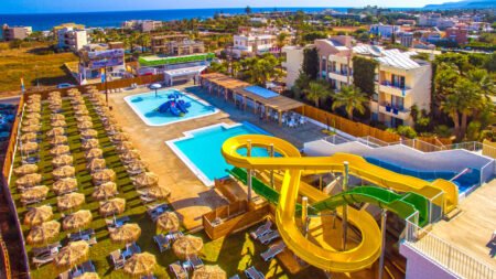 Direct naar: * Ligging () * Faciliteiten () * Restaurants & Bars () * Hotelkamers () * * Sport & Ontspanning () * Kinderfaciliteiten () * Zwembaden & Strand () * Verzorging () * Excursie () Ligging: Meropi Aparthotel in Malia * Rustig gelegen tussen de plaatsjes Stalis en Malia * Openbaar zandstrand op circa 200 meter * Het gezellige centrum van Malia op ca. 1 kilometer * Dichtstbijzijnde winkel en restaurant op circa 50 meter * Dichtstbijzijnde bar op circa 300 meter * Hersonissos op circa 5 kilometer * Malia Minoan palace op circa 3 kilometer * Bushalte op circa 700 meter * Taxistandplaats op circa 700 meter Faciliteiten * 2 hoofdgebouwen en 13 bijgebouwen met maximaal 3 verdiepingen * 4 liften aanwezig in de hoofdgebouwen * 125 kamers * 24-uursreceptie * Lobby * Tuin * Wifi in de openbare ruimtes * Doktersservice* (op aanvraag) * Privé parkeergelegenheid *Tegen betaling Restaurants & bars * 1 buffetrestaurant * 1 bar Hotelkamers * Familiekamer (2-4 personen) * Ca. 40-50 m² * Bestaat uit een woon-/slaapkamer met 2 sofabedden en een aparte slaapkamer * Airconditioning* * Televisie * Telefoon* * Kluisje* * Wifi * Kitchenette * Magnetron * Koelkast * 2-pits kookplaat * Bad of douche * Toilet * Föhn * Balkon of terras met zitje *Tegen betaling Sport & Ontspanning * Biljart* * Massages* *Tegen betaling Kinderfaciliteiten * 2 kinderzwembaden * Miniclub (5-12 jaar) * Speeltuin * Babybedjes (op aanvraag) Zwembaden & Strand * 3 buitenzwembaden * Waterpark met 2 zwembaden en 8 glijbanen * Zonneterras met gratis ligbedden en parasols * Badhandoekkenservice tegen betaling Verzorging Zomer: Meropi Aparthotel * All Inclusive: * Ontbijt in buffetvorm (07.30-09.45 uur) * Lunch in buffetvorm (12.30-14.00 uur) * Diner in buffetvorm (19.00-21.00 uur) * Koffie/thee en koekjes (15.00-17.00 uur) * Selectie lokale (non-)alcoholische drankjes (10.00-23.00 uur) * Tegen betaling: alle consumpties in het waterpark Excursie boottocht Spinalonga ’s Ochtends word je opgehaald bij je hotel en vertrek je samen met de gids richting Agios Nikolaos. Vanuit de gezellige haven stap je aan boord van de boot en vaar je in ongeveer een uur naar Spinalonga. Onderweg geniet je van prachtige uitzichten over de Mirabello baai. Op Spinalonga vertelt de gids je alles over de indrukwekkende geschiedenis van het eiland. De rondleiding van een uur laat je op een andere manier naar dit bijzondere stukje Kreta kijken. Na het bezoek is het tijd om te ontspannen. Aan boord krijg je een lekkere lunch en kun je een verfrissende duik nemen in het helderblauwe water. Terug in Agios Nikolaos heb je nog wat vrije tijd om rond te wandelen bij het beroemde binnenmeer of neer te strijken op een terrasje in de haven. Een gevarieerde dag vol verhalen, zon en zee. Leuk voor het hele gezin! Excursie in inclusief: * Bustransfer van en naar het hotel * Officiële gids * Lunch * Tickets voor de boot Excursie is exclusief: * Entree voor Spinalonga eiland, ca. €20,- per persoon. Tot 25 jaar gratis en vanaf 65 jaar 50% korting Meer informatie ontvang je ter plaatse van de reisleiding