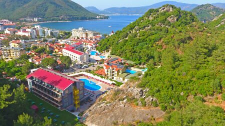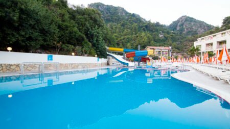 Zomer Wanneer je tussen 15-04-2026 en 31-10-2026 in deze accommodatie verblijft, is onderstaande informatie van toepassing. * Ligging * Aan de rand van het centrum van Icmeler * Privéstrand op circa 80 meter * Zandstrand * Ligbedden met matrasjes * Parasol * Centrum van Marmaris op circa 9 kilometer * Dichtstbijzijnde winkel op circa 100 meter * Dichtstbijzijnde restaurant op circa 100 meter * Dichtstbijzijnde bar op circa 100 meter * Bushalte (op loopafstand) * Algemeen & faciliteiten * 5 gebouwen * Maximaal 5 verdiepingen * 374 kamers * Receptie * 24 uur per dag * Lobby * Meerdere liften * Lift in elk gebouw * Bagageruimte * Wifi in alle openbare ruimtes * Meerdere winkels * Minimarkt * Wasservice tegen betaling * Doktersservice tegen betaling * op aanvraag * Tuin * Openbare parkeergelegenheid * Privé parkeergelegenheid * Restaurants & bars * Buffetrestaurant * 4 drinkgelegenheden * 4 bars * Activiteiten & ontspanning * Aerobics * Beachvolleybal * Darts * Duikcentrum tegen betaling * Fitness * Tafeltennis * Watersporten tegen betaling * Yoga * Spa Center * Sauna * Hamam * Massages tegen betaling * Gameroom * Animatie voor volwassenen * 6 keer per week * Zwembaden * 4 buitenzwembaden * Eén van deze zwembaden heeft 5 glijbanen * 4 buitenzwembaden voor kinderen * Zonneterras * Ligbedden met matrasjes * Parasol * Badhanddoekenservice gratis met borg * Kinderfaciliteiten * Mini club (4-12 jaar) * Minidisco * Buitenspeeltuin * Babybedje als preferentie toe te voegen in het boekingsformulier * Verzorging * All Inclusive * Ontbijt in buffetvorm (07.00-10.00 uur) * Laat ontbijt in buffetvorm (10.00-10.30 uur) * Lunch in buffetvorm (12.30-14.00 uur) * Diner in buffetvorm (19.00-21.00 uur) * Snacks (12.00-17.00 uur) * Koffie, thee & koekjes (17.00-18.00 uur) * IJs (19.00-21.00 uur) * Middernachtsnack (00.00-01.00 uur) * Selectie lokale (non-)alcoholische drankjes (10.00-00.00 uur) * Tegen betaling: import drankjes, turkse koffie en verse vruchtensappenHotelkamers * 2-persoonskamer Voordeel DE * Speciaal tarief * Locatie, formaat, uitzicht en/of faciliteiten kunnen afwijken ten opzichte van andere kamertypes * Oppervlakte tussen 17 en 25 m² * Airconditioning gratis * Kluisje tegen betaling * Televisie * Telefoon tegen betaling * Eet- en drinkfaciliteiten * Minibar gratis * Badkamer douche, toilet en föhn * Wifi * Balkon (zitje) * 2-persoonskamer Standaard DZ * Oppervlakte tussen 17 en 25 m² * Airconditioning * Kluisje tegen betaling * Televisie * Telefoon tegen betaling * Eet- en drinkfaciliteiten * Minibar * Bij aankomst gevuld met water * Badkamer douche, toilet en föhn * Wifi * Balkon (zitje) * 2-persoonskamer Standaard DZ1 * Oppervlakte tussen 17 en 25 m² * Airconditioning gratis * Kluisje tegen betaling * Televisie * Telefoon tegen betaling * Eet- en drinkfaciliteiten * Minibar gratis * Badkamer douche, toilet en föhn * Wifi * Balkon (zitje) * 2-persoonskamer Deluxe DD * Eén grote kamer * Airconditioning gratis * Kluisje tegen betaling * Televisie * Telefoon tegen betaling * Eet- en drinkfaciliteiten * Minibar gratis * Badkamer douche, toilet en föhn * Wifi * Balkon (zitje) * 2-persoonskamer Deluxe Whirlpool DDJ * Eén grote kamer * Airconditioning gratis * Kluisje tegen betaling * Televisie * Telefoon tegen betaling * Eet- en drinkfaciliteiten * Minibar gratis * Badkamer douche, bubbelbad, toilet en föhn * Wifi * Balkon (zitje) * Familiekamer Standaard FZ * Airconditioning gratis * Kluisje tegen betaling * Televisie * Telefoon tegen betaling * Eet- en drinkfaciliteiten * Minibar gratis * Badkamer douche, toilet en föhn * Wifi * Balkon (zitje) * Suite U1 * Op de bovenste verdieping * 2 slaapkamers * Eén slaapkamer * Eén slaapkamer * Airconditioning gratis * Kluisje tegen betaling * Televisie * Telefoon tegen betaling * Eet- en drinkfaciliteiten * Minibar gratis * Badkamer douche, toilet en föhn * Wifi * Balkon (zitje)