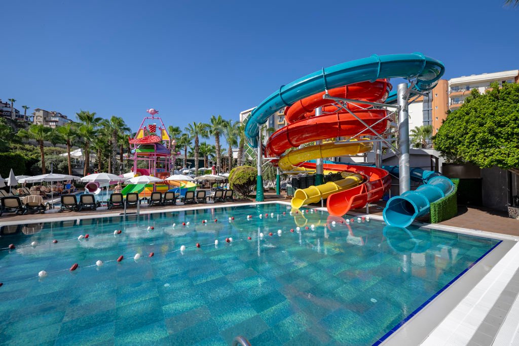Zomer Wanneer je tussen 17-04-2026 en 12-11-2026 in deze accommodatie verblijft, is onderstaande informatie van toepassing. * Ligging * Openbaar strand op circa 250 meter * Zandstrand * Ligbedden met matrasjes * Parasol * Dichtstbijzijnde winkel op circa 500 meter * Dichtstbijzijnde restaurant op circa 500 meter * Dichtstbijzijnde bar op circa 500 meter * Avsallar op circa 500 meter * Alanya op circa 22 kilometer * Bushalte op circa 50 meter * Algemeen & faciliteiten * 4 gebouwen * Maximaal 5 verdiepingen * 575 kamers * Receptie * 24 uur per dag * Lobby * Meerdere liften * Lift in elk gebouw * Bagageruimte * Wifi in alle openbare ruimtes * Wasservice tegen betaling * Doktersservice tegen betaling * Tuin * Openbare parkeergelegenheid * Privé parkeergelegenheid * Restaurants & bars * Buffetrestaurant * 2 à-la-carterestaurants * 6 drinkgelegenheden * 6 bars * Activiteiten & ontspanning * Aerobics * Biljart tegen betaling * Boccia * Darts * Fitness * Tafeltennis * Volleybal * Watersporten tegen betaling * Spafaciliteiten * Sauna * Turks stoombad * Bubbelbad binnen * Massages tegen betaling * Schoonheidsbehandelingen tegen betaling * Gameroom toegang tegen betaling * Animatie * Meerdere keren per week * Zwembaden * 3 buitenzwembaden * Eén van deze zwembaden heeft meerdere glijbanen * Buitenzwembad voor kinderen * Binnenzwembad * Zonneterras * Ligbedden met matrasjes * Parasol * Badhanddoekenservice gratis met borg * Kinderfaciliteiten * Mini club (4-12 jaar) * Minidisco * Buitenspeeltuin * Verzorging * Ultra All Inclusive * Ontbijt in buffetvorm (07.30-10.00 uur) * Laat ontbijt in buffetvorm (10.00-11.00 uur) * Lunch in buffetvorm (12.30-14.00 uur) * Diner in buffetvorm (19.00-21.00 uur) * Dineren in één van de à-la-carterestaurants 1 keer per verblijf * Snacks (12.00-16.30 uur) * Koffie, thee & koekjes (17.00-17.30 uur) * Middernachtsnack (23.30-00.30 uur) * Selectie lokale (non-)alcoholische drankjes (24 uur per dag) * Tegen betaling: IJs, import drankjes, cocktails, turkse koffie, verse vruchtensappen en roomserviceHotelkamers * 2-persoonskamer Voordeel DE * Speciaal tarief * Locatie, formaat, uitzicht en/of faciliteiten kunnen afwijken ten opzichte van andere kamertypes * Airconditioning * Televisie * Telefoon tegen betaling * Eet- en drinkfaciliteiten * Minibar * Badkamer douche, toilet en föhn * Balkon (zitje) * 2-persoonskamer Standaard Landzicht DZ * Oppervlakte van circa 25 m² * Landzicht * Airconditioning * Televisie * Telefoon tegen betaling * Eet- en drinkfaciliteiten * Minibar * Badkamer douche, toilet en föhn * Balkon (zitje) * 2-persoonskamer Standaard Zwembadzicht DZP * Oppervlakte van circa 25 m² * Zwembadzicht * Airconditioning * Televisie * Telefoon tegen betaling * Eet- en drinkfaciliteiten * Minibar * Badkamer douche, toilet en föhn * Balkon (zitje) * 2-persoonskamer Standaard Zeezicht DZM * Oppervlakte van circa 25 m² * Zeezicht * Airconditioning * Televisie * Telefoon tegen betaling * Eet- en drinkfaciliteiten * Minibar * Badkamer douche, toilet en föhn * Balkon (zitje) * 2-persoonskamer Suite DU * Oppervlakte van circa 35 m² * Airconditioning * Televisie * Telefoon tegen betaling * Eet- en drinkfaciliteiten * Minibar * Badkamer douche, toilet en föhn * Balkon (zitje) * 2-persoonskamer Swimup DW * Oppervlakte van circa 25 m² * Airconditioning * Televisie * Telefoon tegen betaling * Eet- en drinkfaciliteiten * Minibar * Badkamer bad of douche, toilet, föhn, badjassen en badslippers * Balkon of terras (zitje, ligstoelen) * Directe toegang tot het gedeelde zwembad * Familiekamer Standaard FZ * Oppervlakte van circa 45 m² * Woon-/slaapkamer * Eén slaapkamer * Airconditioning * Televisie * Telefoon tegen betaling * Eet- en drinkfaciliteiten * Minibar * Badkamer douche, toilet en föhn * Balkon (zitje)