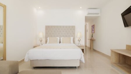 Zomer Wanneer je tussen 04-05-2026 en 31-10-2026 in deze accommodatie verblijft, is onderstaande informatie van toepassing. * Ligging * Gelegen op een heuvel * Privéstrand op circa 500 meter * Kiezelstrand * Ligbedden * Parasol * Centrum van Messonghi op circa 5 kilometer * Dichtstbijzijnde restaurant op circa 3 kilometer * Corfu Town op circa 25 kilometer * Algemeen & faciliteiten * Geheel gerenoveerd in 2024 * Adults Only (minimumleeftijd 16 jaar) * 9 gebouwen * Maximaal 4 verdiepingen * 181 kamers * Receptie * 24 uur per dag * 4 liften * Niet in elk gebouw een lift * Bagageruimte * Wifi in alle openbare ruimtes * Winkel (minimarkt) * Doktersservice tegen betaling * op aanvraag * Tuin * Openbare parkeergelegenheid * Restaurants & bars * Buffetrestaurant * 4 à-la-carterestaurants * Grieks restaurant (vooraf reserveren) * Italiaans restaurant (vooraf reserveren) * Mediterraans restaurant (vooraf reserveren) * Restaurant met internationale specialiteiten (vooraf reserveren) * 8 drinkgelegenheden * Activiteiten & ontspanning * Aerobics tegen betaling * Fitness * Tafeltennis tegen betaling * Tennis tegen betaling * Spa Center * Sauna tegen betaling * Hamam tegen betaling * Massages tegen betaling * Schoonheidsbehandelingen tegen betaling * Livemuziek * 7 keer per week * Zwembaden * 4 buitenzwembaden * Zonneterras * Ligbedden met matrasjes * Parasol * Badhanddoekenservice * Verzorging * Ultra All Inclusive * Ontbijt in buffetvorm * Lunch in buffetvorm * Diner in buffetvorm * Snacks * Koffie, thee & koekjes * Selectie lokale (non-)alcoholische drankjesHotelkamers * 2-persoonskamer Superior DS1 * 2-persoonskamer Superior DS2 * 2-persoonskamer Superior Zeezicht DSM * 2-persoonskamer Premium Tuinzicht DRG * Junior suite J1