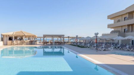 Zomer Wanneer je tussen 24-04-2026 en 31-10-2026 in deze accommodatie verblijft, is onderstaande informatie van toepassing. * Ligging * Gelegen aan het openbare strand * Privégedeelte van de accommodatie * Zandstrand * Ligbedden gratis * Parasol gratis * Dichtstbijzijnde restaurant op circa 100 meter * Dichtstbijzijnde bar op circa 100 meter * Amoudara op circa 2 kilometer * Heraklion op circa 6 kilometer * Bushalte op circa 100 meter * Algemeen & faciliteiten * 3 gebouwen * Maximaal 3 verdiepingen * 136 kamers * Receptie * 24 uur per dag * Lobby * 2 liften * Niet in elk gebouw een lift * Bagageruimte * Wifi in alle openbare ruimtes * Wasservice tegen betaling * Doktersservice tegen betaling * Tuin * Openbare parkeergelegenheid * Privé parkeergelegenheid * Beperkt aantal plaatsen * Restaurants & bars * Buffetrestaurant * Roomservice tegen betaling * Drinkgelegenheid * Poolbar * Activiteiten & ontspanning * Aerobics * Beachvolleybal * Biljart * Boccia * Tafeltennis * Animatie voor volwassenen * 7 keer per week in het hoogseizoen * Shows voor volwassenen * 6 keer per week * Livemuziek * Eén keer per week * Zwembaden * Buitenzwembad * Buitenzwembad voor kinderen * Zonneterras * Ligbedden * Parasol * Badhanddoekenservice gratis met borg * Kinderfaciliteiten * Mini club (4-12 jaar) * 6 keer per week in het hoogseizoen * Minidisco * Buitenspeeltuin * Babysitservice * ter plaatse op aanvraag * Verzorging * All Inclusive * Ontbijt in buffetvorm (07.15-10.00 uur) * Laat continentaal ontbijt (10.00-10.30 uur) * Lunch in buffetvorm (12.30-14.30 uur) * Diner in buffetvorm (18.45-21.30 uur) * Snacks (11.00-12.30 uur en 15.00-17.30 uur) * Koffie, thee & koekjes (16.00-17.00 uur) * IJs (10.30-19.00 uur) * Selectie geïmporteerde alcoholische drankjes (10.00-23.00 uur) * Selectie lokale (non-)alcoholische drankjes (10.00-23.00 uur) * Tegen betaling: drankjes in flessen, import drankjes, Speciale koffies en roomservice * Goed om te weten * De transferbus stopt op circa 100 meterHotelkamers * 1-persoonskamer Superior ES * 2-persoonskamer Superior DS * Oppervlakte circa 20 m² * Gerenoveerd * Landzicht * Airconditioning * Kluisje tegen betaling * Satelliettelevisie * Telefoon * Eet- en drinkfaciliteiten * Koffie- en theefaciliteiten * Mini koelkast * Badkamer inloopdouche, toilet en föhn * Wifi * Balkon of terras (zitje) * Welkomstgeschenk * 2-persoonskamer Superior Zijzeezicht DSI * Oppervlakte circa 20 m² * Zijzeezicht * Airconditioning * Kluisje tegen betaling * Satelliettelevisie * Telefoon tegen betaling * Eet- en drinkfaciliteiten * Koffie- en theefaciliteiten * Mini koelkast * Badkamer inloopdouche, toilet, föhn, badjassen en badslippers * Wifi * Balkon of terras (zitje) * Welkomstgeschenk * 2-persoonskamer Premium DR * 2-persoonskamer Premium Zijzeezicht DRI * Oppervlakte van circa 20 m² * Zijzeezicht * Airconditioning * Kluisje * Satelliettelevisie * Telefoon tegen betaling * Eet- en drinkfaciliteiten * Koffie- en theefaciliteiten * Nespresso koffiezetapparaat * Mini koelkast * Badkamer douche, toilet, föhn, badjassen en badslippers * Wifi * Balkon of terras (zitje) * Welkomstgeschenk * Fruitmand bij aankomst * Junior suite Standaard JZ * Junior suite Standaard Zijzeezicht JZI