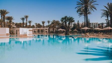 Met het strand voor de deur, Zwemmen, spelen en sporten, Of op je luie stoel in de tuin, Relaxen tussen de palmbomen, Of plonsen in het zwembad, Erop uit? wandel naar de medina & inclusief transfers.