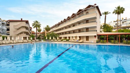 Zomer Wanneer je tussen 01-04-2026 en 09-11-2026 in deze accommodatie verblijft, is onderstaande informatie van toepassing. * Ligging * Privéstrand * Zandstrand * Centrum van Alanya op circa 400 meter * Dichtstbijzijnde winkel op circa 100 meter * Bushalte op circa 50 meter * Taxistandplaats op circa 10 meter * Algemeen & faciliteiten * 6 gebouwen * Maximaal 6 verdiepingen * 240 kamers * Receptie * 24 uur per dag * Lobby * 4 liften * Niet in elk gebouw een lift * Wifi in alle openbare ruimtes * Wasservice tegen betaling * Doktersservice tegen betaling * Tuin * Openbare parkeergelegenheid tegen betaling * Privé parkeergelegenheid * Restaurants & bars * Buffetrestaurant * 4 drinkgelegenheden * Activiteiten & ontspanning * Aerobics * Basketbal * Beachvolleybal * Biljart * Boccia * Darts * Duikcentrum tegen betaling * Fitness * Tafeltennis * Tennis * Watersporten * Spa Center * Sauna tegen betaling * Turks stoombad tegen betaling * Massages tegen betaling * Schoonheidsbehandelingen tegen betaling * Animatie * 6 keer per week * Shows * 6 keer per week * Livemuziek * Eén keer per week * Zwembaden * Buitenzwembad * Buitenzwembad voor kinderen * Zonneterras * Ligbedden met matrasjes * Parasol * Badhanddoekenservice tegen betaling * Kinderfaciliteiten * Mini club (6-12 jaar) * 6 keer per week tussen ca. vrijdag 5 juni 2026 en zondag 4 oktober 2026 * Minidisco * 6 keer per week * Buitenspeeltuin * Babybedje op aanvraag via ons contact center * Verzorging * All Inclusive * Ontbijt in buffetvorm (07.00-10.00 uur) * Laat ontbijt in buffetvorm (10.00-10.30 uur) * Lunch in buffetvorm (12.30-14.00 uur) * Diner in buffetvorm (18.30-20.30 uur) * Snacks (11.30-16.30 uur) * Koffie, thee & koekjes (16.00-17.00 uur) * IJs (16.00-17.00 uur) * Middernachtsoep (23.00-00.00 uur) * Selectie lokale (non-)alcoholische drankjes (10.00-00.00 uur) * Tegen betaling: import drankjes, cocktails, turkse koffie en verse vruchtensappen * Goed om te weten * Duurzaamheidslabel(s): TravelifeHotelkamers * 2-persoonskamer Standaard A DZ1 * Oppervlakte tussen 18 en 20 m² * Gelegen aan het strand * Airconditioning * Kluisje tegen betaling * Televisie * Telefoon tegen betaling * Eet- en drinkfaciliteiten * Koffie- en theefaciliteiten * Mini koelkast * Badkamer met douche, toilet en föhn * Wifi * Balkon (zitje) * 2-persoonskamer Standaard B DZ2 * Oppervlakte tussen 18 en 20 m² * In het bijgebouw * Airconditioning * Kluisje tegen betaling * Televisie * Telefoon tegen betaling * Eet- en drinkfaciliteiten * Koffie- en theefaciliteiten * Mini koelkast * Badkamer met douche, toilet en föhn * Wifi * Balkon (zitje) * Familiekamer Standaard B FZ2 * Oppervlakte van circa 40 m² * In het bijgebouw * Gelegen aan het zwembad * 2 slaapkamers * Airconditioning * Kluisje tegen betaling * Televisie * Telefoon tegen betaling * Eet- en drinkfaciliteiten * Koffie- en theefaciliteiten * Mini koelkast * Badkamer met douche in bad, toilet en föhn * Wifi * Balkon (zitje)