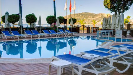 Zomer Wanneer je tussen 01-04-2025 en 31-10-2025 in deze accommodatie verblijft, is onderstaande informatie van toepassing. * Ligging * Privéstrand op circa 50 meter * Weg tussen het strand en de accommodatie * Dichtstbijzijnde winkel op circa 500 meter * Dichtstbijzijnde restaurant op circa 200 meter * Dichtstbijzijnde bar op circa 200 meter * Alanya op circa 1 kilometer * Bushalte op circa 1 kilometer * Algemeen & faciliteiten * 1 gebouw * Maximaal 5 verdiepingen * 80 kamers * Receptie * 24 uur per dag * Lobby * 2 liften * Lift in elk gebouw * Wifi in één van de openbare ruimtes * Wasservice tegen betaling * Openbare parkeergelegenheid * Restaurants & bars * Buffetrestaurant * À-la-carterestaurant * 3 drinkgelegenheden * Beachbar * Lobbybar * Poolbar * Activiteiten & ontspanning * Biljart tegen betaling * Darts * Fitness * Shows * Eén keer per week * Zwembaden * Buitenzwembad * Buitenzwembad voor kinderen * Zonneterras * Ligbedden met matrasjes * Parasol * Kinderfaciliteiten * Babybedje * Verzorging * All Inclusive * Ontbijt in buffetvorm (07.30-10.00 uur) * Lunch in buffetvorm (12.30-14.00 uur) * Diner in buffetvorm (19.00-21.00 uur) * Koffie, thee & koekjes (16.00-17.00 uur) * Selectie lokale (non-)alcoholische drankjes (10.00-22.00 uur) * Tegen betaling: dineren in het à-la-carterestaurant en alle consumpties in enkele barsHotelkamers * 2-persoonskamer Standaard DZ * Oppervlakte van circa 19 m² * Airconditioning * Kluisje tegen betaling * Satelliettelevisie * Telefoon tegen betaling * Eet- en drinkfaciliteiten * Waterkoker * Minibar * Niet gevuld * Badkamer met bad of douche, toilet en föhn * Wifi tegen betaling * Balkon (zitje)