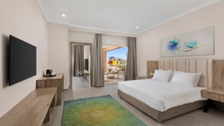 Winter Wanneer je tussen 01-11-2025 en 31-03-2026 in deze accommodatie verblijft, is onderstaande informatie van toepassing. * Ligging * Openbaar strand Dana Beach op circa 900 meter * Zandstrand * Ligbedden met matrasjes * Parasol * Hurghada op circa 18 kilometer * Luchthaven op circa 15 kilometer * Algemeen & faciliteiten * 26 gebouwen * Maximaal 2 verdiepingen * 150 kamers * Receptie * 24 uur per dag * Lobby * 8 liften * Bagageruimte * Wifi in alle openbare ruimtes * Meerdere winkels * Minimarkt * Wasservice tegen betaling * Doktersservice tegen betaling * Tuin * Privé parkeergelegenheid * Restaurants & bars * 12 buffetrestaurants * Roomservice tegen betaling * 13 drinkgelegenheden * 13 bars * Activiteiten & ontspanning * Aerobics * Basketbal * Beachvolleybal * Biljart tegen betaling * Darts * Duikcentrum tegen betaling * Midgetgolf * Padellen tegen betaling * Tafeltennis * Tennis * Voetbal * Volleybal * Watersporten * Yoga * Spa Center * Binnenzwembad * Sauna tegen betaling * Hamam tegen betaling * Bubbelbad binnen tegen betaling * Massages tegen betaling * Schoonheidsbehandelingen tegen betaling * Kapsalon tegen betaling * Fitnessruimte * Shows * Livemuziek * Zwembaden * 6 buitenzwembaden * Een aantal van deze zwembaden heeft diverse glijbanen * De glijbanen hebben verschillende openingsperiodes * 8 buitenzwembaden voor kinderen * 4 van deze zwembaden zijn verwarmd * Een aantal van deze zwembaden heeft diverse glijbanen * De glijbanen hebben verschillende openingsperiodes * Aquapark * 44 glijbanen * Zonneterras * Ligbedden met matrasjes * Parasol * Badhanddoekenservice * Kinderfaciliteiten * Mini club (4-11 jaar)- * Minidisco * Lunapark * Babybedje als preferentie toe te voegen in het boekingsformulier * Verzorging * All Inclusive * Ontbijt in buffetvorm (07.00-10.00 uur) * Laat ontbijt in buffetvorm (10.00-10.30 uur) * Lunch in buffetvorm (12.30-14.30 uur) * Diner in buffetvorm (18.00-21.00 uur) * Snacks (12.00-17.00 uur) * Koffie, thee & koekjes (11.00-21.00 uur) * IJs (11.00-21.00 uur) * Middernachtsnack (22.00-00.00 uur) * Selectie lokale (non-)alcoholische drankjes (10.00-00.00 uur)Hotelkamers * Familiekamer Premium Zwembadzicht FRP * Oppervlakte circa 120 m² * Zwembadzicht * Woonkamer * 2 slaapkamers * Airconditioning * Kluisje * Televisie * Telefoon tegen betaling * Eet- en drinkfaciliteiten * Koffie- en theefaciliteiten * Minibar * Dagelijks aangevuld met water * Badkamer inloopdouche, toilet en föhn * Wifi * Balkon of terras (zitje)