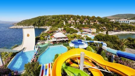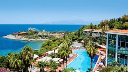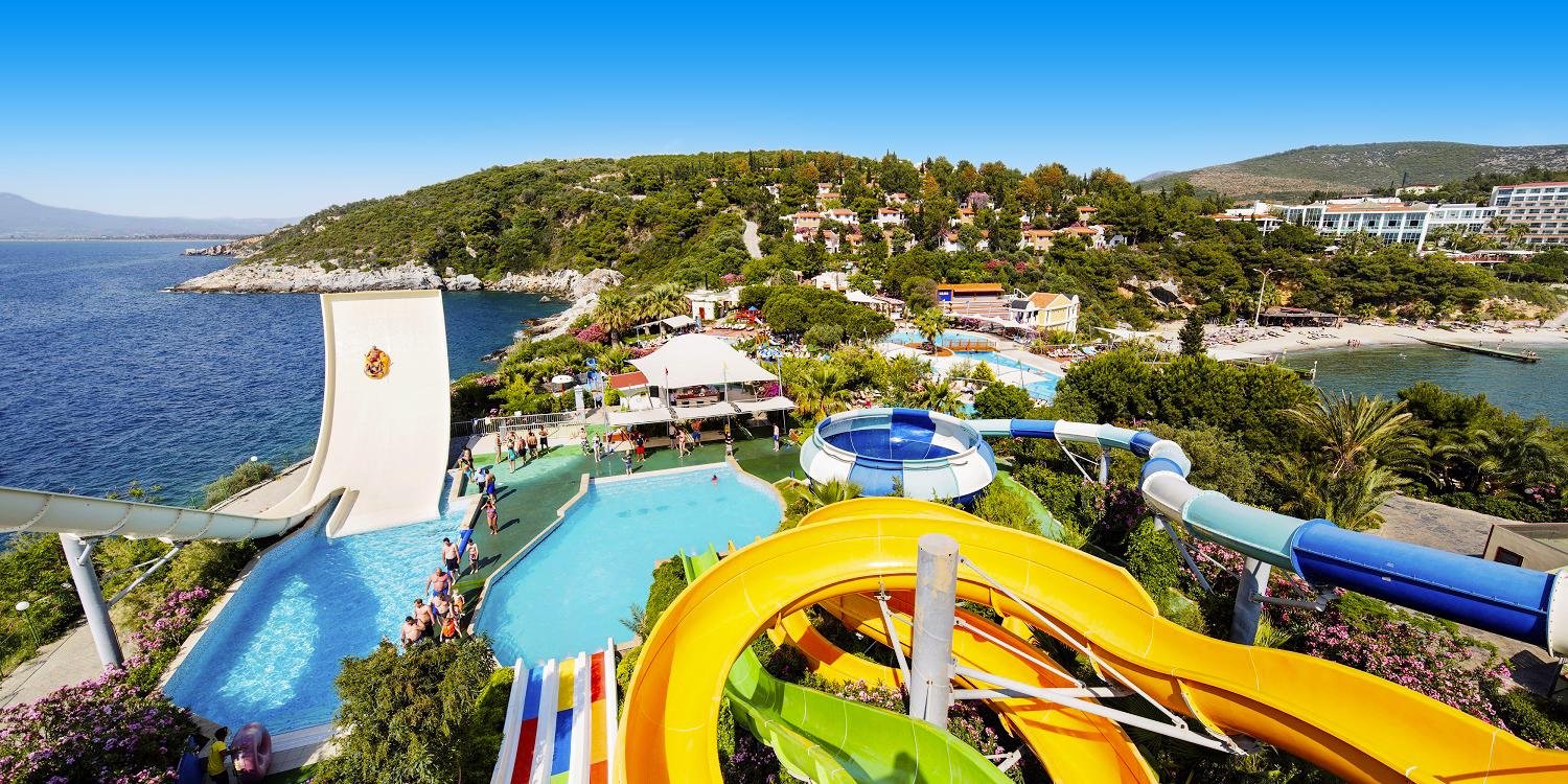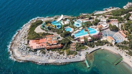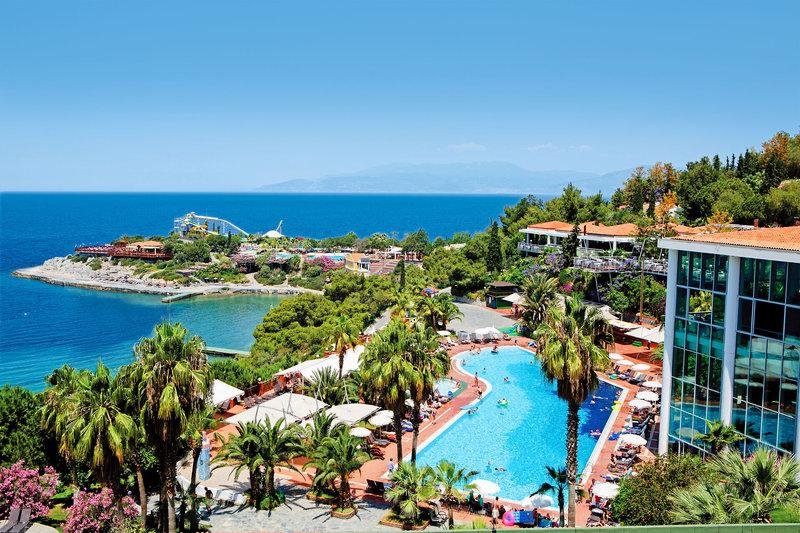 Ga voor een 5-sterrenvakantie aan de Egeïsche kust! Bij Hotel Pine Bay Holiday Resort wacht een onvergetelijke week je op. Van het prachtige aquapark, de op-en-top-sportfaciliteiten tot allerlei animaties en zelfs een buitendisco! Je dagen van verkoeling wissel je af met een strandbezoek, want het hotel heeft ook in het zand ligbedden voor je klaar staan! Na een dag vol hoogtepunten en magisch plezier; bezoek je van één van de 8 restaurants. Ga je voor Vis, Mexicaans, Aziatisch of misschien toch het steakhouse? Voor een ijskoud drankje heb je ook ruime keuze uit 13 verschillende bars. Geniet van een drankje aan het zwembad, proost met panoramisch uitzicht of drink iets gezond bij de vitamine-bar! Het is allemaal mogelijk bij dit grandioze hotel. Je kids vermaken zich hoe dan ook met de geweldige buitenbaden en 5 glijbanen. Maar ook diverse miniclubs en de mini-disco; houden de kids meer dan tevreden. Boek snel jouw gezinsverblijf aan de kust van Kusadasi!