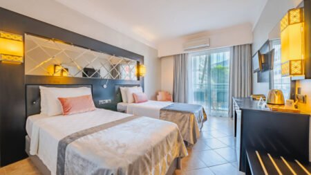 Zomer Wanneer je tussen 01-04-2026 en 31-10-2026 in deze accommodatie verblijft, is onderstaande informatie van toepassing. * Ligging * Privéstrand * Kiezelstrand * Aan een promenade * Ligbedden * Parasol * Centrum van Marmaris op circa 2 kilometer * Centrum van Içmeler op circa 8 kilometer * Dichtstbijzijnde restaurant op circa 20 meter * Dichtstbijzijnde bar op circa 50 meter * Bushalte op circa 5 meter * Algemeen & faciliteiten * 4 gebouwen * Maximaal 6 verdiepingen * 632 kamers * Receptie * 24 uur per dag * Lobby * 9 liften * Bagageruimte * Wifi in alle openbare ruimtes * Winkel (minimarkt) * Wasservice tegen betaling * Doktersservice tegen betaling * op aanvraag * Tuin * Openbare parkeergelegenheid * Restaurants & bars * Buffetrestaurant * À-la-carterestaurant (vooraf reserveren) * Gesloten tussen * Snackrestaurant * 5 drinkgelegenheden * 5 bars * Activiteiten & ontspanning * Aerobics * Aquagym * Biljart * Danslessen * Eén keer per week * Darts * Ochtendgymnastiek * Tafeltennis * Waterpolo * Spa Center * Minimumleeftijd van toepassing * Sauna vooraf reserveren * Turks stoombad vooraf reserveren * Massages tegen betaling * Schoonheidsbehandelingen tegen betaling * Fitnessruimte * Animatie- * Livemuziek * 2 keer per week in het hoogseizoen * Zwembaden * 2 buitenzwembaden * Verwarmd * Eén van deze zwembaden heeft 3 glijbanen * De glijbanen hebben verschillende openingsperiodes * Buitenzwembad voor kinderen * Glijbaan * Binnenzwembad * Miniumleeftijd van toepassing * Verwarmd * Binnenzwembad voor kinderen * Zonneterras * Ligbedden * Parasol * Badhanddoekenservice * Kinderfaciliteiten * Mini club (4-12 jaar) * Kinderen tussen 4 en 12 jaar zijn welkom onder begeleiding van een volwassene * Minidisco * Buitenspeeltuin * BabybedjeHotelkamers * 2-persoonskamer Voordeel DE * Speciaal tarief * Locatie, formaat, uitzicht en/of faciliteiten kunnen afwijken ten opzichte van andere kamertypes * Airconditioning * Kluisje * Televisie * Telefoon tegen betaling * Eet- en drinkfaciliteiten * Koffie- en theefaciliteiten * Minibar * Badkamer douche, toilet, föhn en badslippers * Balkon of terras (zitje) * 2-persoonskamer Standaard DZ * Oppervlakte circa 18 m² * Airconditioning * Kluisje * Televisie * Telefoon tegen betaling * Eet- en drinkfaciliteiten * Koffie- en theefaciliteiten * Minibar * Meerdere keren per week aangevuld met water en sap * Badkamer douche, toilet, föhn en badslippers * Balkon of terras (zitje) * 2-persoonskamer Standaard Zeezicht DZM * Oppervlakte circa 18 m² * Zeezicht * Airconditioning * Kluisje * Televisie * Telefoon tegen betaling * Eet- en drinkfaciliteiten * Koffie- en theefaciliteiten * Minibar * Meerdere keren per week aangevuld met water en sap * Badkamer douche, toilet, föhn en badslippers * Balkon of terras (zitje) * 2-persoonskamer Beach Front Zeezicht DAM * Oppervlakte van circa 18 m² * Zeezicht * Strandzijde * Airconditioning * Kluisje * Televisie * Telefoon tegen betaling * Eet- en drinkfaciliteiten * Koffie- en theefaciliteiten * Minibar * Meerdere keren per week aangevuld met water en sap * Badkamer douche, toilet, föhn en badslippers * Balkon of terras (zitje) * Familiekamer Standaard Landzicht FZL * Familiekamer Standaard Zeezicht FZM