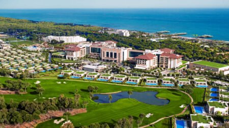 Direct naar: * Ligging () * Faciliteiten () * Restaurants & bars () * Zwembaden () * Hotelkamers () * Activiteiten & ontspanning () * Kinderfaciliteiten () * Verzorging () Ligging Regnum Carya * Direct aan het privéstrand * Op ca. 6 kilometer van Belek * Bushalte op ca. 200 meter Faciliteiten * 1 gebouw met maximaal 5 verdiepingen * 6 liften * 612 kamers * 24-uursreceptie * Lobby * Bagageruimte * Tuin * Wifi in de openbare ruimtes * Roomservice* * Winkeltjes en minimarkt* * Wasservice* * Doktersservice* * Kapsalon* * Privé parkeergelegenheid *Tegen betaling Restaurants & bars * 1 buffetrestaurant * 11 à-la-carterestaurants (vooraf reserveren) * 17 bars * Disco Zwembaden * 5 buitenzwembaden (waarvan 1 alleen voor volwassenen) * 1 golfslagbad (gesloten in de winter) * 1 binnen- en buitenzwembad in de spa (verwarmd) * Zonneterras * Privéstrand * Ligbedden, badhanddoekenservice en parasols gratis (zwembad en strand) Hotelkamers * Jade kamer (1-4 personen) * Ca. 62 m² * Welkomscadeau * Gelegen in het hoofdgebouw * Telefoon* * Airconditioning * Televisie * Minibar * Kluisje * Nespresso machine * Wifi * Strijkplank en strijkijzer * Ruime kledingkast * Kussenmenu * Bad en douche * Toilet * Föhn * Bad- en doucheproducten * Badjas * Slippers * Balkon of terras met zitje * Landzicht * Tegen een meerprijs boekbaar met zijzeezicht of zeezicht *Tegen betaling * Pearl Pool kamer (2-4 personen) * Ca. 62 m² * Dezelfde faciliteiten als de Jade kamer * Terras met zitje en ligbedden en direct toegang tot een gezamenlijk zwembad * Amber Lagoon suite (2-5 personen) * Ca. 90 m² * Bestaat uit een 1 ruimte met een zitgedeelte en een slaapbank * Dezelfde faciliteiten als de Jade kamer * Terras met zitje en ligbedden en direct toegang tot een gezamenlijk zwembad * Niet boekbaar tussen 06-01 t/m 31-03 * Pearl Pool familiekamer (3-7 personen) * Ca. 124 m² * Bestaat uit 2 slaapkamers en 2 badkamers * Dezelfde faciliteiten als de Jade kamer * Terras met zitje en ligbedden en direct toegang tot een gezamenlijk zwembad Activiteiten & ontspanning * Fitness club * Aerobics * Yoga * Boogschieten * Basketbal * Beachvolleybal * Darts * Voetbal * Biljart* * Tafeltennis * Tafelvoetbal * Padel* * Tennis * Bowlen* * Gameroom* * Golfbanen in de omgeving* (vooraf reserveren) * Watersporten aan het strand* * Turks bad * Sauna * Binnenzwembad * Bubbelbad* * Massages en behandelingen* * Dagelijks entertainment *Tegen betaling Kinderfaciliteiten * 1 kinderzwembad (gesloten in de winter) * 1 kinderbad met glijbaantjes en speeltoestellen (op vaste tijden open, gesloten in de winter) * 1 kinder binnenzwembad in de spa * Babyclub (0-4 jaar) * Miniclub (4-7 jaar) * Juniorclub (8-12 jaar) * Teenageclub (13-17 jaar) * Speeltuin * Minidisco * Babybedjes (op aanvraag en op basis van beschikbaarheid) * Babysitservice op aanvraag en tegen betaling Verzorging Zomer: Regnum Carya * Verblijf o.b.v. Ultra All Inclusive: * Ontbijt in buffetvorm (06.30-11.00 uur) * Lunch in buffetvorm (12.30-15.00 uur) * Diner in buffetvorm (19.00-22.00 uur) * Koffie/thee en koekjes en gebak (09.00-23.00 uur) * IJs op vaste tijden * Middernachtsnack (22.00-07.00 uur) * Tijdens je verblijf mag je à-la-carte dineren bij 7 à-la-carterestaurants (vooraf reserveren) * Geselecteerde lokale (non-)alcoholische dranken en een selectie import dranken (24/7) * Tegen betaling: import drankjes, roomservice en diner in 3 à-la-carterestaurants (vooraf reserveren)