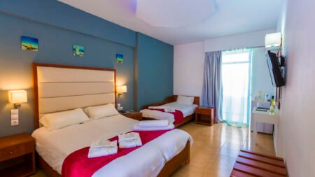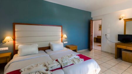 Zomer Wanneer je tussen 07-05-2024 en 31-10-2024 in deze accommodatie verblijft, is onderstaande informatie van toepassing. * Ligging * Aan de rand van het centrum van Adelianos Kampos * Openbaar strand op circa 150 meter * Zandstrand * Dichtstbijzijnde winkel op circa 50 meter * Dichtstbijzijnde restaurant op circa 50 meter * Dichtstbijzijnde bar op circa 100 meter * Rethymnon op circa 6 meter * Bushalte op circa 100 meter * Taxistandplaats op circa 100 meter * Algemeen & faciliteiten * 6 gebouwen * Maximaal 2 verdiepingen * 153 kamers * Receptie * 24 uur per dag open * Lobby * 2 liften * Niet in elk gebouw een lift * Wasservice tegen betaling * Medische service tegen betaling * Restaurants & bars * Buffetrestaurant * Roomservice * 3 drinkgelegenheden * 1 lobbybars * 2 poolbars * Activiteiten & ontspanning * Aerobics * Duikcentrum * Fitness * Tafeltennis * Yoga * Spafaciliteiten * Hamam * Bubbelbad binnen * Massages * Shows voor volwassenen * 4 keer per week * Livemuziek * 2 keer per week * Zwembaden * 4 buitenzwembaden * Zoetwater * Eén van deze zwembaden heeft 5 glijbanen * 2 buitenzwembaden voor kinderen * Zoetwater * Eén van deze zwembaden heeft een glijbaan * Binnenzwembad * Zonneterras * Ligbedden * Parasol * Badhanddoekenservice * Kinderfaciliteiten * Mini club (4-12 jaar) * Minidisco * Buitenspeeltuin * Babybedje op aanvraag via ons contact center * Babysitservice * ter plaatse op aanvraag * Verzorging * All Inclusive * Ontbijt in buffetvorm (07.30-10.00 uur) * Laat ontbijt in buffetvorm (10.30-12.00 uur) * Lunch in buffetvorm (12.30-14.00 uur) * Diner in buffetvorm (18.30-21.30 uur) * Snacks (12.00-20.00 uur) * Selectie lokale (non-)alcoholische drankjes (10.00-22.45 uur)Hotelkamers * 1-persoonskamer Standaard EZ * Oppervlakte tussen 17 en 20 m² * Zwembadzicht * Airconditioning * Kluisje tegen betaling * Satelliettelevisie * Telefoon tegen betaling * Eet- en drinkfaciliteiten * Mini koelkast * Badkamer met douche in bad, toilet en föhn * Wifi * Balkon of terras (zitje) * 2-persoonskamer Standaard DZ * Oppervlakte tussen 17 en 20 m² * Zwembadzicht * Airconditioning * Kluisje tegen betaling * Satelliettelevisie * Telefoon tegen betaling * Eet- en drinkfaciliteiten * Mini koelkast * Badkamer met douche in bad, toilet en föhn * Wifi * 2-persoonskamer Privézwembad DO * Oppervlakte tussen 17 en 20 m² * Zwembadzicht * Airconditioning * Kluisje tegen betaling * Satelliettelevisie * Telefoon tegen betaling * Eet- en drinkfaciliteiten * Mini koelkast * Badkamer met douche in bad, toilet en föhn * Terras (zitje) * Familiekamer Standaard F1 * Oppervlakte circa 45 m² * Zwembadzicht * Woon-/slaapkamer * Eén slaapkamer * Airconditioning * Kluisje tegen betaling * Satelliettelevisie * Telefoon tegen betaling * Eet- en drinkfaciliteiten * Koffie- en theefaciliteiten * Minibar * Badkamer met bad en douche, toilet, föhn en badslippers * Balkon of terras (zitje) * Familiekamer Standaard F2 * Oppervlakte circa 55 m² * Zwembadzicht * Woon-/slaapkamer * 2 slaapkamers * Airconditioning * Kluisje tegen betaling * Satelliettelevisie * Telefoon tegen betaling * Eet- en drinkfaciliteiten * Koffie- en theefaciliteiten * Minibar * Badkamer met bad en douche, toilet, föhn en badslippers * Wifi * Balkon of terras (zitje) * Familiekamer Privézwembad F3 * Oppervlakte circa 45 m² * Zwembadzicht * Woon-/slaapkamer * Eén slaapkamer * Airconditioning * Kluisje tegen betaling * Satelliettelevisie * Telefoon tegen betaling * Eet- en drinkfaciliteiten * Koffie- en theefaciliteiten * Minibar * Badkamer met bad en douche, toilet, föhn en badslippers * Wifi * Terras (zitje) * Privézwembad * Familiekamer Standaard FZ * Oppervlakte tussen 22 en 27 m² * Zwembadzicht * Airconditioning * Kluisje tegen betaling * Satelliettelevisie * Telefoon tegen betaling * Eet- en drinkfaciliteiten * Mini koelkast * Badkamer met douche in bad, toilet en föhn * Wifi * Balkon of terras (zitje) * Familiekamer Privézwembad FO * Oppervlakte tussen 22 en 27 m² * Zwembadzicht * Airconditioning * Kluisje tegen betaling * Satelliettelevisie * Telefoon tegen betaling * Eet- en drinkfaciliteiten * Mini koelkast * Badkamer met douche in bad, toilet en föhn * Wifi * Terras (zitje)