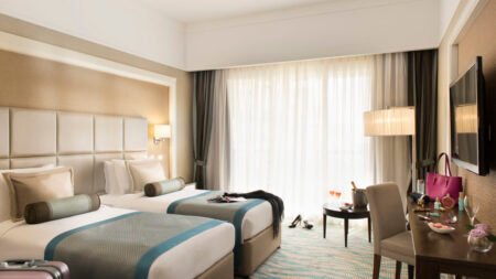 Winter Wanneer je tussen 01-11-2025 en 31-10-2026 in deze accommodatie verblijft, is onderstaande informatie van toepassing. * Ligging * Winkelcentrum Al Hamra Mall op circa 6 kilometer * Gelegen aan het privéstrand * Gesloten vanwege werkzaamheden tussen ca. maandag 23 februari 2026 en maandag 23 maart 2026 * Zandstrand * Ligbedden met matrasjes * Parasol * Centrum van Ras al-Khaimah op circa 27 kilometer * Golfbaan op circa 6,5 kilometer * Shuttleservice naar het winkelcentrum (Dubai outlet mall) gratis * Op maandag * Shuttleservice naar het winkelcentrum (Dubai Mall) gratis * Op dinsdag, donderdag en zaterdag * Shuttleservice naar het winkelcentrum (Dubai Emirates Mall) gratis * Op woensdag, vrijdag en zondag * Bushalte * Algemeen & faciliteiten * 3 gebouwen * Maximaal 8 verdiepingen * 715 kamers * Receptie * 24 uur per dag * Lobby * 9 liften * Lift in elk gebouw * Bagageruimte * Wifi in alle openbare ruimtes gratis * 3 winkels * Minimarkt * Wasservice tegen betaling * Doktersservice tegen betaling * Tuin * Privé parkeergelegenheid gratis * Restaurants & bars * Buffetrestaurant * 6 à-la-carterestaurants * Aziatisch restaurant * Italiaans restaurant * Steakhouse * Turks restaurant * Visrestaurant * Roomservice tegen betaling * 6 drinkgelegenheden * Bar * Beachbar * Cocktailbar * Lobbybar * 2 poolbars * Sportbar * Activiteiten & ontspanning * Aerobics gratis * Basketbal gratis * Beachvolleybal gratis * Biljart gratis * Darts gratis * Fitness gratis * Tafeltennis gratis * Tafelvoetbal gratis * Tennis gratis * Watersporten * Yoga gratis * Spa Center gratis toegang * Binnenzwembad * Buitenbad * Sauna * Hamam * Bubbelbad binnen * Massages tegen betaling * Schoonheidsbehandelingen tegen betaling * Gameroom gratis toegang * Animatie voor volwassenen * Animatie voor kinderen * Shows * Livemuziek * Zwembaden * 5 buitenzwembaden * Bij één van deze zwembaden geldt een minimumleeftijd van 18 jaar * Verwarmd * Eén van deze zwembaden heeft 3 glijbanen * Buitenzwembad voor kinderen * Zonneterras * Ligbedden met matrasjes gratis * Parasol gratis * Badhanddoekenservice gratis * Kinderfaciliteiten * Mini club (4-12 jaar) * 7 keer per week * Teenage club (10-17 jaar) * 7 keer per week * Minidisco * Binnenspeeltuin * Babybedje als preferentie toe te voegen in het boekingsformulier * Babysitservice tegen betaling * Verzorging * Ultra All Inclusive * Ontbijt in buffetvorm (07.00-11.00 uur) * Lunch in buffetvorm (13.00-15.30 uur) * Diner in buffetvorm of à la carte (18.00-22.00 uur) * Snacks (11.00-17.30 uur) * Koffie, thee & koekjes (06.00-02.00 uur) * IJs (13.00-22.00 uur) * Selectie geïmporteerde alcoholische drankjes (11.00-01.00 uur) * Selectie lokale (non-)alcoholische drankjes (11.00-01.00 uur) * Tegen betaling: import drankjes, shisha en roomserviceHotelkamers * 2-persoonskamer Deluxe DD * Oppervlakte circa 35 m² * Tuinzicht * Bij een verblijf van twee kinderen, slaapt één kind in het bed van de ouders * Airconditioning * Kluisje gratis * Televisie * Telefoon tegen betaling * Eet- en drinkfaciliteiten * Koffie- en theefaciliteiten * Minibar * Badkamer inloopdouche, toilet, föhn, badjassen en badslippers * Wifi gratis * Niet alle kamers hebben een balkon of terras * 2-persoonskamer Deluxe Zee- of zwembadzijde DDO * Oppervlakte circa 35 m² * Zee- of zwembadzicht * Zee- of zwembadzijde * Bij een verblijf van twee kinderen, slaapt één kind in het bed van de ouders * Airconditioning * Kluisje gratis * Televisie * Telefoon tegen betaling * Eet- en drinkfaciliteiten * Koffie- en theefaciliteiten * Minibar * Badkamer inloopdouche, toilet, föhn, badjassen en badslippers * Wifi gratis * Niet alle kamers hebben een balkon of terras * 2-persoonskamer Premium Tuinzicht DRG * Oppervlakte circa 45 m² * Tuinzicht * Tuinzijde * Eén grote kamer met meerdere slaapplaatsen: tweepersoonsbed of twee eenpersoonsbedden en slaapbank voor één persoon * Bij een verblijf van twee kinderen, slaapt één kind in het bed van de ouders * Airconditioning * Kluisje gratis * Televisie * Telefoon tegen betaling * Eet- en drinkfaciliteiten * Koffie- en theefaciliteiten * Minibar * Badkamer inloopdouche, toilet, föhn, badjassen en badslippers * Wifi gratis * Balkon of terras (zitje) * 2-persoonskamer Premium Zee- of zwembadzijde DRO * Oppervlakte circa 45 m² * Zee- of zwembadzicht * Zee- of zwembadzijde * Bij een verblijf van twee kinderen, slaapt één kind in het bed van de ouders * Airconditioning * Kluisje gratis * Televisie * Telefoon tegen betaling * Eet- en drinkfaciliteiten * Koffie- en theefaciliteiten * Minibar * Badkamer inloopdouche, toilet, föhn, badjassen en badslippers * Wifi gratis * Balkon of terras (zitje) * Familiekamer Suite (Kids Escape) FU1 * Oppervlakte circa 70 m² * 2 slaapkamers * Airconditioning * Kluisje gratis * Televisie * Eet- en drinkfaciliteiten * Koffie- en theefaciliteiten * Minibar * Badkamer douche, toilet, föhn, badjassen en badslippers * Wifi gratis * Balkon of terras (zitje) * Familiekamer Suite Tuinzicht FUG * Oppervlakte circa 70 m² * Tuinzicht * Tuinzijde * 2 slaapkamers * Airconditioning * Kluisje gratis * Televisie * Telefoon tegen betaling * Eet- en drinkfaciliteiten * Koffie- en theefaciliteiten * Minibar * Badkamer douche, toilet, föhn, badjassen en badslippers * Wifi gratis * Niet alle kamers hebben een balkon * Familiekamer Suite Zee- of zwembadzijde FUO * Oppervlakte circa 70 m² * Zee- of zwembadzicht * Zee- of zwembadzijde * 2 slaapkamers * Airconditioning * Kluisje gratis * Televisie * Telefoon tegen betaling * Eet- en drinkfaciliteiten * Koffie- en theefaciliteiten * Minibar * Badkamer douche, toilet, föhn, badjassen en badslippers * Wifi gratis * Balkon (zitje) * Niet alle kamers hebben een balkon