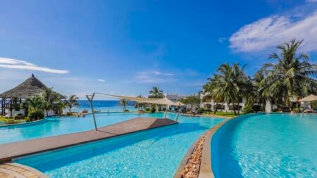 Winter Wanneer je tussen 01-10-2024 en 31-03-2025 in deze accommodatie verblijft, is onderstaande informatie van toepassing. * Ligging * Aan het openbare strand * Zandstrand * Nungwi Beach op circa 4 kilometer * Stone Town op circa 60 kilometer * Algemeen & faciliteiten * 182 kamers * Receptie * 24 uur per dag open * Lobby * Wifi in alle openbare ruimtes gratis * Meerdere winkels * Wasservice tegen betaling * Medische service tegen betaling * Tuin * Privé parkeergelegenheid gratis * Restaurants & bars * Buffetrestaurant * 2 à-la-carterestaurants * Barbecue restaurant * Restaurant met verschillende specialiteiten * Snackbar * 3 drinkgelegenheden * Bar * Beachbar * Poolbar * Activiteiten & ontspanning * Beachvoetbal gratis * Darts gratis * Diepzee vissen * Duiken tegen betaling * Fitness gratis * Tafeltennis gratis * Watersporten * Spa Center * Massages tegen betaling * Schoonheidsbehandelingen tegen betaling * Zwembaden * 4 buitenzwembaden * Infinity pool * Bubbelbad buiten * Terras * Ligbedden met matrasjes gratis * Parasol gratis * Badhanddoekenservice gratis * Kinderfaciliteiten * Mini club (4-12 jaar) * Verzorging * All Inclusive * Ontbijt in buffetvorm (07.00-10.00 uur) * Continentaal ontbijt (10.00-11.00 uur) * Lunch in buffetvorm (12.30-14.30 uur) * Lunch à la carte (11.00-16.00 uur) * Diner in buffetvorm (19.00-21.30 uur) * Dineren in één van de à-la-carterestaurants (19.00-21.30 uur) * Snacks (16.00-17.30 uur) * Koffie, thee & koekjes (10.30-17.30 uur) * Gebakjes (10.00-11.00 uur) * Selectie lokale (non-)alcoholische drankjes (10.00-23.00 uur) * Niet inbegrepen: * Dineren in één van de à-la-carterestaurants * IJs * Geïmporteerde drankjesHotelkamers * 2-persoonskamer Superior DS * Oppervlakte circa 78 m² * Airconditioning gratis * Kluisje gratis * Satelliettelevisie * Eet- en drinkfaciliteiten * Koffiezetapparaat * Mini koelkast * Badkamer met bad en douche, toiletartikelen, bidet, toilet en föhn * Wifi gratis * Balkon (zitje) * 2-persoonskamer Superior Deluxe DSD * Oppervlakte circa 78 m² * Airconditioning gratis * Kluisje gratis * Satelliettelevisie * Eet- en drinkfaciliteiten * Koffiezetapparaat * Mini koelkast * Badkamer met bad en douche, toiletartikelen, bidet, toilet en föhn * Wifi gratis * Balkon (zitje) * 2-persoonskamer Suite (Ocean) DU1 * Oppervlakte circa 96 m² * Zeezicht * Airconditioning gratis * Kluisje gratis * Satelliettelevisie * Telefoon tegen betaling * Eet- en drinkfaciliteiten * Koffiezetapparaat * Mini koelkast * Badkamer met bad en douche, toiletartikelen, bidet, toilet, föhn, badjassen en badslippers * Wifi gratis * Balkon (zitje)