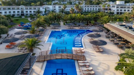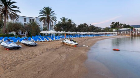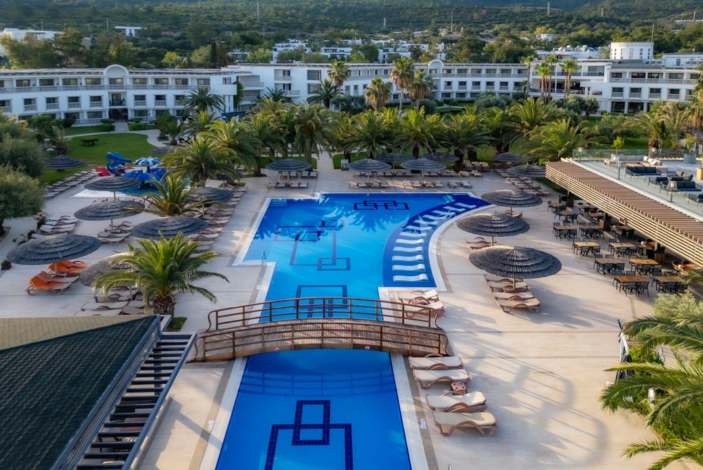 Zomer Wanneer je tussen 07-04-2026 en 31-10-2026 in deze accommodatie verblijft, is onderstaande informatie van toepassing. * Ligging * Gelegen op een heuvel * Gelegen aan het privéstrand * Zandstrand * Kiezelstrand * Ligbedden * Parasol * Dichtstbijzijnde winkel op circa 4 kilometer * Dichtstbijzijnde restaurant op circa 4 kilometer * Torba op circa 4 kilometer * Bodrum op circa 8 kilometer * Bushalte op circa 300 meter * Algemeen & faciliteiten * 11 gebouwen * Maximaal 3 verdiepingen * 339 kamers * Receptie * 24 uur per dag * Lobby * 3 liften * Niet in elk gebouw een lift * Bagageruimte * Wifi in alle openbare ruimtes * Meerdere winkels * Minimarkt * Wasservice tegen betaling * Doktersservice tegen betaling * op aanvraag * Tuin * Privé parkeergelegenheid * Restaurants & bars * Buffetrestaurant * 3 à-la-carterestaurants (vooraf reserveren) * Restaurant met verschillende specialiteiten * Turks restaurant * Visrestaurant * Snackrestaurant * Roomservice tegen betaling * 3 drinkgelegenheden * Beachbar * Lobbybar * Poolbar * Activiteiten & ontspanning * Aerobics * Basketbal * Beachvolleybal * Biljart * Boccia * Darts * Duikcentrum tegen betaling * Fitness * Midgetgolf * Tafeltennis * Tennis * Voetbal * Watersporten tegen betaling * Spa Center * Sauna * Hamam * Bubbelbad binnen * Massages tegen betaling * Schoonheidsbehandelingen tegen betaling * Gameroom toegang tegen betaling * Animatie- * Shows- * Livemuziek * Eén keer per week * Zwembaden * 2 buitenzwembaden * Bij één van deze zwembaden geldt een minimumleeftijd van 16 jaar * Buitenzwembad voor kinderen * 2 glijbanen * Binnenzwembad * Open tussen * Zonneterras * Ligbedden * Parasol * Badhanddoekenservice * Kinderfaciliteiten * Mini club (4-12 jaar) * Minidisco * Buitenspeeltuin * Babybedje als preferentie toe te voegen in het boekingsformulier * Babysitservice tegen betaling * ter plaatse op aanvraag * Verzorging * Ultra All Inclusive * Ontbijt in buffetvorm (07.00-11.00 uur) * Lunch in buffetvorm (12.30-14.30 uur) * Diner in buffetvorm (19.00-21.30 uur) * Snacks (12.30-17.30 uur) * Koffie, thee & koekjes (10.00-19.00 uur) * IJs (12.30-17.00 uur en 19.00-21.30 uur) * Middernachtsnack (23.30-01.00 uur) * Selectie geïmporteerde alcoholische drankjes (24 uur per dag) * Selectie lokale (non-)alcoholische drankjes (24 uur per dag) * Tegen betaling: import drankjes en roomserviceHotelkamers * 2-persoonskamer Standaard Landzicht DZ * Oppervlakte circa 35 m² * Landzicht * Airconditioning * Kluisje * Satelliettelevisie * Telefoon tegen betaling * Eet- en drinkfaciliteiten * Koffie- en theefaciliteiten * Minibar * Badkamer douche, toilet, föhn, badjassen en badslippers * Wifi * Balkon of terras (zitje) * 2-persoonskamer Standaard Zijzeezicht DZI * Oppervlakte circa 32 m² * Zijzeezicht * Airconditioning * Kluisje * Satelliettelevisie * Telefoon tegen betaling * Eet- en drinkfaciliteiten * Koffie- en theefaciliteiten * Minibar * Badkamer douche, toilet, föhn, badjassen en badslippers * Wifi * Balkon of terras (zitje) * 2-persoonskamer Superior (Garden) DS1 * Oppervlakte circa 35 m² * Tuinzicht * Eén slaapkamer * Airconditioning * Kluisje * Satelliettelevisie * Telefoon tegen betaling * Eet- en drinkfaciliteiten * Koffie- en theefaciliteiten * Minibar * Badkamer douche, toilet, föhn, badjassen en badslippers * Wifi * Balkon of terras (zitje) * 2-persoonskamer Deluxe (Garden) DD1 * Oppervlakte circa 30 m² * Tuinzicht * Airconditioning * Kluisje * Satelliettelevisie * Telefoon tegen betaling * Eet- en drinkfaciliteiten * Koffie- en theefaciliteiten * Minibar * Badkamer douche, toilet, föhn, badjassen en badslippers * Wifi * Balkon of terras (zitje) * Junior suite Standaard JZ * Oppervlakte van circa 40 m² * Landzicht * Woonkamer * Eén slaapkamer * Airconditioning * Kluisje * Satelliettelevisie * Telefoon tegen betaling * Eet- en drinkfaciliteiten * Koffie- en theefaciliteiten * Minibar * Badkamer douche, toilet, föhn, badjassen en badslippers * Wifi * Balkon of terras (zitje) * Suite Standaard (Senior) UZ * Oppervlakte van circa 55 m² * Landzicht * Woonkamer * Eén slaapkamer * Airconditioning * Kluisje * Satelliettelevisie * Telefoon tegen betaling * Eet- en drinkfaciliteiten * Koffie- en theefaciliteiten * Minibar * Badkamer douche, toilet, föhn, badjassen en badslippers * Wifi * Balkon of terras (zitje)