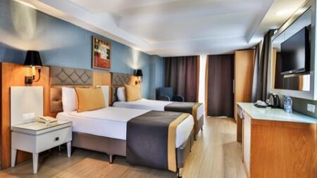 Wie graag wil weten waar die Turkse gastvrijheid toch vandaan komt, moet in Saturn Palace Resort zijn. Want in dit hotel, waar het personeel zelfs een woordje Nederlands spreekt, is niets te veel. De ober is your friend en dat zul je merken. Lunchen doe je lekker aan het zwembad, een pizza of hamburger brengt hij graag bij je langs. En wie weet, word je aan het einde van de middag zelfs verrast met een zelfgemaakte bitterbal. Omdat dit hotel voor Turkse begrippen niet zo groot is, leer je de andere gasten snel kennen. Een beetje babbelen, een biertje drinken, veel relaxter dan dit vind je niet snel.