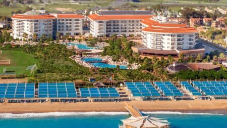 Zomer Wanneer je tussen 01-04-2026 en 14-11-2026 in deze accommodatie verblijft, is onderstaande informatie van toepassing. * Ligging * In het centrum van Kizilagac * Gelegen aan het privéstrand * Zandstrand * Kiezelstrand * Ligbedden met matrasjes * Parasol * Dichtstbijzijnde winkel op circa 50 meter * Dichtstbijzijnde restaurant op circa 50 meter * Dichtstbijzijnde bar op circa 50 meter * Manavgat Waterval op circa 12 kilometer * Side op circa 15 kilometer * Manavgat op circa 10 kilometer * Bushalte op circa 10 meter * Algemeen & faciliteiten * 3 gebouwen * Maximaal 7 verdiepingen * 674 kamers * Receptie * 24 uur per dag * Lobby * 8 liften * Lift in elk gebouw * Bagageruimte * Wifi in alle openbare ruimtes * Meerdere winkels * Minimarkt * Wasservice tegen betaling * Doktersservice tegen betaling * Tuin * Openbare parkeergelegenheid * Privé parkeergelegenheid * Beperkt aantal plaatsen * Restaurants & bars * Buffetrestaurant * 3 à-la-carterestaurants (vooraf reserveren) * Aziatisch restaurant * Italiaans restaurant * Turks restaurant * Snackbar * Roomservice tegen betaling * 6 drinkgelegenheden * 3 bars * Beachbar * Lobbybar * Poolbar * Activiteiten & ontspanning * Aerobics * Beachvolleybal * Biljart tegen betaling * Boccia * Boogschieten * Bowling tegen betaling * Darts * Fitness * Tafeltennis * Voetbal * Watersporten tegen betaling * Spa Center * Sauna * Hamam behandelingen tegen betaling * Massages tegen betaling * Schoonheidsbehandelingen tegen betaling * Gameroom * Animatie voor volwassenen * 7 keer per week * Shows * 7 keer per week * Livemuziek * 2 keer per week * Zwembaden * 2 buitenzwembaden * Buitenzwembad voor kinderen * 6 glijbanen * Aquapark * Open tussen ca. maandag 15 juni 2026 en zaterdag 31 oktober 2026 afhankelijk van weersomstandigheden * Binnenzwembad * Verwarmd tussen ca. vrijdag 31 oktober 2025 en woensdag 1 april 2026 * Binnenzwembad voor kinderen * Zonneterras * Ligbedden met matrasjes * Parasol * Badhanddoekenservice * Kinderfaciliteiten * Mini club (4-12 jaar) * 7 keer per week * Minidisco * Buitenspeeltuin * Babybedje als preferentie toe te voegen in het boekingsformulier * Babysitservice tegen betaling * ter plaatse op aanvraag * Verzorging * All Inclusive * Ontbijt in buffetvorm (07.00-10.00 uur) * Laat ontbijt in buffetvorm (10.00-10.30 uur) * Lunch in buffetvorm (12.00-15.30 uur) * Diner in buffetvorm (18.30-21.00 uur) * Dineren in één van de à-la-carterestaurants 1 keer per verblijf * Snacks (12.00-15.30 uur) (12.00-15.30 uur en 11.30-15.30 uur) * Koffie, thee & koekjes (11.00-18.00 uur) * IJs (12.00-18.00 uur) * Middernachtsnack (23.00-00.00 uur) * Selectie lokale (non-)alcoholische drankjes (24 uur per dag) * Tegen betaling: alle consumpties in de discotheek, import drankjes en roomserviceHotelkamers * 2-persoonskamer Voordeel DE * Speciaal tarief * Locatie, formaat, uitzicht en/of faciliteiten kunnen afwijken ten opzichte van andere kamertypes * Oppervlakte circa 30 m² * Airconditioning * Kluisje * Televisie * Telefoon tegen betaling * Eet- en drinkfaciliteiten * Koffie- en theefaciliteiten * Minibar * Badkamer inloopdouche, toilet en föhn * Wifi * Geen balkon of terras * 2-persoonskamer Standaard (Child Friendly) DZ1 * Speciaal tarief * Oppervlakte circa 30 m² * Landzicht * Eén grote kamer met meerdere slaapplaatsen: meerdere eenpersoonsbedden en tweepersoonsbed * Airconditioning * Kluisje * Televisie * Telefoon tegen betaling * Eet- en drinkfaciliteiten * Koffie- en theefaciliteiten * Minibar * Badkamer inloopdouche, toilet en föhn * Wifi * Balkon (zitje) * 2-persoonskamer Standaard Landzicht DZL * Oppervlakte circa 30 m² * Landzicht * Airconditioning * Kluisje * Televisie * Telefoon tegen betaling * Eet- en drinkfaciliteiten * Koffie- en theefaciliteiten * Minibar * Badkamer inloopdouche, toilet en föhn * Wifi * Balkon (zitje) * 2-persoonskamer Standaard Zijzeezicht DZI * Oppervlakte circa 30 m² * Zijzeezicht * Airconditioning * Kluisje * Televisie * Telefoon tegen betaling * Eet- en drinkfaciliteiten * Koffie- en theefaciliteiten * Minibar * Badkamer inloopdouche, toilet en föhn * Wifi * Balkon (zitje) * 2-persoonskamer Standaard Zeezicht DZM * Oppervlakte circa 30 m² * Zeezicht * Airconditioning * Kluisje * Televisie * Telefoon tegen betaling * Eet- en drinkfaciliteiten * Koffie- en theefaciliteiten * Minibar * Badkamer inloopdouche, toilet en föhn * Wifi * Balkon (zitje) * 2-persoonskamer Comfort DJ * Oppervlakte circa 30 m² * Op één van de hogere verdiepingen * Zeezicht * Airconditioning * Kluisje * Televisie * Telefoon tegen betaling * Eet- en drinkfaciliteiten * Koffie- en theefaciliteiten * Minibar * Badkamer inloopdouche, toilet en föhn * Wifi * Balkon (zitje) * Gratis late uitcheck bij beschikbaarheid ter plaatse * Familiekamer Landzicht F1L * Oppervlakte circa 50 m² * Landzicht * 2 slaapkamers * Airconditioning * Kluisje * Televisie * Telefoon tegen betaling * Eet- en drinkfaciliteiten * Koffie- en theefaciliteiten * Minibar * Badkamer inloopdouche, toilet en föhn * Wifi * Balkon (zitje) * Familiekamer Zeezicht F1M * Oppervlakte circa 50 m² * Zeezicht * 2 slaapkamers * Airconditioning * Kluisje * Televisie * Telefoon tegen betaling * Eet- en drinkfaciliteiten * Koffie- en theefaciliteiten * Minibar * Badkamer inloopdouche, toilet en föhn * Wifi * Balkon (zitje) * Familiekamer Standaard Landzicht FZL * Oppervlakte circa 50 m² * Landzicht * 2 slaapkamers * Airconditioning * Kluisje * Televisie * Telefoon tegen betaling * Eet- en drinkfaciliteiten * Koffie- en theefaciliteiten * Minibar * Badkamer inloopdouche, toilet en föhn * Wifi * Balkon (zitje) * Familiekamer Standaard Zeezicht FZM * Oppervlakte circa 50 m² * Zeezicht * 2 slaapkamers * Airconditioning * Kluisje * Televisie * Telefoon tegen betaling * Eet- en drinkfaciliteiten * Koffie- en theefaciliteiten * Minibar * Badkamer inloopdouche, toilet en föhn * Wifi * Balkon (zitje) * Suite Standaard UZ * Oppervlakte circa 80 m² * Zeezicht * Airconditioning * Klui