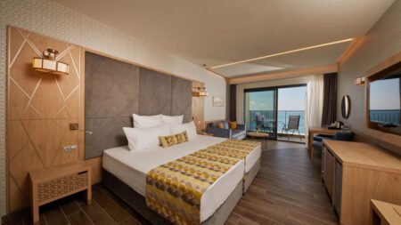Zomer Wanneer je tussen 01-05-2026 en 30-09-2026 in deze accommodatie verblijft, is onderstaande informatie van toepassing. * Ligging * Privéstrand * Ligbedden gratis * Parasol gratis * Dichtstbijzijnde winkel op circa 500 meter * Dichtstbijzijnde restaurant op circa 500 meter * Dichtstbijzijnde bar op circa 500 meter * Nessebar op circa 8 kilometer * Sunny Beach op circa 3 kilometer * Bushalte op circa 400 meter * Algemeen & faciliteiten * Adults Only (minimumleeftijd 18 jaar) * 1 gebouw * Maximaal 13 verdiepingen * 335 kamers * Receptie * 24 uur per dag * Lobby * 4 liften * Bagageruimte * Wifi in alle openbare ruimtes * Wasservice tegen betaling * Doktersservice tegen betaling * Tuin * Privé parkeergelegenheid tegen betaling * Restaurants & bars * Buffetrestaurant . Dresscode voor heren tijdens alle maaltijden: lange broek * 3 à-la-carterestaurants (vooraf reserveren) * Patisserie * Roomservice tegen betaling * 4 drinkgelegenheden * 2 bars * Lobbybar * Poolbar * Activiteiten & ontspanning * Basketbal * Voetbal * Watersporten * Yoga * Spa Center * Binnenzwembad * Sauna * Schoonheidsbehandelingen tegen betaling * Manicure tegen betaling * Fitnessruimte * Livemuziek * Zwembaden * 2 buitenzwembaden * Zonneterras * Ligbedden gratis * Parasol gratis * Badhanddoekenservice gratis * Verzorging * Ultra All Inclusive * Ontbijt in buffetvorm (08.00-10.00 uur) * Laat ontbijt in buffetvorm (10.00-11.00 uur) * Lunch in buffetvorm (12.30-15.00 uur) * Diner in buffetvorm (18.30-21.30 uur) * Snacks (11.00-17.00 uur) * Selectie lokale (non-)alcoholische drankjes (24 uur per dag)Hotelkamers * 2-persoonskamer Zeezicht (Preffered Club Deluxe Frontal) D1M * Oppervlakte circa 42 m² * Zeezicht * Zeezijde * Airconditioning * Kluisje * Televisie * Telefoon tegen betaling * Eet- en drinkfaciliteiten * Koffie- en theefaciliteiten * Minibar * Badkamer douche, toilet, föhn, badjassen en badslippers * Wifi * Balkon of terras (zitje) * 2-persoonskamer Deluxe Zeezicht (Front) DD1 * Oppervlakte circa 42 m² * Zeezicht * Airconditioning * Kluisje * Televisie * Telefoon tegen betaling * Eet- en drinkfaciliteiten * Koffie- en theefaciliteiten * Minibar * Badkamer douche, toilet, föhn, badjassen en badslippers * Wifi * Balkon of terras (zitje) * Junior suite Standaard Zeezicht JZ1 * Oppervlakte circa 64 m² * Zeezicht * Zeezijde * Airconditioning * Kluisje * Televisie * Telefoon tegen betaling * Eet- en drinkfaciliteiten * Koffie- en theefaciliteiten * Minibar * Badkamer douche, toilet, föhn, badjassen en badslippers * Wifi * Balkon of terras (zitje)
