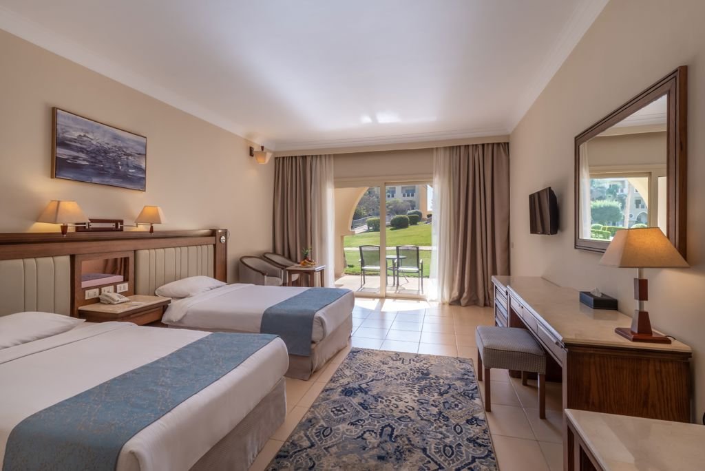 Winter Wanneer je tussen 01-11-2025 en 31-03-2026 in deze accommodatie verblijft, is onderstaande informatie van toepassing. * Ligging * Gelegen aan het privéstrand * Kiezelstrand * Ligbedden met matrasjes * Parasol * Hurghada op circa 32 kilometer * Makadi Bay op circa 1 kilometer * Algemeen & faciliteiten * 17 gebouwen * Maximaal 2 verdiepingen * 542 kamers * Receptie * 24 uur per dag * Geen liften * Bagageruimte * Wifi in één van de openbare ruimtes * Winkel * Wasservice tegen betaling * Doktersservice tegen betaling * Privé parkeergelegenheid * Restaurants & bars * 2 buffetrestaurants * 4 à-la-carterestaurants * Braziliaans restaurant * Indiaas restaurant * Marokkaans restaurant * Mexicaans restaurant tegen bijbetaling * Roomservice tegen betaling * 5 drinkgelegenheden * Beachbar * Lobbybar * 3 poolbars * Activiteiten & ontspanning * Beachvolleybal * Duikcentrum tegen betaling * Midgetgolf * Tennis materiaal tegen betaling * Spa Center * Sauna tegen betaling * Hamam tegen betaling * Bubbelbad binnen tegen betaling * Massages tegen betaling * Schoonheidsbehandelingen tegen betaling * Kapsalon tegen betaling * Fitnessruimte * Theater * Shows * Livemuziek * Zwembaden * 4 buitenzwembaden * Eén van deze zwembaden is gesloten vanwege werkzaamheden tussen ca. zaterdag 10 januari 2026 en zaterdag 28 februari 2026 * 2 van deze zwembaden zijn zoetwaterbaden * 2 van deze zwembaden zijn zoutwaterbaden * Eén van deze zwembaden is verwarmd tussen ca. november en april * Buitenzwembad voor kinderen * Zoetwater * Zonneterras * Ligbedden met matrasjes * Parasol * Badhanddoekenservice * Kinderfaciliteiten * Mini club (6-12 jaar) * Minidisco * Buitenspeeltuin * Babybedje op aanvraag via ons contact center * Verzorging * All Inclusive * Ontbijt in buffetvorm (07.00-10.00 uur) * Laat ontbijt met keuze uit een vast menu (10.00-11.00 uur) * Lunch in buffetvorm (12.30-14.30 uur) * Diner in buffetvorm (19.00-21.30 uur) * Snacks (12.00-14.00 uur en 15.30-17.00 uur) * Koffie, thee & koekjes (16.00-17.00 uur) * IJs * Selectie lokale (non-)alcoholische drankjes (10.00-00.00 uur) * Tegen betaling: import drankjesHotelkamers * 2-persoonskamer Voordeel DE * Speciaal tarief * Locatie, formaat, uitzicht en/of faciliteiten kunnen afwijken ten opzichte van andere kamertypes * Oppervlakte circa 45 m² * Airconditioning * Kluisje * Satelliettelevisie * Telefoon tegen betaling * Eet- en drinkfaciliteiten * Koffie- en theefaciliteiten * Minibar * Badkamer douche, toilet en föhn * Balkon of terras (zitje) * 2-persoonskamer Club Zijzeezicht DCI * Oppervlakte van circa 45 m² * Zijzeezicht * Airconditioning * Kluisje * Satelliettelevisie * Telefoon tegen betaling * Eet- en drinkfaciliteiten * Koffie- en theefaciliteiten * Minibar * Badkamer inloopdouche, toilet en föhn * Wifi * Balkon (zitje) * 2-persoonskamer Club Zeezicht (Grand) DCM * Oppervlakte van circa 55 m² * Zeezicht * Airconditioning * Kluisje * Satelliettelevisie * Telefoon tegen betaling * Eet- en drinkfaciliteiten * Koffie- en theefaciliteiten * Minibar * Badkamer inloopdouche, bubbelbad, toilet, föhn, badjassen en badslippers * Wifi * Balkon of terras * 2-persoonskamer Superior DS * Oppervlakte circa 45 m² * Tuinzicht * Airconditioning * Kluisje * Satelliettelevisie * Telefoon tegen betaling * Eet- en drinkfaciliteiten * Koffie- en theefaciliteiten * Minibar * Badkamer douche, toilet en föhn * Balkon of terras (zitje) * 2-persoonskamer Premium Zwembadzicht DRP * Oppervlakte circa 45 m² * Zwembadzicht * Airconditioning * Kluisje * Satelliettelevisie * Telefoon tegen betaling * Eet- en drinkfaciliteiten * Koffie- en theefaciliteiten * Minibar * Badkamer douche, toilet en föhn * Balkon of terras (zitje)