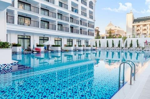 Boek een vakantie naar dit comfortabele 5 sterrenhotel. De ideale plek voor een relaxte strandvakantie als koppel of met de familie. Geniet van comfortabele kamers en genoeg leuke activiteiten. Op het strand kom je tot rust en geniet je van verkoelende drankjes en een lunch. Bij het naastgelegen Side Royal Palace geniet je van nog meer faciliteiten zoals een spa en zwembaden met glijbanen. Of ga een avond stappen in de disco. Kortom dit hotel heeft genoeg te bieden. Een ideale All Inclusive vakantie!