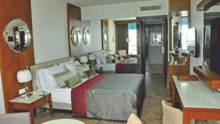 Winter Wanneer je tussen 01-11-2025 en 06-04-2026 in deze accommodatie verblijft, is onderstaande informatie van toepassing. * Ligging * Gelegen op een heuvel * Gelegen aan het privéstrand * Gesloten in het winterseizoen * Ligbedden * Parasol * Centrum van Side op circa 3 kilometer * Dichtstbijzijnde winkel op circa 500 meter * Dichtstbijzijnde restaurant op circa 500 meter * Dichtstbijzijnde bar op circa 500 meter * Bushalte op circa 50 meter * Algemeen & faciliteiten * 3 gebouwen * Maximaal 6 verdiepingen * 511 kamers * Receptie * 24 uur per dag * Lobby * 7 liften * Lift in elk gebouw * Bagageruimte * Wifi in alle openbare ruimtes * 7 winkels * Minimarkt * Wasservice tegen betaling * Doktersservice tegen betaling * Tuin * Privé parkeergelegenheid * Restaurants & bars * Buffetrestaurant * 5 à-la-carterestaurants (vooraf reserveren) * Chinees restaurant * Open tussen ca. april en oktober * Italiaans restaurant * Restaurant met verschillende specialiteiten * Turks restaurant * Visrestaurant * Patisserie * Roomservice tegen betaling * 7 drinkgelegenheden * 3 bars * Eén van deze bars is gesloten in het winterseizoen * Beachbar * Discobar * Lobbybar * Poolbar * Gesloten in het winterseizoen * Activiteiten & ontspanning * Aerobics * Basketbal * Biljart tegen betaling * Boccia * Bowling tegen betaling * Darts * Fitness * Tafeltennis * Tennis * Watersporten tegen betaling * Spa Center * Sauna * Hamam behandelingen tegen betaling * Bubbelbad binnen * Massages tegen betaling * Schoonheidsbehandelingen tegen betaling * Gameroom * Animatie voor volwassenen * Meerdere keren per week * Shows * tussen ca. april en oktober * Livemuziek * tussen ca. april en oktober * Zwembaden * 4 buitenzwembaden * Een aantal van deze zwembaden is gesloten in het winterseizoen * Relaxbad * Eén van deze zwembaden is verwarmd tussen ca. november en maart * Eén van deze zwembaden heeft meerdere glijbanen * De glijbanen hebben verschillende openingsperiodes * Gesloten in het winterseizoen * 2 buitenzwembaden voor kinderen * Gesloten in het winterseizoen * Binnenzwembad * Gesloten in het zomerseizoen * Verwarmd tussen ca. november en april * Binnenzwembad voor kinderen * Gesloten in het zomerseizoen * Zonneterras * Ligbedden * Parasol * Badhanddoekenservice * Kinderfaciliteiten * Mini club (4-12 jaar)- * Teenage club (12-16 jaar) * Gesloten in het winterseizoen * Minidisco * Buitenspeeltuin * Babybedje als preferentie toe te voegen in het boekingsformulier * Verzorging * Ultra All Inclusive * Ontbijt in buffetvorm (07.00-10.00 uur) * Laat ontbijt in buffetvorm (10.00-10.30 uur) * Lunch in buffetvorm (12.30-14.00 uur) * Diner in buffetvorm (18.30-20.30 uur) * Dineren in één van de à-la-carterestaurants 1 keer per verblijf bij een verblijf van minimaal 7 nachten * Snacks (14.00-15.30 uur) * Koffie, thee & koekjes (11.00-17.00 uur) * Middernachtsnack (23.00-07.00 uur) * Selectie geïmporteerde drankjes(10.00-00.00 uur) * Selectie lokale (non-)alcoholische drankjes (10.00-00.00 uur) * Tegen betaling: drankjes in flessen, import drankjes en roomservice * Goed om te weten * Duurzaamheidslabel(s): Green KeyHotelkamers * 2-persoonskamer Voordeel DE * Speciaal tarief * Locatie, formaat, uitzicht en/of faciliteiten kunnen afwijken ten opzichte van andere kamertypes * Op de begane grond * Airconditioning * Kluisje * Televisie * Telefoon tegen betaling * Eet- en drinkfaciliteiten * Koffie- en theefaciliteiten * Minibar * Badkamer douche, toilet en föhn * Wifi * Geen balkon of terras * 2-persoonskamer Standaard DZ * Oppervlakte tussen 23 en 28 m² * Airconditioning * Kluisje * Televisie * Telefoon tegen betaling * Eet- en drinkfaciliteiten * Koffie- en theefaciliteiten * Minibar * Badkamer douche, toilet en föhn * Wifi * Balkon (zitje) * 2-persoonskamer Standaard Zeezicht DZM * Oppervlakte tussen 23 en 28 m² * Zeezicht * Airconditioning * Kluisje * Televisie * Telefoon tegen betaling * Eet- en drinkfaciliteiten * Koffie- en theefaciliteiten * Minibar * Badkamer douche, toilet en föhn * Wifi * Balkon (zitje) * 2-persoonskamer Terras DT * Oppervlakte van circa 28 m² * Airconditioning * Kluisje * Televisie * Telefoon tegen betaling * Eet- en drinkfaciliteiten * Koffie- en theefaciliteiten * Minibar * Badkamer douche, toilet en föhn * Wifi * Terras (zitje) * 2-persoonskamer Terras Whirlpool DTJ * Oppervlakte van circa 28 m² * Airconditioning * Kluisje * Televisie * Telefoon tegen betaling * Eet- en drinkfaciliteiten * Koffie- en theefaciliteiten * Minibar * Badkamer douche, toilet en föhn * Wifi * Terras (zitje, bubbelbad) * 2-persoonskamer Swimup DW * Oppervlakte circa 25 m² * In het hoofdgebouw * Airconditioning * Kluisje * Televisie * Telefoon tegen betaling * Eet- en drinkfaciliteiten * Koffie- en theefaciliteiten * Minibar * Badkamer douche, toilet en föhn * Wifi * Terras (zitje) * Directe toegang tot het gedeelde zwembad * Familiekamer Standaard Zwembadzicht FZP * Oppervlakte van circa 33 m² * Zwembadzicht * 2 slaapkamers * Airconditioning * Kluisje * Televisie * Telefoon tegen betaling * Eet- en drinkfaciliteiten * Koffie- en theefaciliteiten * Minibar * Badkamer douche, toilet en föhn * Wifi * Balkon of terras (zitje) * Familiekamer Standaard Zeezicht FZM * Oppervlakte van circa 33 m² * Zeezicht * Airconditioning * Kluisje * Televisie * Telefoon tegen betaling * Eet- en drinkfaciliteiten * Koffie- en theefaciliteiten * Minibar * Badkamer douche, toilet en föhn * Wifi * Balkon of terras (zitje) * Suite Standaard Zeezicht UZM * Oppervlakte circa 35 m² * Zeezicht * Airconditioning * Kluisje * Televisie * Telefoon tegen betaling * Eet- en drinkfaciliteiten * Koffie- en theefaciliteiten * Minibar * Badkamer douche, toilet, föhn, badjassen en badslippers * Wifi * Balkon of terras (zitje)
