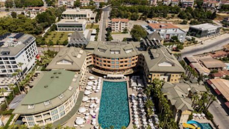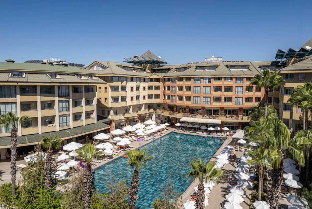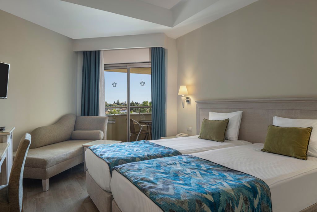 Winter Wanneer je tussen 01-11-2025 en 06-04-2026 in deze accommodatie verblijft, is onderstaande informatie van toepassing. * Ligging * Privéstrand op circa 200 meter * Ligbedden * Parasol * Centrum van Side op circa 1 kilometer * Dichtstbijzijnde winkel op circa 1 kilometer * Dichtstbijzijnde restaurant op circa 1 kilometer * Dichtstbijzijnde bar op circa 1 kilometer * Bushalte op circa 500 meter * Algemeen & faciliteiten * 2 gebouwen * Maximaal 4 verdiepingen * 228 kamers * Receptie * 24 uur per dag * Lobby * 2 liften * Lift in elk gebouw * Bagageruimte * Wifi in alle openbare ruimtes * 6 winkels * Minimarkt * Wasservice tegen betaling * Doktersservice tegen betaling * Tuin * Privé parkeergelegenheid * Restaurants & bars * Buffetrestaurant * 3 à-la-carterestaurants (vooraf reserveren) * Italiaans restaurant * Open tussen ca. april en oktober * Turks restaurant * Visrestaurant * Open tussen ca. april en oktober * Roomservice tegen betaling * 4 drinkgelegenheden * Beachbar * Gesloten in het winterseizoen * Discobar tegen betaling * Lobbybar * Poolbar * Gesloten in het winterseizoen * Activiteiten & ontspanning * Aerobics * Biljart tegen betaling * Bowling tegen betaling * tussen ca. april en oktober * Darts * Fitness * Tafeltennis * Watersporten tegen betaling * tussen ca. april en oktober * Spa Center * Sauna * Hamam behandelingen tegen betaling * Massages tegen betaling * Schoonheidsbehandelingen tegen betaling * Gameroom * Gesloten in het winterseizoen * Animatie voor volwassenen * Meerdere keren per week * Shows * tussen ca. april en oktober * Livemuziek * Meerdere keren per week * Zwembaden * Buitenzwembad * Gesloten in het winterseizoen * 2 glijbanen * Buitenzwembad voor kinderen * Gesloten in het winterseizoen * Binnenzwembad * Gesloten in het zomerseizoen * Verwarmd tussen ca. november en maart * Zonneterras * Ligbedden * Parasol * Badhanddoekenservice * Kinderfaciliteiten * Mini club (4-12 jaar)- * Minidisco * Buitenspeeltuin * Babybedje als preferentie toe te voegen in het boekingsformulier * Verzorging * All Inclusive * Ontbijt in buffetvorm (07.00-10.00 uur) * Laat ontbijt in buffetvorm (10.00-10.30 uur) * Lunch in buffetvorm (12.30-14.00 uur) * Diner in buffetvorm (18.30-20.30 uur) * Dineren in het à-la-carterestaurant 1 keer per verblijf bij een verblijf van minimaal 7 nachten * Koffie, thee & koekjes (11.00-17.00 uur) * Selectie lokale (non-)alcoholische drankjes (10.00-00.00 uur) * Tegen betaling: alle consumpties in de discotheek, drankjes in flessen, import drankjes, verse vruchtensappen en roomservice * Goed om te weten * Duurzaamheidslabel(s): Green KeyHotelkamers * 2-persoonskamer Voordeel DE * Speciaal tarief * Locatie, formaat, uitzicht en/of faciliteiten kunnen afwijken ten opzichte van andere kamertypes * Airconditioning * Kluisje * Televisie * Telefoon tegen betaling * Eet- en drinkfaciliteiten * Koffie- en theefaciliteiten * Minibar * Badkamer douche, toilet en föhn * Wifi * Balkon of terras (zitje) * 2-persoonskamer Standaard DZ * Oppervlakte circa 19 m² * Airconditioning * Kluisje * Televisie * Telefoon tegen betaling * Eet- en drinkfaciliteiten * Koffie- en theefaciliteiten * Minibar * Badkamer douche, toilet en föhn * Wifi * Balkon of terras (zitje) * 2-persoonskamer Large DL * Oppervlakte van circa 22 m² * Eén grote kamer met meerdere slaapplaatsen: stapelbed en diverse bedtypes * Airconditioning * Kluisje * Televisie * Telefoon tegen betaling * Eet- en drinkfaciliteiten * Koffie- en theefaciliteiten * Minibar * Badkamer douche, toilet en föhn * Wifi * Balkon of terras (zitje) * Familiekamer Standaard FZ * Oppervlakte van circa 30 m² * 2 slaapkamers * Airconditioning * Kluisje * Televisie * Telefoon tegen betaling * Eet- en drinkfaciliteiten * Koffie- en theefaciliteiten * Minibar * Badkamer douche, toilet en föhn * Wifi * Balkon of terras (zitje)