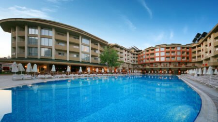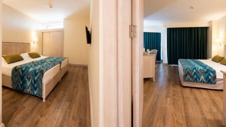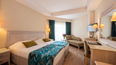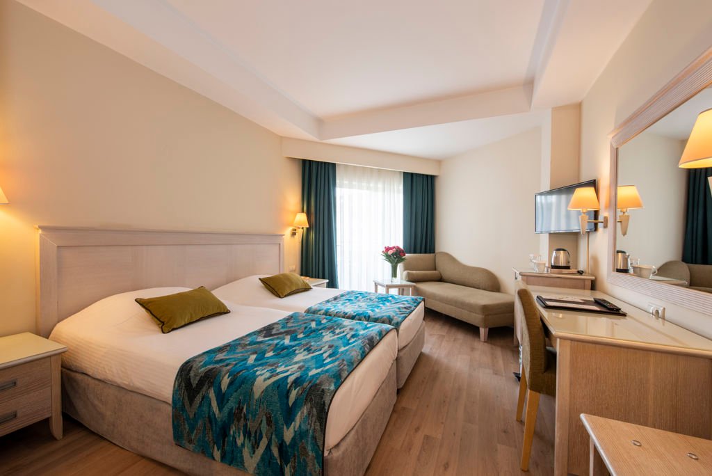 Winter Wanneer je tussen 01-11-2025 en 06-04-2026 in deze accommodatie verblijft, is onderstaande informatie van toepassing. * Ligging * Privéstrand op circa 200 meter * Ligbedden * Parasol * Centrum van Side op circa 1 kilometer * Dichtstbijzijnde winkel op circa 1 kilometer * Dichtstbijzijnde restaurant op circa 1 kilometer * Dichtstbijzijnde bar op circa 1 kilometer * Bushalte op circa 500 meter * Algemeen & faciliteiten * 2 gebouwen * Maximaal 4 verdiepingen * 228 kamers * Receptie * 24 uur per dag * Lobby * 2 liften * Lift in elk gebouw * Bagageruimte * Wifi in alle openbare ruimtes * 6 winkels * Minimarkt * Wasservice tegen betaling * Doktersservice tegen betaling * Tuin * Privé parkeergelegenheid * Restaurants & bars * Buffetrestaurant * 3 à-la-carterestaurants (vooraf reserveren) * Italiaans restaurant * Open tussen ca. april en oktober * Turks restaurant * Visrestaurant * Open tussen ca. april en oktober * Roomservice tegen betaling * 4 drinkgelegenheden * Beachbar * Gesloten in het winterseizoen * Discobar tegen betaling * Lobbybar * Poolbar * Gesloten in het winterseizoen * Activiteiten & ontspanning * Aerobics * Biljart tegen betaling * Bowling tegen betaling * tussen ca. april en oktober * Darts * Fitness * Tafeltennis * Watersporten tegen betaling * tussen ca. april en oktober * Spa Center * Sauna * Hamam behandelingen tegen betaling * Massages tegen betaling * Schoonheidsbehandelingen tegen betaling * Gameroom * Gesloten in het winterseizoen * Animatie voor volwassenen * Meerdere keren per week * Shows * tussen ca. april en oktober * Livemuziek * Meerdere keren per week * Zwembaden * Buitenzwembad * Gesloten in het winterseizoen * 2 glijbanen * Buitenzwembad voor kinderen * Gesloten in het winterseizoen * Binnenzwembad * Gesloten in het zomerseizoen * Verwarmd tussen ca. november en maart * Zonneterras * Ligbedden * Parasol * Badhanddoekenservice * Kinderfaciliteiten * Mini club (4-12 jaar)- * Minidisco * Buitenspeeltuin * Babybedje als preferentie toe te voegen in het boekingsformulier * Verzorging * All Inclusive * Ontbijt in buffetvorm (07.00-10.00 uur) * Laat ontbijt in buffetvorm (10.00-10.30 uur) * Lunch in buffetvorm (12.30-14.00 uur) * Diner in buffetvorm (18.30-20.30 uur) * Dineren in het à-la-carterestaurant 1 keer per verblijf bij een verblijf van minimaal 7 nachten * Koffie, thee & koekjes (11.00-17.00 uur) * Selectie lokale (non-)alcoholische drankjes (10.00-00.00 uur) * Tegen betaling: alle consumpties in de discotheek, drankjes in flessen, import drankjes, verse vruchtensappen en roomservice * Goed om te weten * Duurzaamheidslabel(s): Green KeyHotelkamers * 2-persoonskamer Voordeel DE * Speciaal tarief * Locatie, formaat, uitzicht en/of faciliteiten kunnen afwijken ten opzichte van andere kamertypes * Airconditioning * Kluisje * Televisie * Telefoon tegen betaling * Eet- en drinkfaciliteiten * Koffie- en theefaciliteiten * Minibar * Badkamer douche, toilet en föhn * Wifi * Balkon of terras (zitje) * 2-persoonskamer Standaard DZ * Oppervlakte circa 19 m² * Airconditioning * Kluisje * Televisie * Telefoon tegen betaling * Eet- en drinkfaciliteiten * Koffie- en theefaciliteiten * Minibar * Badkamer douche, toilet en föhn * Wifi * Balkon of terras (zitje) * 2-persoonskamer Large DL * Oppervlakte van circa 22 m² * Eén grote kamer met meerdere slaapplaatsen: stapelbed en diverse bedtypes * Airconditioning * Kluisje * Televisie * Telefoon tegen betaling * Eet- en drinkfaciliteiten * Koffie- en theefaciliteiten * Minibar * Badkamer douche, toilet en föhn * Wifi * Balkon of terras (zitje) * Familiekamer Standaard FZ * Oppervlakte van circa 30 m² * 2 slaapkamers * Airconditioning * Kluisje * Televisie * Telefoon tegen betaling * Eet- en drinkfaciliteiten * Koffie- en theefaciliteiten * Minibar * Badkamer douche, toilet en föhn * Wifi * Balkon of terras (zitje)