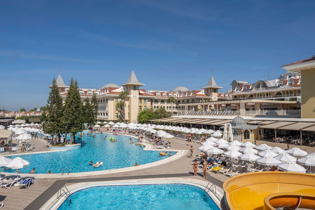 Winter Wanneer je tussen 01-11-2025 en 06-04-2026 in deze accommodatie verblijft, is onderstaande informatie van toepassing. * Ligging * In het centrum van Gündogdu * Privéstrand op circa 200 meter * Zandstrand * Ligbedden * Parasol * Dichtstbijzijnde winkel op circa 500 meter * Dichtstbijzijnde restaurant op circa 500 meter * Dichtstbijzijnde bar op circa 500 meter * Side op circa 12 kilometer * Manavgat op circa 15 kilometer * Bushalte op circa 50 meter * Algemeen & faciliteiten * 5 gebouwen * Maximaal 5 verdiepingen * 462 kamers * Receptie * 24 uur per dag * Lobby * 8 liften * Lift in elk gebouw * Bagageruimte * Wifi in diverse openbare ruimtes * 3 winkels * Minimarkt * Wasservice tegen betaling * Doktersservice tegen betaling * Tuin * Privé parkeergelegenheid * Restaurants & bars * Buffetrestaurant * 3 à-la-carterestaurants (vooraf reserveren) * Aziatisch restaurant * Mexicaans restaurant * Turks restaurant * Roomservice tegen betaling * 4 drinkgelegenheden * Bar * Beachbar * Lobbybar * Poolbar * Activiteiten & ontspanning * Aerobics * Basketbal * Beachvolleybal * Biljart tegen betaling * Bowling tegen betaling * Darts * Fitness * Midgetgolf * Tafeltennis * Tennis * Voetbal tegen betaling * Watersporten tegen betaling * Spa Center * Sauna * Hamam behandelingen tegen betaling * Massages tegen betaling * Schoonheidsbehandelingen tegen betaling * Gameroom * Animatie voor volwassenen * Meerdere keren per week * Shows- * Livemuziek * Meerdere keren per week * Zwembaden * 2 buitenzwembaden * Eén van deze zwembaden heeft 3 glijbanen * De glijbanen hebben verschillende openingsperiodes * Buitenzwembad voor kinderen * Zonneterras * Ligbedden * Parasol * Badhanddoekenservice * Kinderfaciliteiten * Mini club (4-12 jaar) * 6 keer per week * Teenage club (12-16 jaar) * Open tussen * Minidisco- * Buitenspeeltuin * Babybedje als preferentie toe te voegen in het boekingsformulier * Verzorging * Ultra All Inclusive * Ontbijt in buffetvorm (07.00-10.00 uur) * Laat ontbijt in buffetvorm (10.00-11.00 uur) * Lunch in buffetvorm (12.30-14.00 uur) * Diner in buffetvorm (18.30-20.30 uur) * Dineren in alle à-la-carterestaurants 1 keer per verblijf bij een verblijf van minimaal 7 nachten * Snacks (14.00-15.30 uur) * Koffie, thee & koekjes (16.00-17.00 uur) * IJs (10.00-17.00 uur) * Middernachtsnack (21.30-07.00 uur) * Selectie non-alcoholische drankjes (10.00-00.00 uur) * Selectie geïmporteerde alcoholische drankjes (10.00-00.00 uur) * Tegen betaling: drankjes in flessen, import drankjes, verse vruchtensappen en roomservice * Goed om te weten * Duurzaamheidslabel(s): Green KeyHotelkamers * 2-persoonskamer Voordeel DE * Speciaal tarief * Oppervlakte van circa 24 m² * Landzicht * Airconditioning * Kluisje * Televisie * Telefoon tegen betaling * Eet- en drinkfaciliteiten * Koffie- en theefaciliteiten * Minibar * Badkamer douche, toilet, föhn, badjassen (op aanvraag) en badslippers * Wifi * Balkon (zitje) * 2-persoonskamer Standaard DZ * Oppervlakte circa 24 m² * Airconditioning * Kluisje * Televisie * Telefoon tegen betaling * Eet- en drinkfaciliteiten * Koffie- en theefaciliteiten * Minibar * Badkamer douche, toilet, föhn, badjassen en badslippers * Wifi * Balkon (zitje) * 2-persoonskamer Standaard Zeezicht DZM * Oppervlakte circa 24 m² * Zeezicht * Airconditioning * Kluisje * Televisie * Telefoon tegen betaling * Eet- en drinkfaciliteiten * Koffie- en theefaciliteiten * Minibar * Badkamer douche, toilet, föhn, badjassen en badslippers * Wifi * Balkon (zitje) * 2-persoonskamer Large DL * Oppervlakte circa 32 m² * Eén grote kamer * Airconditioning * Kluisje * Televisie * Telefoon tegen betaling * Eet- en drinkfaciliteiten * Koffie- en theefaciliteiten * Minibar * Badkamer douche, toilet, föhn, badjassen en badslippers * Wifi * Balkon (zitje) * 2-persoonskamer Large Whirlpool DLJ * Oppervlakte circa 32 m² * Eén grote kamer * Airconditioning * Kluisje * Televisie * Telefoon tegen betaling * Eet- en drinkfaciliteiten * Koffie- en theefaciliteiten * Minibar * Badkamer douche, toilet, föhn, badjassen en badslippers * Wifi * Terras (zitje, bubbelbad) * Familiekamer Landzicht F1L * Oppervlakte circa 40 m² * Landzicht * 2 slaapkamers * Airconditioning * Kluisje * Televisie * Telefoon tegen betaling * Eet- en drinkfaciliteiten * Koffie- en theefaciliteiten * Minibar * Badkamer douche, toilet, föhn, badjassen en badslippers * Wifi * Balkon (zitje) * Familiekamer Zeezicht F1M * Oppervlakte circa 40 m² * Zeezicht * 2 slaapkamers * Airconditioning * Kluisje * Televisie * Telefoon tegen betaling * Eet- en drinkfaciliteiten * Koffie- en theefaciliteiten * Minibar * Badkamer douche, toilet, föhn, badjassen en badslippers * Wifi * Balkon (zitje) * Familiekamer Standaard Whirlpool FZJ * Oppervlakte circa 40 m² * 2 slaapkamers * Airconditioning * Kluisje * Televisie * Telefoon tegen betaling * Eet- en drinkfaciliteiten * Koffie- en theefaciliteiten * Minibar * Badkamer douche, toilet, föhn, badjassen en badslippers * Wifi * Terras (zitje, bubbelbad) * Familiekamer Suite Zeezicht FUM * Oppervlakte van circa 60 m² * Zeezicht * 2 slaapkamers * Airconditioning * Kluisje * Televisie * Telefoon tegen betaling * Eet- en drinkfaciliteiten * Koffie- en theefaciliteiten * Minibar * Badkamer douche, toilet, föhn, badjassen en badslippers * Wifi * Balkon (zitje)