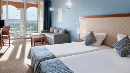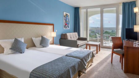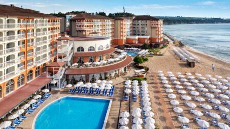 Zomer Wanneer je tussen 01-05-2026 en 30-09-2026 in deze accommodatie verblijft, is onderstaande informatie van toepassing. * Ligging * Gelegen aan het privéstrand * Zandstrand * Ligbedden gratis * Parasol gratis * Dichtstbijzijnde restaurant op circa 2,5 kilometer * Dichtstbijzijnde bar op circa 2,5 kilometer * Obzor op circa 2,5 kilometer * Shuttleservice naar het centrum (Obzor) tegen betaling * Shuttleservice naar het centrum (Byala) tegen betaling * Bushalte op circa 2,5 kilometer * Algemeen & faciliteiten * 1 gebouw * Maximaal 6 verdiepingen * 470 kamers * Receptie * 24 uur per dag * Lobby * 8 liften * Bagageruimte * Wifi in één van de openbare ruimtes * Winkel (minimarkt) * Wasservice tegen betaling * Doktersservice tegen betaling * Privé parkeergelegenheid tegen betaling * Restaurants & bars * 4 buffetrestaurants * 6 drinkgelegenheden * 4 bars * Lobbybar * Poolbar * Activiteiten & ontspanning * Aerobics * Beachvolleybal * Biljart tegen betaling * Boccia * Boogschieten * Darts * Tafeltennis * Tafelvoetbal tegen betaling * Voetbal * Watersporten tegen betaling * Yoga * Spa Center * Binnenzwembad * Sauna tegen betaling * Massages tegen betaling * Schoonheidsbehandelingen tegen betaling * Kapsalon tegen betaling * Fitnessruimte * Animatie * 7 keer per week * Shows * 7 keer per week * Livemuziek * tussen ca. juli en augustus * Zwembaden * Buitenzwembad * Buitenzwembad voor kinderen * Aquapark * Open tussen ca. maandag 15 juni 2026 en dinsdag 15 september 2026 * 4 glijbanen voor volwassenen * 2 glijbanen voor kinderen * Zonneterras * Ligbedden * Parasol * Badhanddoekenservice * Kinderfaciliteiten * Mini club (4-12 jaar) * 7 keer per week * Teenage club (13-17 jaar) * Open tussen ca. juli en augustus * Minidisco * Buitenspeeltuin * Babybedje als preferentie toe te voegen in het boekingsformulier * Verzorging * All Inclusive * Ontbijt in buffetvorm (07.30-10.00 uur) * Lunch in buffetvorm (12.30-14.30 uur) * Diner in buffetvorm (18.00-21.00 uur) * Snacks (10.00-21.00 uur) * Koffie, thee & koekjes (07.30-23.00 uur) * IJs (12.00-16.00 uur) * Selectie lokale (non-)alcoholische drankjes (07.30-23.00 uur) * Tegen betaling: import drankjesHotelkamers * 2-persoonskamer Standaard (Park View) DZ1 * Oppervlakte circa 43 m² * Airconditioning * Kluisje tegen betaling * Satelliettelevisie * Telefoon tegen betaling * Eet- en drinkfaciliteiten * Minibar navulling tegen betaling * Badkamer bad of douche, toilet en föhn * Wifi * Balkon of terras (zitje) * 2-persoonskamer Standaard Zeezicht DZM * Oppervlakte circa 43 m² * Zeezicht * Airconditioning * Kluisje tegen betaling * Satelliettelevisie * Telefoon tegen betaling * Eet- en drinkfaciliteiten * Minibar navulling tegen betaling * Badkamer bad en douche, toilet en föhn * Wifi * Balkon of terras (zitje) * Familiekamer Suite (Park View) FU1 * Oppervlakte circa 64 m² * Eén slaapkamer * Airconditioning * Kluisje tegen betaling * Satelliettelevisie * Telefoon tegen betaling * Eet- en drinkfaciliteiten * Minibar navulling tegen betaling * Badkamer bad of douche, toilet en föhn * Wifi * Balkon of terras (zitje) * Familiekamer Suite Zeezicht FUM * Oppervlakte circa 64 m² * Zeezicht * Eén slaapkamer * Airconditioning * Kluisje tegen betaling * Satelliettelevisie * Telefoon tegen betaling * Eet- en drinkfaciliteiten * Minibar navulling tegen betaling * Badkamer bad of douche, toilet en föhn * Wifi * Balkon of terras (zitje)
