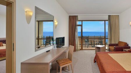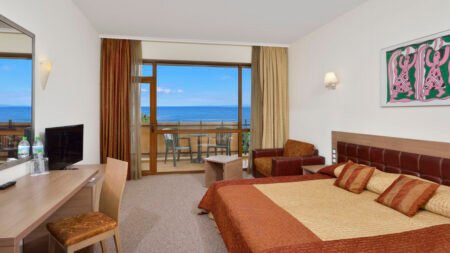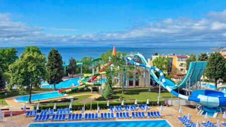 Zomer Wanneer je tussen 01-05-2026 en 30-09-2026 in deze accommodatie verblijft, is onderstaande informatie van toepassing. * Ligging * Gelegen aan het privéstrand * Zandstrand * Ligbedden gratis * Parasol gratis * Centrum van Nessebar op circa 1 kilometer * Dichtstbijzijnde winkel op circa 200 meter * Dichtstbijzijnde restaurant op circa 1 kilometer * Dichtstbijzijnde bar op circa 1 kilometer * Sunny Beach op circa 6 kilometer * Bushalte op circa 200 meter * Algemeen & faciliteiten * 1 gebouw * Maximaal 8 verdiepingen * 363 kamers * Receptie * 24 uur per dag * Lobby * 3 liften * Bagageruimte * Wifi in diverse openbare ruimtes * Winkel (minimarkt) * Wasservice tegen betaling * Doktersservice tegen betaling * Tuin * Privé parkeergelegenheid tegen betaling * Restaurants & bars * 5 buffetrestaurants * 2 snackbars * 8 drinkgelegenheden * 6 bars * Lobbybar * Poolbar * Activiteiten & ontspanning * Aerobics * Basketbal * Biljart tegen betaling * Boccia * Boogschieten * Bowling tegen betaling * Darts * Fitness * Tafeltennis * Tennis tegen betaling * Voetbal * Volleybal * Watersporten * Yoga * Spa Center * Binnenzwembad * Sauna tegen betaling * Hamam tegen betaling * Bubbelbad binnen tegen betaling * Massages tegen betaling * Schoonheidsbehandelingen tegen betaling * Kapsalon tegen betaling * Fitnessruimte * Gameroom * Animatie * 7 keer per week * Shows * 7 keer per week * Zwembaden * 3 buitenzwembaden * Zoetwater * Eén van deze zwembaden heeft een glijbaan * Eén van deze zwembaden heeft 5 glijbanen * 2 buitenzwembaden voor kinderen * Zoetwater * Eén van deze zwembaden heeft 2 glijbanen * Meerdere zonneterrassen * Badhanddoekenservice gratis * Kinderfaciliteiten * Mini club (4-12 jaar) * 7 keer per week * Minidisco * Buitenspeeltuin * Babybedje op aanvraag via ons contact center * Verzorging * All Inclusive * Ontbijt in buffetvorm (07.30-10.00 uur) * Lunch in buffetvorm (12.30-14.30 uur) * Diner in buffetvorm (18.00-21.00 uur) * Snacks (11.00-16.00 uur) * Koffie, thee & koekjes (15.00-18.00 uur) * IJs (11.00-16.00 uur) * Middernachtsnack (22.00-23.00 uur) * Selectie lokale (non-)alcoholische drankjes (10.00-23.00 uur) * Tegen betaling: drankjes in flessen, import drankjes en verse vruchtensappenHotelkamers * 2-persoonskamer Standaard (Park View) DZ * Oppervlakte circa 30 m² * Airconditioning * Kluisje tegen betaling * Televisie * Telefoon tegen betaling * Eet- en drinkfaciliteiten * Minibar tegen betaling * Badkamer bad of douche, toilet en föhn * Wifi * Balkon (zitje) * 2-persoonskamer Standaard Zeezicht DZM * Oppervlakte circa 31 m² * Zeezicht * Airconditioning * Kluisje tegen betaling * Televisie * Telefoon tegen betaling * Eet- en drinkfaciliteiten * Minibar tegen betaling * Badkamer bad of douche, toilet en föhn * Wifi * Balkon (zitje) * Familiekamer Standaard (Park View) FZ * Oppervlakte circa 56 m² * Airconditioning * Kluisje tegen betaling * Televisie * Telefoon tegen betaling * Eet- en drinkfaciliteiten * Koelkast * Badkamer douche in bad, toilet en föhn * Wifi * Balkon (zitje) * Familiekamer Standaard Zeezicht FZM * Oppervlakte circa 56 m² * Zeezicht * Airconditioning * Kluisje tegen betaling * Televisie * Telefoon tegen betaling * Eet- en drinkfaciliteiten * Koelkast * Badkamer douche in bad, toilet en föhn * Wifi * Balkon (zitje)