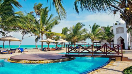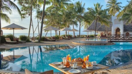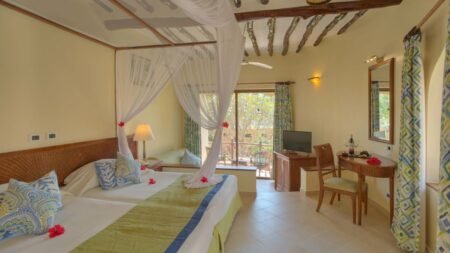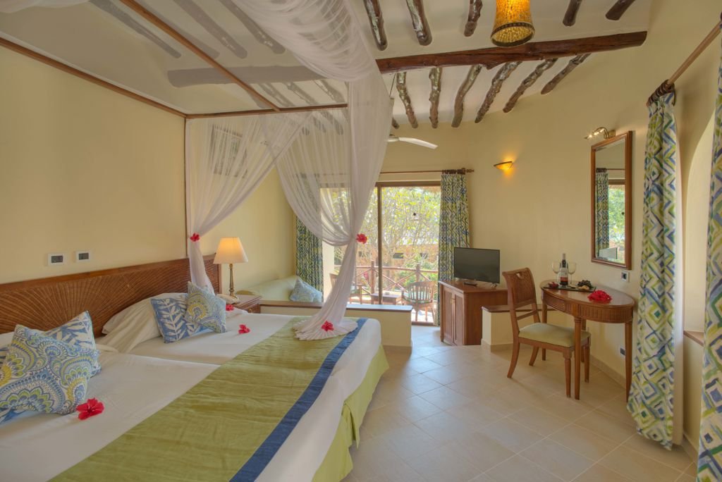 Winter Wanneer je tussen 27-10-2024 en 31-03-2025 in deze accommodatie verblijft, is onderstaande informatie van toepassing. * Ligging * Aan het openbare strand * Zandstrand * Ligbedden gratis * Parasol gratis * Kiwenga op circa 2 kilometer * Algemeen & faciliteiten * 76 kamers * Receptie * Lobby * Wifi in alle openbare ruimtes gratis * Winkel * Tuin * Privé parkeergelegenheid gratis * Restaurants & bars * Buffetrestaurant * Showcooking * Themabuffetten * À-la-carterestaurant * Italiaans restaurant * 2 drinkgelegenheden * Lounge bar * Poolbar * Activiteiten & ontspanning * Aquagym * Beachvolleybal gratis * Biljart gratis * Duikcentrum tegen betaling * Fitness gratis * Kajakken tegen betaling * Tafeltennis gratis * Tennis gratis * Watersporten * Windsurfen tegen betaling * Spafaciliteiten * Massages tegen betaling * Schoonheidsbehandelingen tegen betaling * Animatie * Livemuziek * Zwembaden * 3 buitenzwembaden * Terras * Ligbedden gratis * Parasol gratis * Badhanddoekenservice gratis * Kinderfaciliteiten * Kids club (3-13 jaar) * Verzorging * All Inclusive * Ontbijt in buffetvorm (07.00-10.00 uur) * Lunch in buffetvorm (12.30-14.30 uur) * Diner in buffetvorm (19.30-21.30 uur) * Snacks (10.30-12.30 and 15.00-17.00) * Koffie, thee & koekjes (16.00-17.00 uur) * Selectie lokale (non-)alcoholische drankjes (11.00-00.00 uur) * Niet inbegrepen: * Dineren in alle à-la-carterestaurantsHotelkamers * 2-persoonskamer (Bahari) D3 * Zeezicht * Airconditioning * Kluisje gratis * Televisie * Telefoon tegen betaling * Eet- en drinkfaciliteiten * Koffie- en theefaciliteiten gratis * Minibar * Badkamer met douche, toilet en föhn * Wifi gratis * Balkon of terras (zitje) * Gemakkelijke toegang tot het gedeelde zwembad * 2-persoonskamer (Pwani) D1 * Airconditioning * Kluisje gratis * Televisie * Telefoon tegen betaling * Eet- en drinkfaciliteiten * Koffie- en theefaciliteiten gratis * Minibar * Badkamer met douche, toilet en föhn * Wifi gratis * Balkon of terras (zitje)