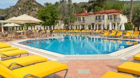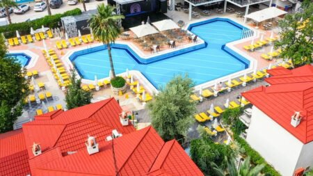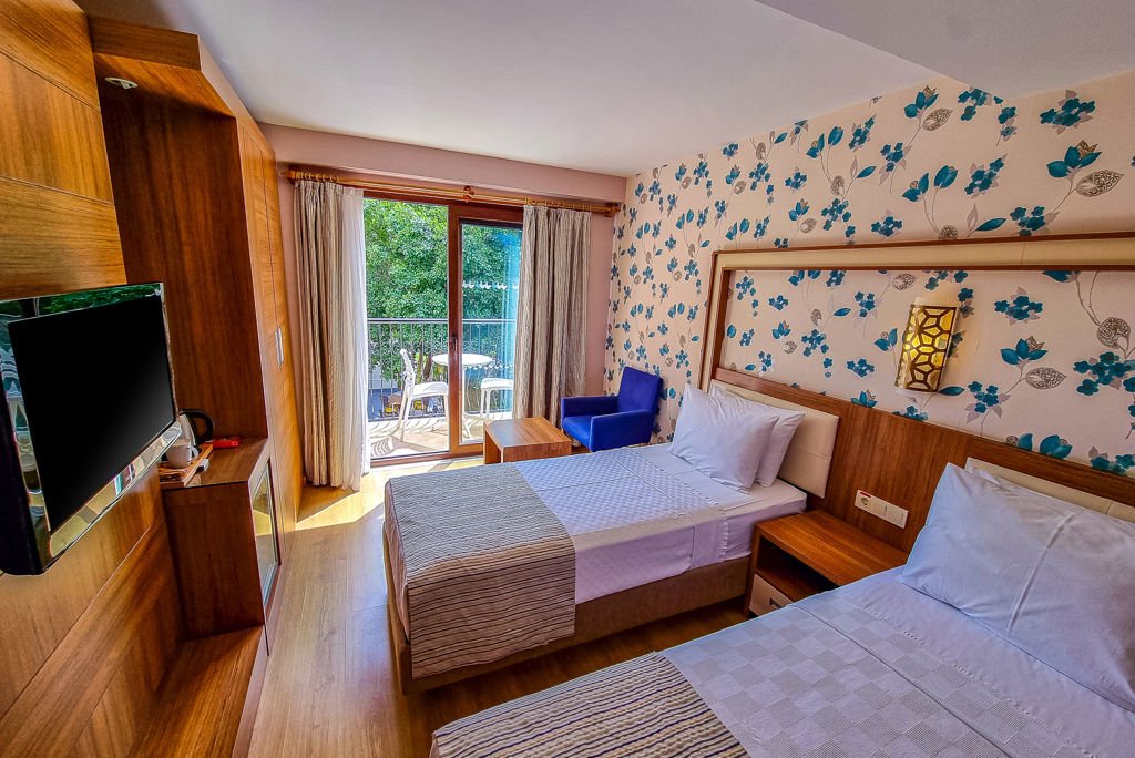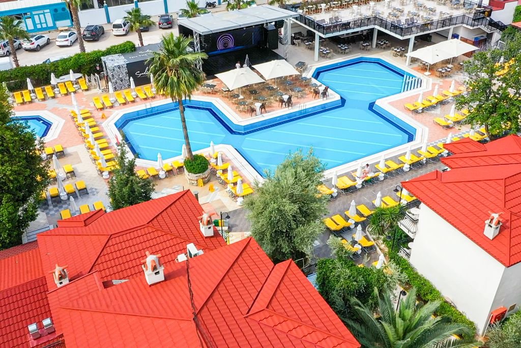 Zomer Wanneer je tussen 18-04-2025 en 31-10-2025 in deze accommodatie verblijft, is onderstaande informatie van toepassing. * Ligging * Privéstrand op circa 700 meter * Ligbedden met matrasjes * Parasol * Openbaar strand Belcekiz op circa 150 meter * Centrum van Hisarönü op circa 3 kilometer * Dichtstbijzijnde restaurant op circa 10 meter * Dichtstbijzijnde bar op circa 10 meter * Bushalte (op loopafstand) * Algemeen & faciliteiten * 11 gebouwen * Maximaal 2 verdiepingen * 203 kamers * Receptie * Lobby * Lift * Niet in elk gebouw een lift * Bagageruimte * Wifi in alle openbare ruimtes * Wasservice tegen betaling * Tuin * Openbare parkeergelegenheid tegen betaling * Restaurants & bars * Buffetrestaurant * 2 à-la-carterestaurants * Snackrestaurant * Roomservice tegen betaling * 3 drinkgelegenheden * 2 bars * Lobbybar * Activiteiten & ontspanning * Aerobics * Biljart * Darts * Fitness * Tafeltennis * Yoga * Spa Center * Sauna * Hamam * Massages tegen betaling * Animatie * 6 keer per week * Shows * 6 keer per week * Livemuziek * Eén keer per week * Zwembaden * 2 buitenzwembaden * Adult pool * Olympisch zwembad * Bij één van deze zwembaden geldt een minimumleeftijd van 16 jaar * Buitenzwembad voor kinderen * Zonneterras * Ligbedden met matrasjes * Parasol * Badhanddoekenservice * Kinderfaciliteiten * Mini club (4-12 jaar) * 6 keer per week * Babybedje * Verzorging * All Inclusive * Ontbijt in buffetvorm (07.00-10.00 uur) * Laat ontbijt in buffetvorm (10.00-10.30 uur) * Lunch in buffetvorm (12.30-14.30 uur) * Diner in buffetvorm (19.00-21.30 uur) * Snacks (12.30-16.00 uur) * Koffie, thee & koekjes (10.00-17.00 uur) * IJs (12.30-16.00 uur) * Middernachtsnack (23.00-00.00 uur) * Selectie geïmporteerde alcoholische drankjes (10.00-00.00 uur) * Selectie lokale (non-)alcoholische drankjes (10.00-00.00 uur) * Tegen betaling: verse vruchtensappenHotelkamers * 2-persoonskamer Superior DS * Oppervlakte van circa 18 m² * Airconditioning * Kluisje * Satelliettelevisie * Telefoon tegen betaling * Eet- en drinkfaciliteiten * Koffie- en theefaciliteiten * Minibar * Badkamer inloopdouche, toilet en föhn * Wifi * Balkon of terras (zitje) * 2-persoonskamer Superior DS1 * Oppervlakte van circa 21 m² * Airconditioning * Kluisje * Satelliettelevisie * Telefoon tegen betaling * Eet- en drinkfaciliteiten * Koffie- en theefaciliteiten * Minibar * Badkamer inloopdouche, toilet en föhn * Wifi * Balkon of terras (zitje) * Familiekamer Superior FS * Oppervlakte van circa 35 m² * Airconditioning * Kluisje * Satelliettelevisie * Telefoon tegen betaling * Eet- en drinkfaciliteiten * Koffie- en theefaciliteiten * Minibar * Badkamer inloopdouche, toilet en föhn * Wifi * Balkon of terras (zitje)