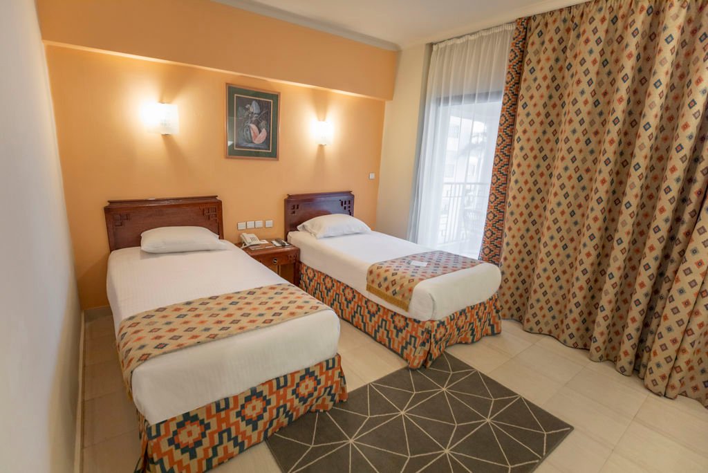 Zomer Wanneer je tussen 01-04-2026 en 31-10-2026 in deze accommodatie verblijft, is onderstaande informatie van toepassing. * Ligging * Gelegen aan het privéstrand * Strandhanddoekenservice gratis * Centrum van Hurghada op circa 500 meter * Algemeen & faciliteiten * Adults Only (minimumleeftijd 16 jaar) * 1 gebouw * 384 kamers * Receptie * 24 uur per dag * 2 liften * Bagageruimte * Wifi in alle openbare ruimtes * Meerdere winkels * Souvenirwinkel * Juwelier * Wasservice tegen betaling * Doktersservice tegen betaling * Openbare parkeergelegenheid * Restaurants & bars * 2 buffetrestaurants * 4 à-la-carterestaurants (vooraf reserveren) * Snackbar * 4 drinkgelegenheden * 2 lobbybars * 1 poolbars * Sportbar * Activiteiten & ontspanning * Aerobics * Aquagym * Beachvolleybal * Biljart * Boccia * Darts * Duikcentrum tegen betaling * Fitness * Tafeltennis * Watersporten * Yoga * Spafaciliteiten * Sauna tegen betaling * Hamam tegen betaling * Turks stoombad tegen betaling * Hottub binnen tegen betaling * Massages tegen betaling * Schoonheidsbehandelingen tegen betaling * Animatie * Shows * Livemuziek * Zwembaden * Buitenzwembad * Verwarmd * Bubbelbad buiten * Badhanddoekenservice * Verzorging * All Inclusive * Ontbijt in buffetvorm (07.00-13.00 uur) * Laat ontbijt in buffetvorm (10.30-11.00 uur) * Lunch in buffetvorm (12.30-15.00 uur) * Diner in buffetvorm (18.30-22.00 uur) * Dineren in één van de à-la-carterestaurants 1 keer per verblijf * Selectie lokale (non-)alcoholische drankjes (10.00-00.00 uur) * Tegen betaling: dineren in één van de à-la-carterestaurants, import drankjes, cocktails, verse vruchtensappen en roomservice * Goed om te weten * Werkzaamheden in deze accommodatie kunnen tussen zondag 15 maart 2026 en woensdag 1 juli 2026 voor eventuele hinder/overlast zorgenHotelkamers * 2-persoonskamer Standaard DZ * Oppervlakte circa 28 m² * Landzicht * Airconditioning * Kluisje * Satelliettelevisie * Telefoon tegen betaling * Eet- en drinkfaciliteiten * Koffie- en theefaciliteiten * Minibar * Badkamer bad of douche, toilet en föhn * Wifi * Terras (zitje) * 2-persoonskamer Standaard Zeezicht DZM * Oppervlakte circa 28 m² * Zeezicht * Airconditioning * Kluisje * Satelliettelevisie * Telefoon tegen betaling * Eet- en drinkfaciliteiten * Koffie- en theefaciliteiten * Minibar * Badkamer douche, toilet en föhn * Wifi * Balkon of terras (zitje) * 2-persoonskamer Superior Zeezicht DSM * Oppervlakte circa 28 m² * Zeezicht * Airconditioning * Kluisje * Satelliettelevisie * Telefoon tegen betaling * Eet- en drinkfaciliteiten * Koffie- en theefaciliteiten * Minibar * Badkamer douche, toilet en föhn * Wifi * Balkon of terras (zitje) * 2-persoonskamer Deluxe Zeezicht DDM * Oppervlakte circa 38 m² * Zeezicht * Airconditioning * Kluisje * Satelliettelevisie * Telefoon tegen betaling * Eet- en drinkfaciliteiten * Koffie- en theefaciliteiten * Minibar * Badkamer douche, toilet en föhn * Wifi * Balkon of terras (zitje) * 2-persoonskamer Premium Zeezicht DRM * Oppervlakte circa 38 m² * Zeezicht * Airconditioning * Kluisje * Satelliettelevisie * Telefoon tegen betaling * Eet- en drinkfaciliteiten * Koffie- en theefaciliteiten * Minibar * Badkamer douche, toilet en föhn * Wifi * Balkon (zitje) * Junior suite Standaard Stadszicht JZ1 * Oppervlakte van circa 41 m² * Stadszicht * Airconditioning * Kluisje * Televisie * Telefoon tegen betaling * Eet- en drinkfaciliteiten * Koffie- en theefaciliteiten * Minibar * Badkamer douche, toilet en föhn * Wifi * Frans balkon * Suite Premium Whirlpool URJ
