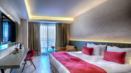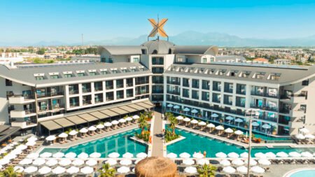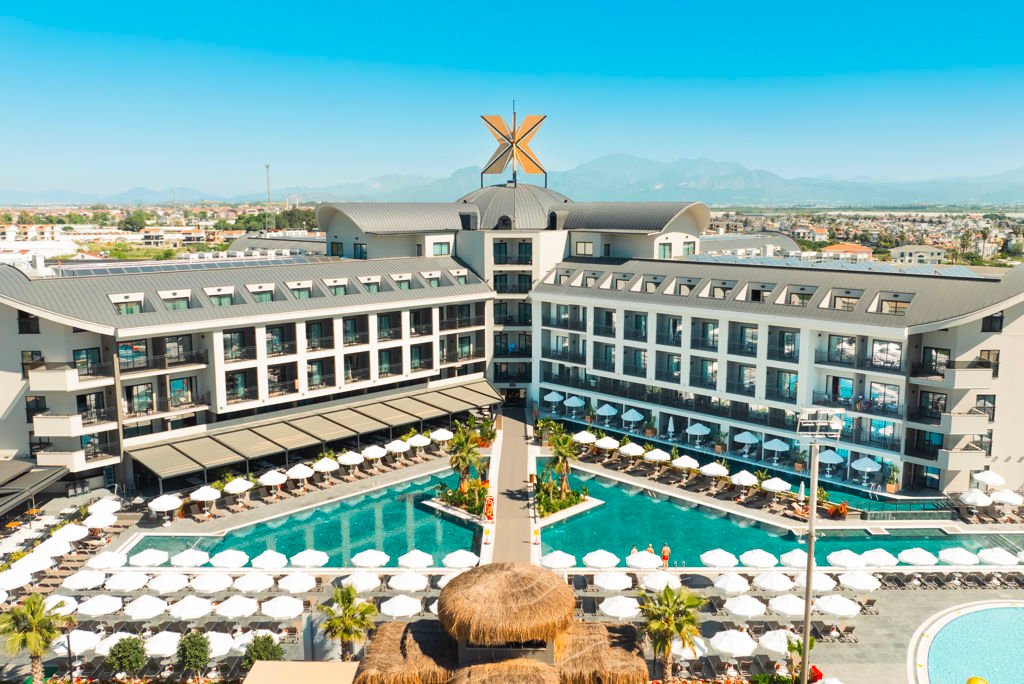 Zomer Wanneer je tussen 14-04-2025 en 31-10-2025 in deze accommodatie verblijft, is onderstaande informatie van toepassing. * Ligging * Privéstrand op circa 2,2 kilometer * Ligbedden met matrasjes * Parasol * Centrum van Serik op circa 10 kilometer * Dichtstbijzijnde restaurant op circa 1 kilometer * Dichtstbijzijnde bar op circa 1 kilometer * Shuttleservice naar het strand * Op gezette tijden beschikbaar * Bushalte (op loopafstand) * Algemeen & faciliteiten * 1 gebouw * Maximaal 5 verdiepingen * 399 kamers * Receptie * 24 uur per dag * Lobby * 4 liften * Bagageruimte * Wifi in alle openbare ruimtes * Winkel (minimarkt) * Wasruimte tegen betaling * Doktersservice tegen betaling * Openbare parkeergelegenheid * Privé parkeergelegenheid * Restaurants & bars * 2 buffetrestaurants * 4 à-la-carterestaurants (vooraf reserveren) tegen bijbetaling * Roomservice tegen betaling * 6 drinkgelegenheden * Activiteiten & ontspanning * Boccia * Darts * Fitness * Tafeltennis * Spa Center * Sauna * Turks stoombad * Massages tegen betaling * Schoonheidsbehandelingen tegen betaling * Animatie * 7 keer per week * Shows * 4 keer per week * Livemuziek * 3 keer per week * Zwembaden * 3 buitenzwembaden * Buitenzwembad voor kinderen * 7 glijbanen * Aquapark * 7 glijbanen voor volwassenen * Binnenzwembad * Verwarmd * Binnenzwembad voor kinderen * Zonneterras * Ligbedden met matrasjes * Parasol * Badhanddoekenservice * Kinderfaciliteiten * Mini club (0-4 jaar) * Midiclub (4-8 jaar) * Minidisco * Binnenspeeltuin * Babybedje * Babysitservice tegen betaling * ter plaatse op aanvraag * ter plaatse te reserveren * Verzorging * Ultra All Inclusive * Ontbijt in buffetvorm (07.00-10.00 uur) * Laat ontbijt in buffetvorm (10.00-11.00 uur) * Lunch in buffetvorm (12.30-14.30 uur) * Diner in buffetvorm (19.00-21.30 uur) * Koffie, thee & koekjes (11.00-19.00 uur) * IJs (11.00-22.00 uur) * Middernachtsnack (00.00-07.00 uur) * Selectie lokale (non-)alcoholische drankjes (24 uur per dag) * Tegen betaling: import drankjes en roomserviceHotelkamers * 2-persoonskamer Standaard DZ * Oppervlakte van circa 32 m² * Landzicht * Airconditioning * Kluisje * Televisie * Telefoon tegen betaling * Eet- en drinkfaciliteiten * Koffie- en theefaciliteiten * Minibar tegen betaling * Badkamer met douche, toilet, föhn, badjassen en badslippers * Wifi * Balkon (zitje) * 2-persoonskamer Standaard (16+) DZ1 * Oppervlakte van circa 32 m² * Adult Only kamer vanaf 16 jaar * In het volwassenengedeelte * Landzicht * Airconditioning * Kluisje * Televisie * Telefoon tegen betaling * Eet- en drinkfaciliteiten * Koffie- en theefaciliteiten * Minibar tegen betaling * Badkamer met douche, toilet, föhn, badjassen en badslippers * Wifi * Balkon (zitje) * 2-persoonskamer Swimup (16+) DW * Adult Only kamer vanaf 16 jaar * In het volwassenengedeelte * Landzicht * Airconditioning * Kluisje * Televisie * Telefoon tegen betaling * Eet- en drinkfaciliteiten * Koffie- en theefaciliteiten * Minibar tegen betaling * Badkamer met douche, toilet, föhn, badjassen en badslippers * Wifi * Balkon (zitje) * Directe toegang tot het gedeelde zwembad * Familiekamer F1 * Oppervlakte circa 38 m² * Landzicht * Eén grote kamer met tussendeur * Airconditioning * Kluisje * Televisie * Telefoon tegen betaling * Eet- en drinkfaciliteiten * Koffie- en theefaciliteiten * Minibar tegen betaling * Badkamer met douche, toilet, föhn, badjassen en badslippers * Wifi * Balkon (zitje) * Familiekamer F2 * Oppervlakte circa 46 m² * Landzicht * Eén grote kamer met tussendeur * Airconditioning * Kluisje * Televisie * Telefoon tegen betaling * Eet- en drinkfaciliteiten * Koffie- en theefaciliteiten * Minibar tegen betaling * Badkamer met douche, toilet, föhn, badjassen en badslippers * Wifi * Balkon (zitje) * Familiekamer (16+) F3 * Oppervlakte circa 38 m² * Adult Only kamer vanaf 16 jaar * Landzicht * Eén grote kamer met tussendeur * Airconditioning * Kluisje * Televisie * Telefoon tegen betaling * Eet- en drinkfaciliteiten * Koffie- en theefaciliteiten * Minibar tegen betaling * Badkamer met douche, toilet, föhn, badjassen en badslippers * Wifi * Balkon (zitje) * Junior suite Standaard (16+) JZ * Oppervlakte circa 38 m² * Adult Only kamer vanaf 16 jaar * In het volwassenengedeelte * Zwembadzicht * Airconditioning * Kluisje * Televisie * Telefoon * Eet- en drinkfaciliteiten * Koffie- en theefaciliteiten * Minibar tegen betaling * Badkamer met douche, toilet, föhn, badjassen en badslippers * Wifi * Balkon (zitje) * Suite Standaard UZ * Oppervlakte circa 47 m² * Landzicht * Woonkamer * Eén slaapkamer * Airconditioning * Kluisje * Televisie * Telefoon tegen betaling * Eet- en drinkfaciliteiten * Koffie- en theefaciliteiten * Minibar tegen betaling * Badkamer met bad en douche, toilet, föhn, badjassen en badslippers * Wifi * Balkon (zitje) * Suite Standaard (King) UZ1 * Oppervlakte circa 120 m² * Zwembadzicht * Woonkamer * Eén slaapkamer * Airconditioning * Kluisje * Televisie * Telefoon tegen betaling * Eet- en drinkfaciliteiten * Koffie- en theefaciliteiten * Minibar tegen betaling * Badkamer met bad en douche, toilet, föhn, badjassen en badslippers * Wifi * Balkon (zitje)